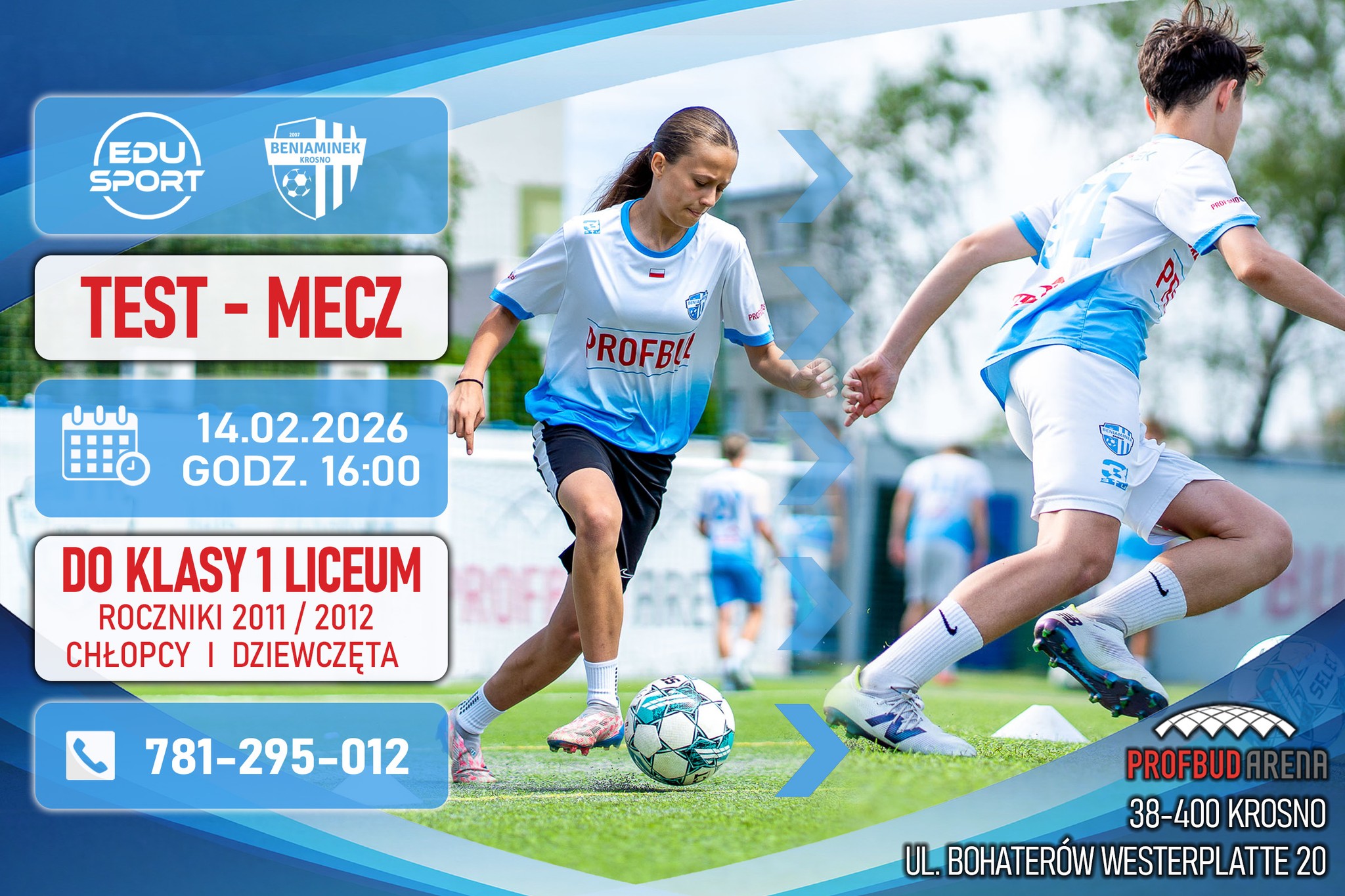 Liceum Edu-Sport z Oddziałami Mistrzostwa Sportowego prowadzone przez Akademię Piłkarską Beniaminek Profbud Krosno rozpoczyna rekrutację do 1 klasy, która rozpocznie naukę w nowym roku szkolnym 2026/2027.
