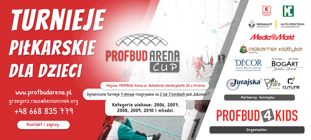 Zapraszamy na cykl turniejów piłkarskich dla dzieci „PROFBUD Arena Cup”. , które w sezonie zimowym będą rozrywane na obiekcie naszej Akademii. Szczegółowe informacje dotyczące tych rozgrywek prezentujemy poniżej.