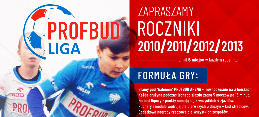Mali piłkarze też mogą mieć swoją ligę – „PROFBUD Ligę”! W marcu i kwietniu na świetnej murawie w „PROFBUD Arenie” będzie możliwość szlifowania piłkarskich umiejętności w czterech kategoriach wiekowych – U-10, U-9, U-8 i U-7.