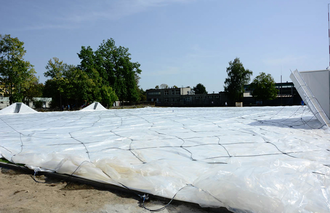 Zmiana terminu rozkładania powłoki balonowej! W najbliższą niedzielę (30.09) w górę powędruje powłoka balonowa na „PROFBUD Arenie”. Czekaliśmy na odpowiednie warunki atmosferyczne (brak wiatru i opadów) i mamy sygnał od firmy „InterHall”, że nie jak wcześniej podawaliśmy piątek, a niedziela będzie idealnym dniem do przeprowadzenia tej operacji!