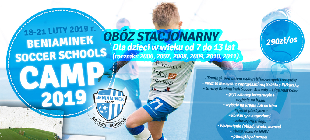 Beniaminek Soccer Schools w czasie podkarpackich ferii zimowych zaprasza dzieci z projektu BSS, jak i chętne dzieci z grup PRO i Girls oraz dzieci z innych szkółek do uczestnictwa w zimowym obozie stacjonarnym „Beniaminek Soccer Schools Camp 2019”!