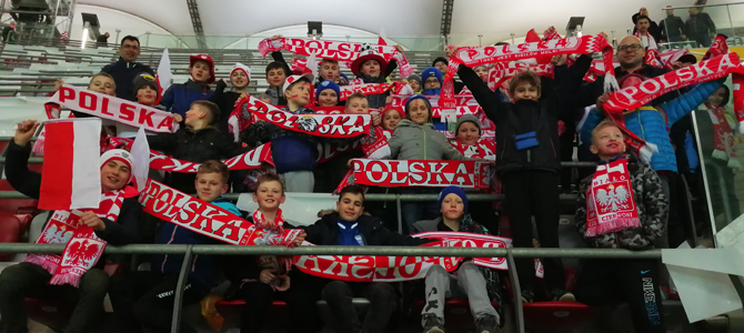 Po zwiedzaniu przyszedł czas na punkt kulminacyjny wycieczki, czyli mecz Polska – Łotwa. Na stadion docieramy około 19:00, sprawnie mijamy bramki i meldujemy się na trybunach. Do meczu coraz bliżej, więc i emocje coraz większe. Głośno odśpiewany „Mazurek Dąbrowskiego” i jest pierwszy gwizdek. Sam mecz nie było porywającym widowiskiem w wykonaniu naszej Reprezentacji, były okazje do otworzenia wyniku po obu stronach, zawodnicy Beniaminka mocno dopingowali „biało-czerwonych” ale na gole przyszło nam czekać do ostatniego kwadransa gry. Robert Lewandowski otworzył wynik meczu i stadion oszalał! Po chwili ponownie mogliśmy się cieszyć ze strzelonej bramki, bo do siatki trafił Kamil Glik. To wprawiło całą naszą ekipę w doskonały nastrój i po końcowym gwizdku radośnie i ze śpiewem na ustach wracamy do autobusu zaznaczając głośnymi okrzykami obecność Beniaminka w Warszawie.