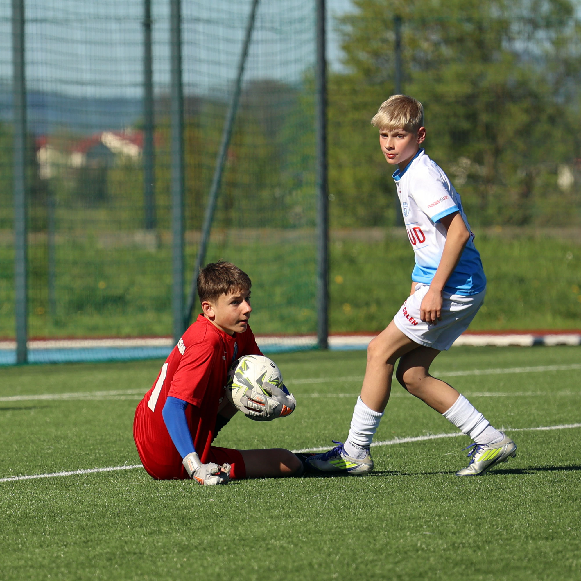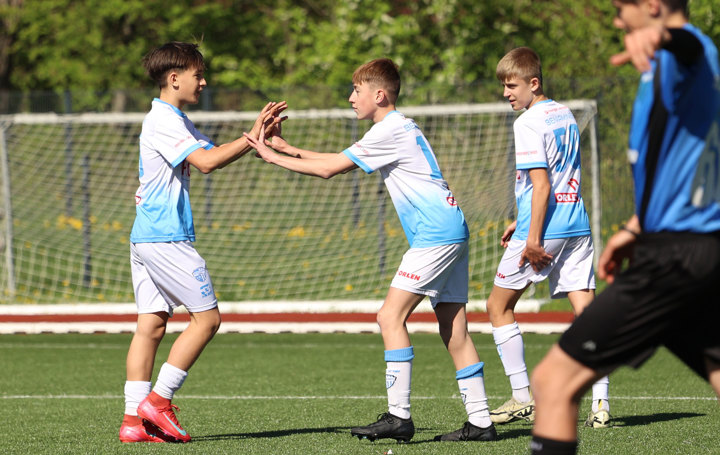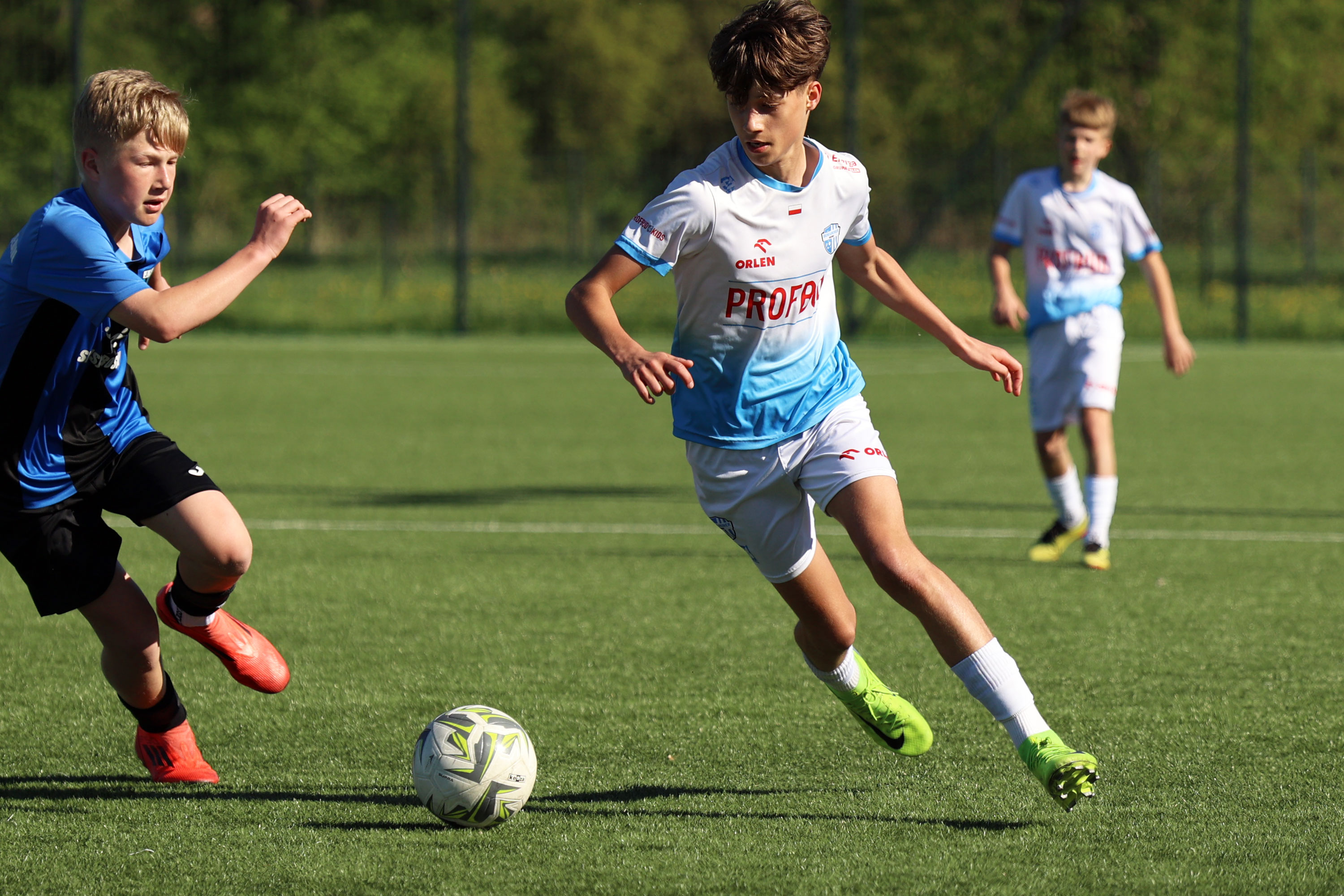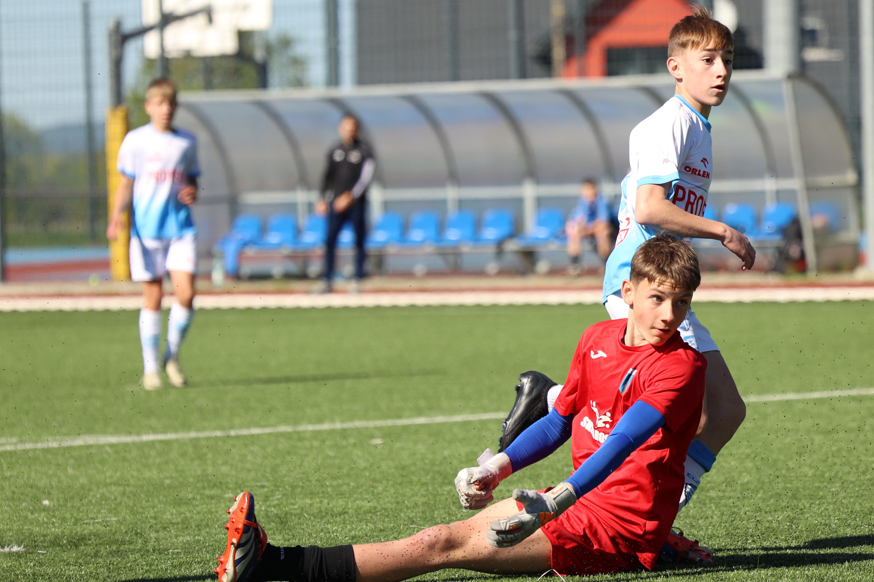 W meczu Podkarpackiej 1 Ligi Trampkarza Młodszego drużyna Beniaminka Profbud Krosno zmierzyła się z JKS Jarosław. "Biało-niebiescy" pewnie wygrali to spotkanie strzelając siedem goli. Foto: Wojciech Kuźmik.