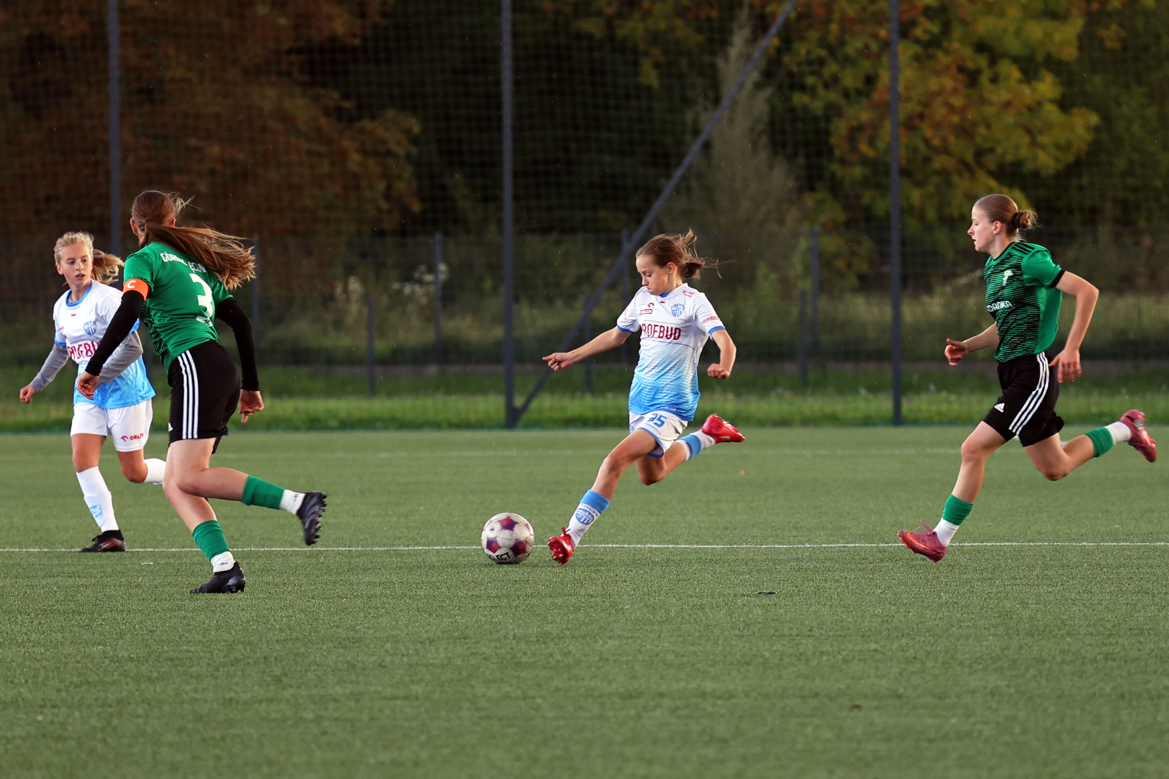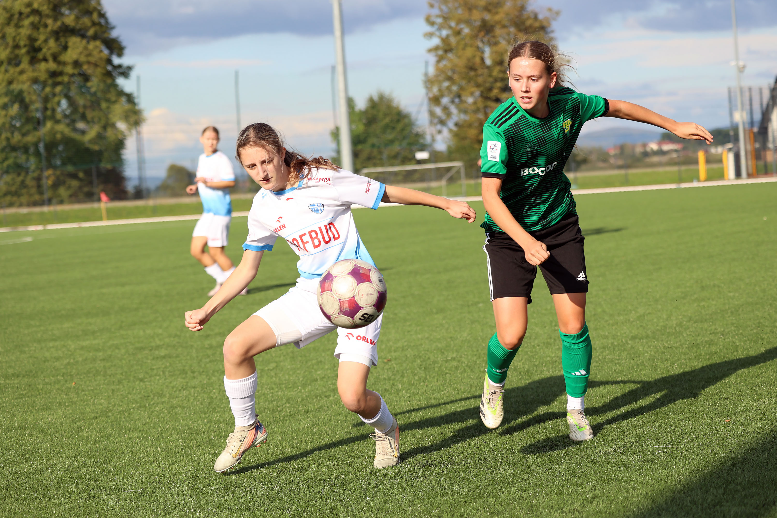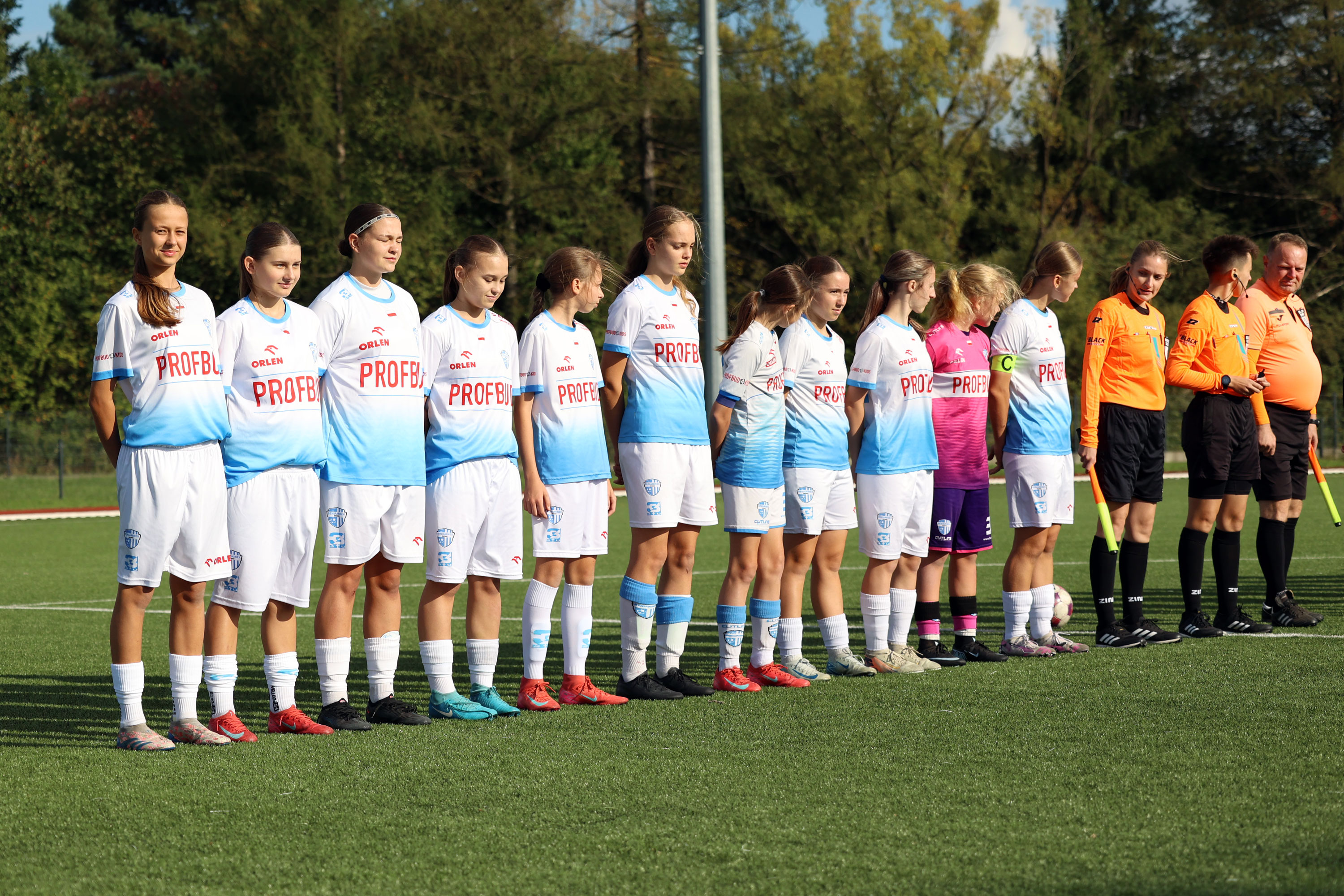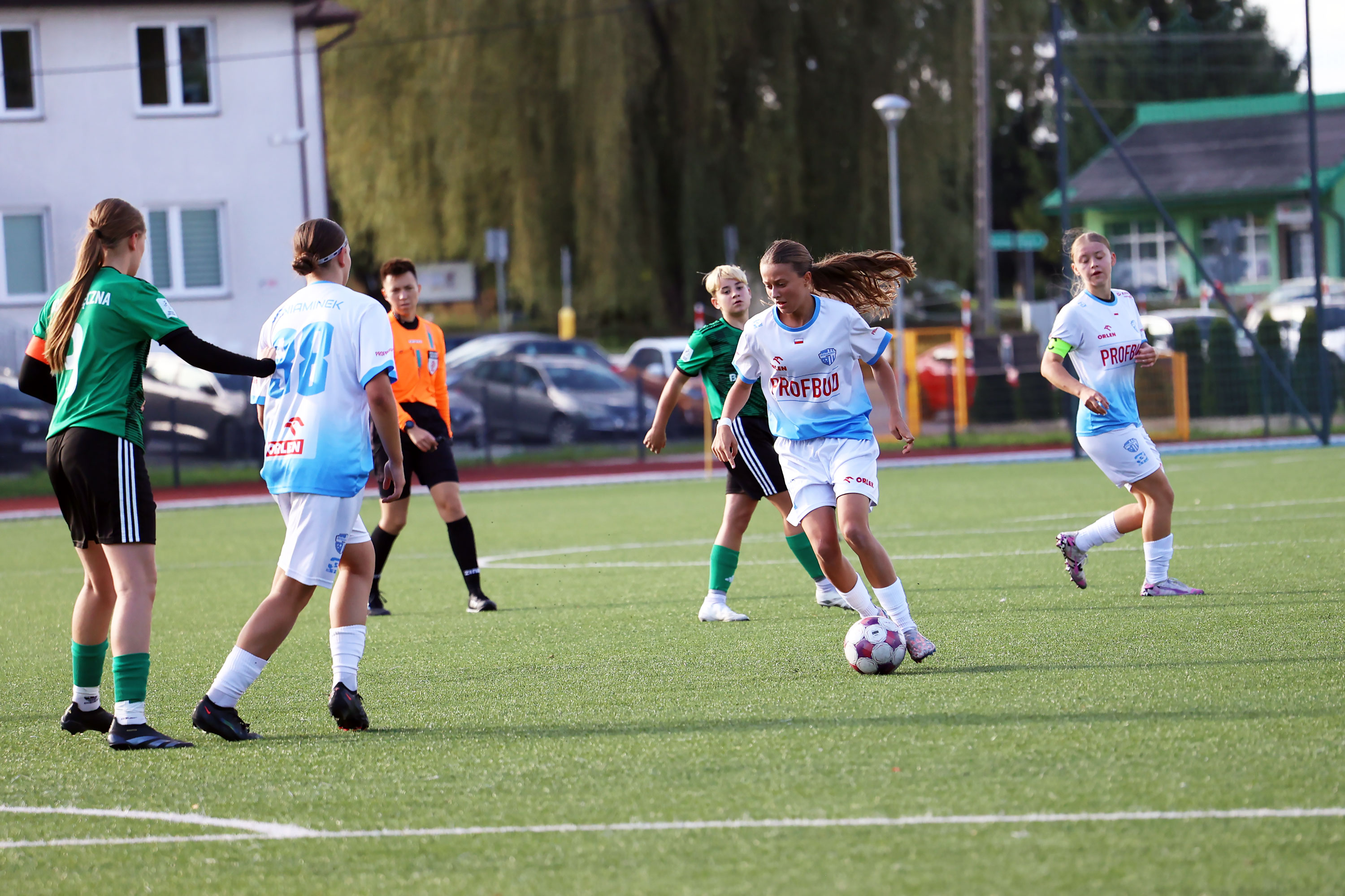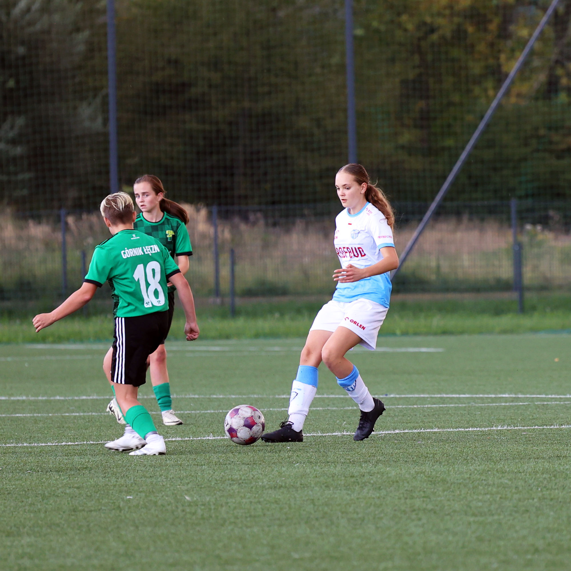 W Centralnej Lidze Juniorek U-16 zespoły Beniaminka Profbud Krosno i Górnika Łęczna stworzyły wyrównany i zacięty pojedynek. "Biało-niebieskie" objęły prowadzenie w tym meczu, ale kolejne dwie bramki strzeliły zawodniczki Górnika i wygrały to spotkanie 2:1. Foto: Wojciech Kuźmik.
