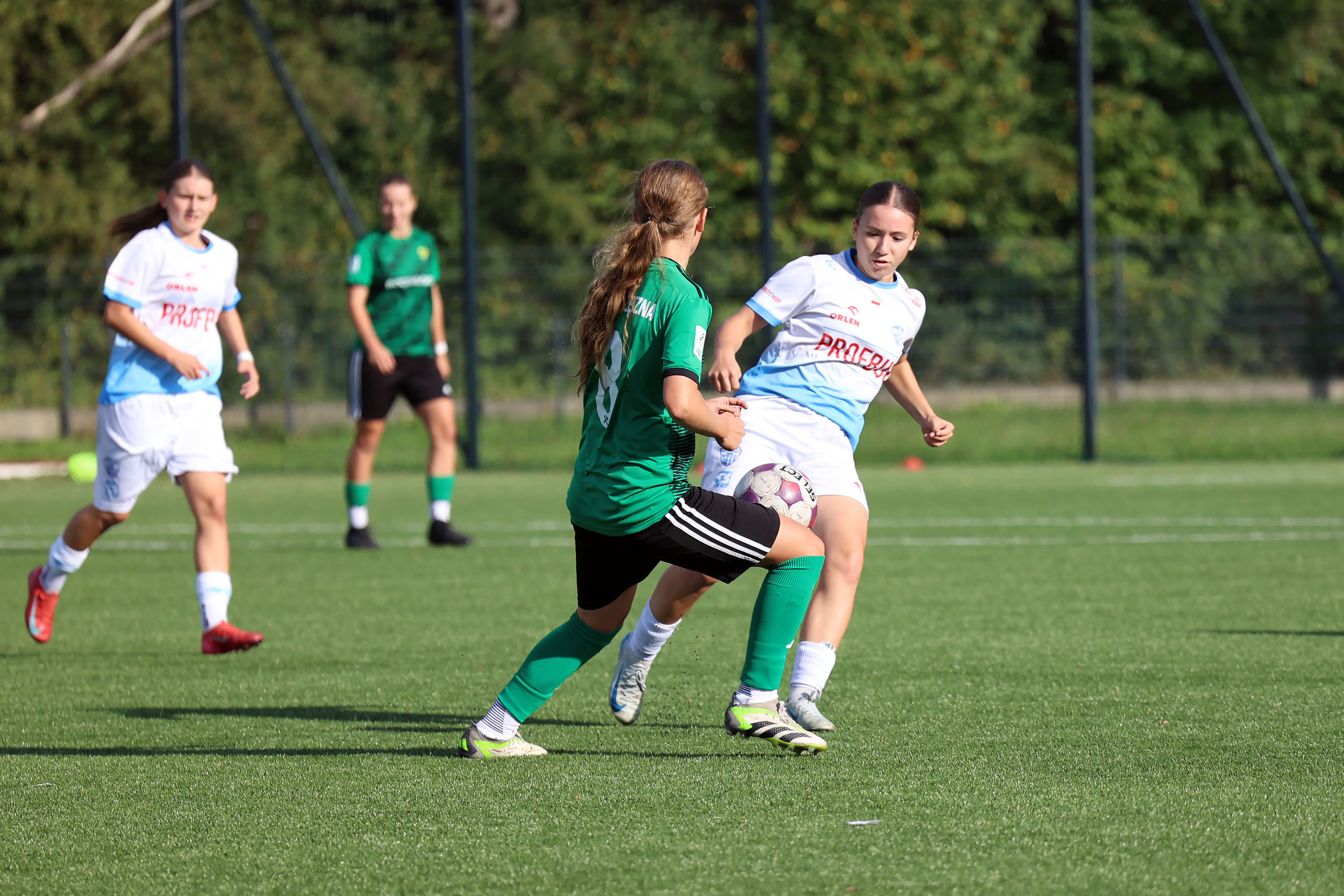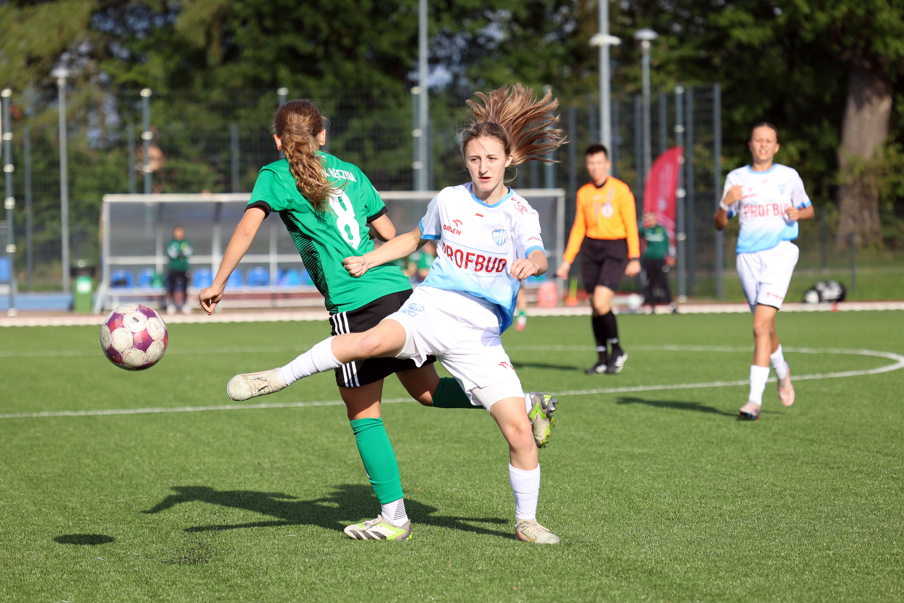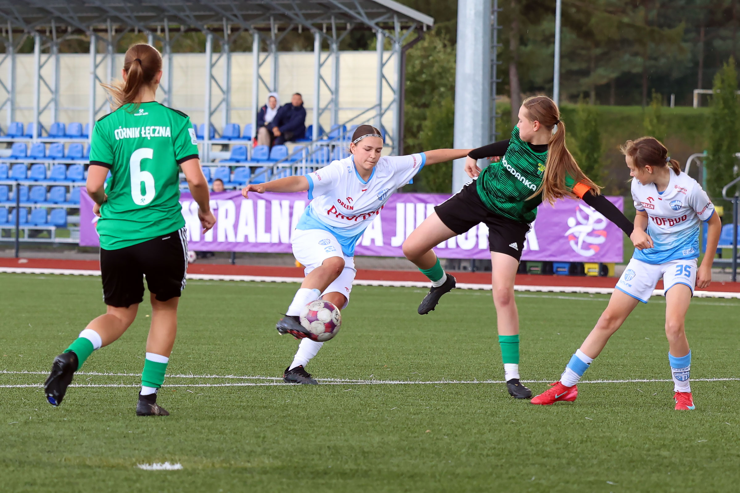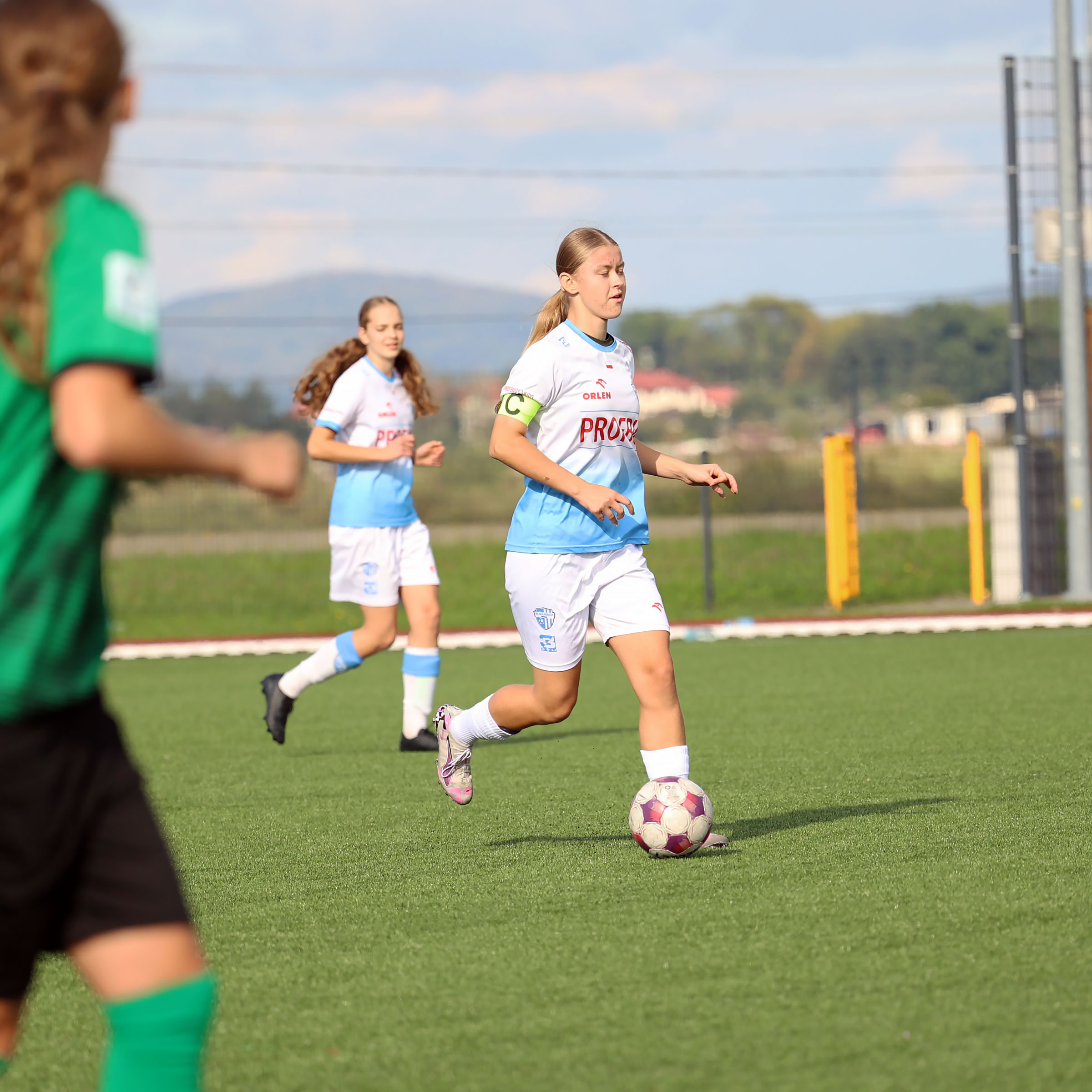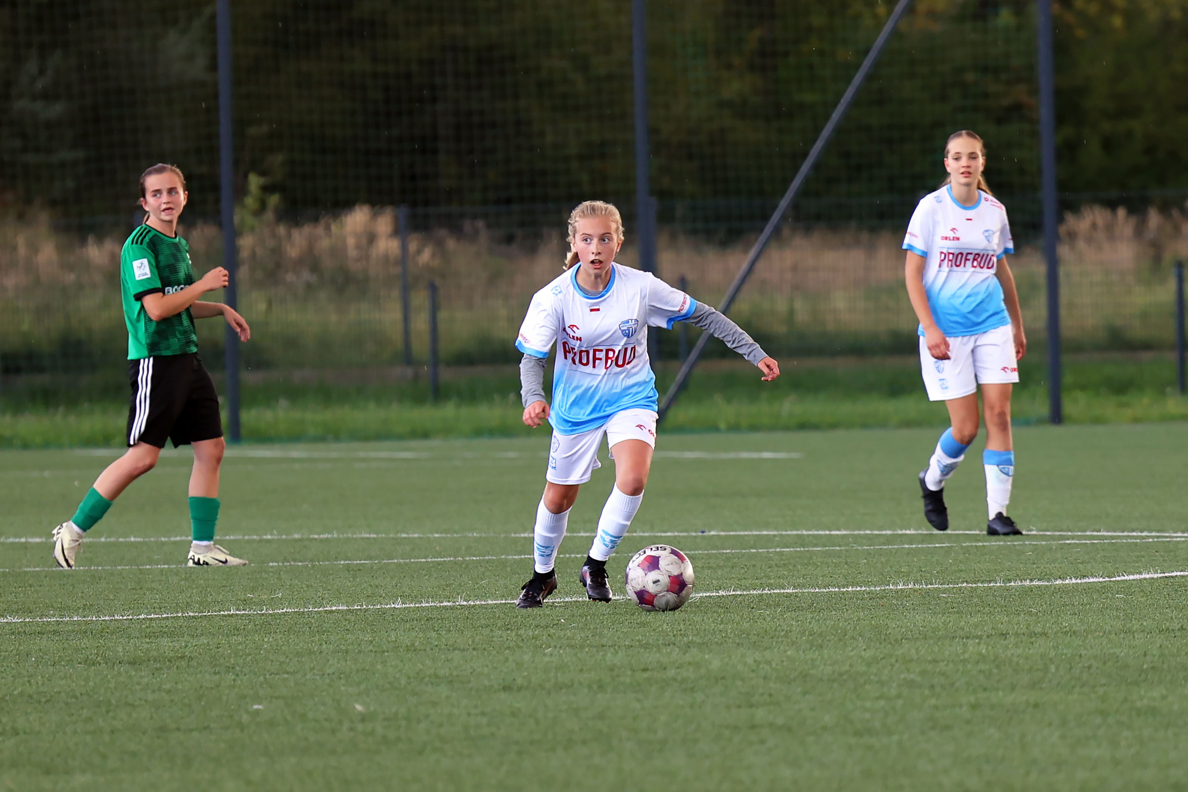 W Centralnej Lidze Juniorek U-16 zespoły Beniaminka Profbud Krosno i Górnika Łęczna stworzyły wyrównany i zacięty pojedynek. "Biało-niebieskie" objęły prowadzenie w tym meczu, ale kolejne dwie bramki strzeliły zawodniczki Górnika i wygrały to spotkanie 2:1. Foto: Wojciech Kuźmik.