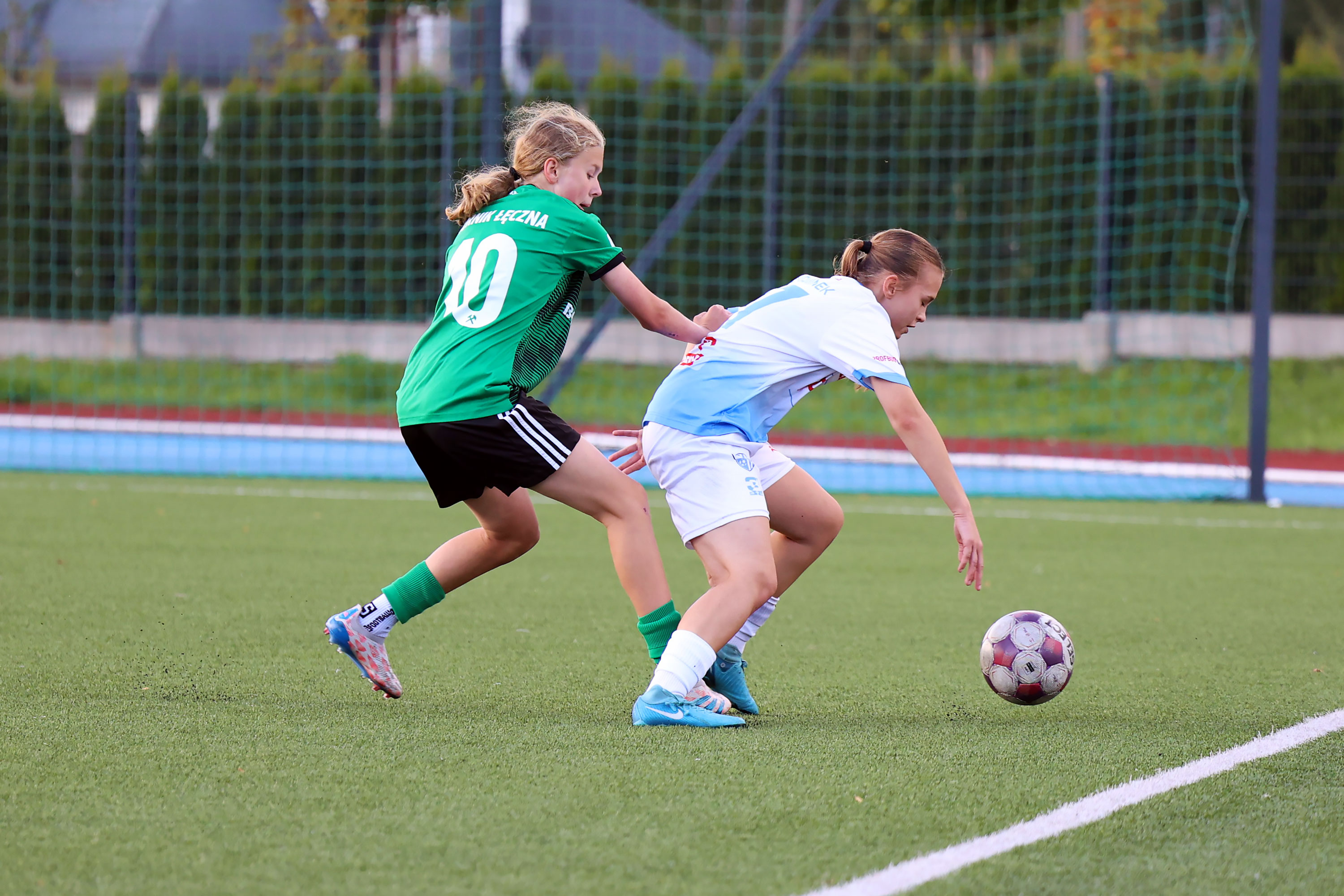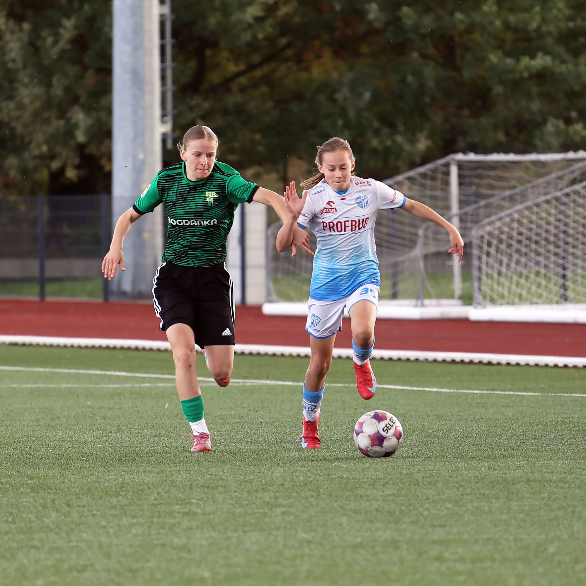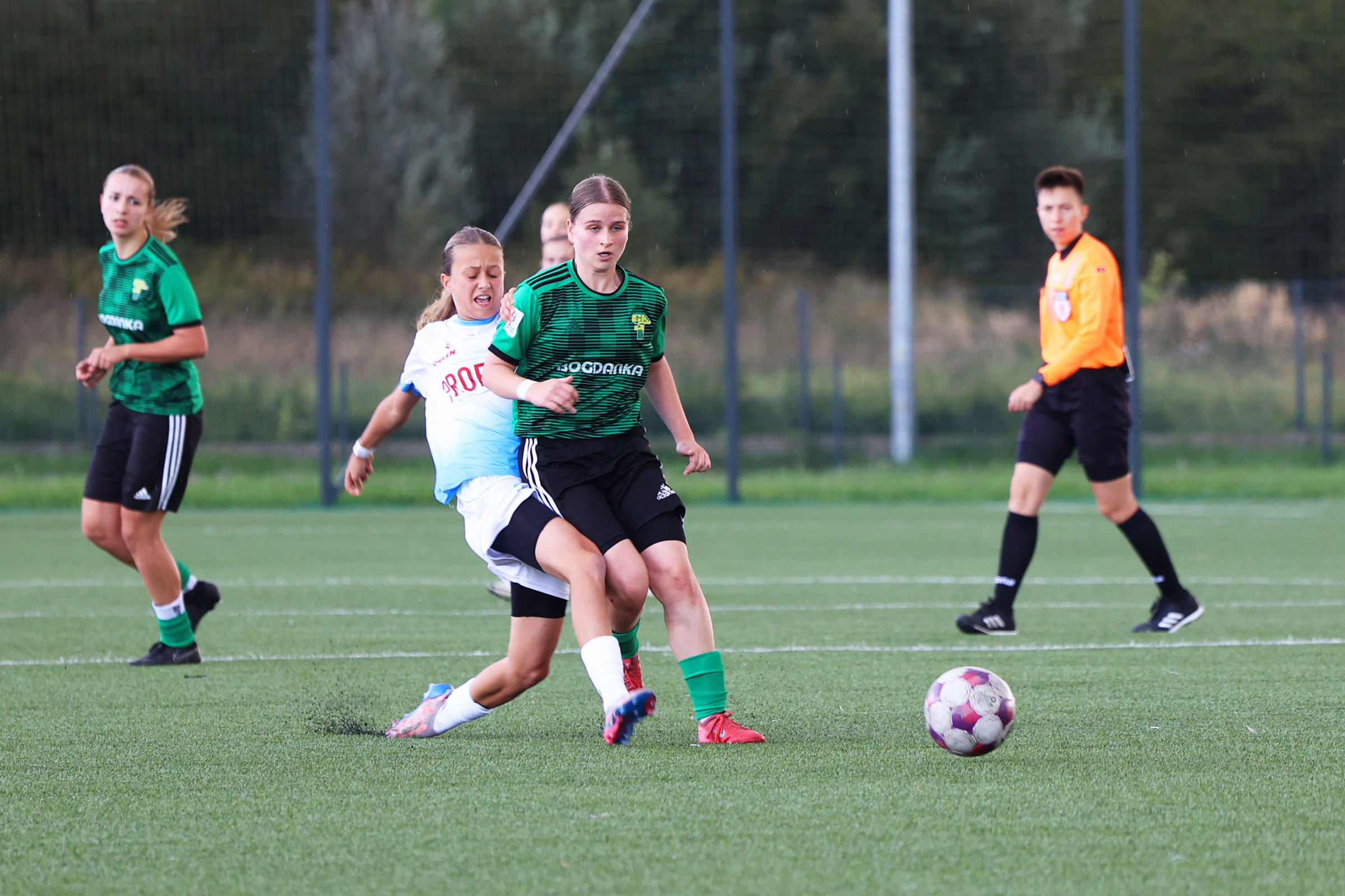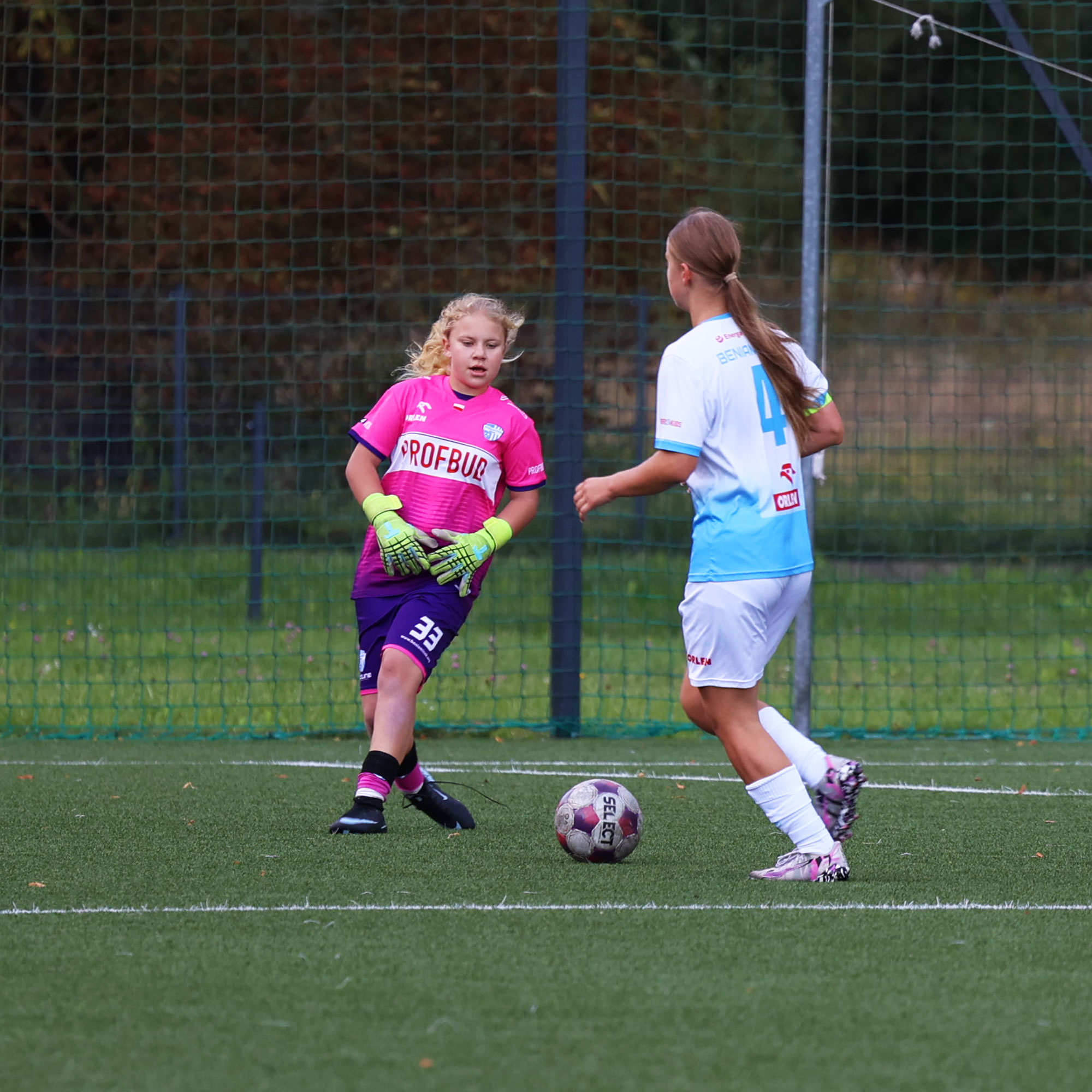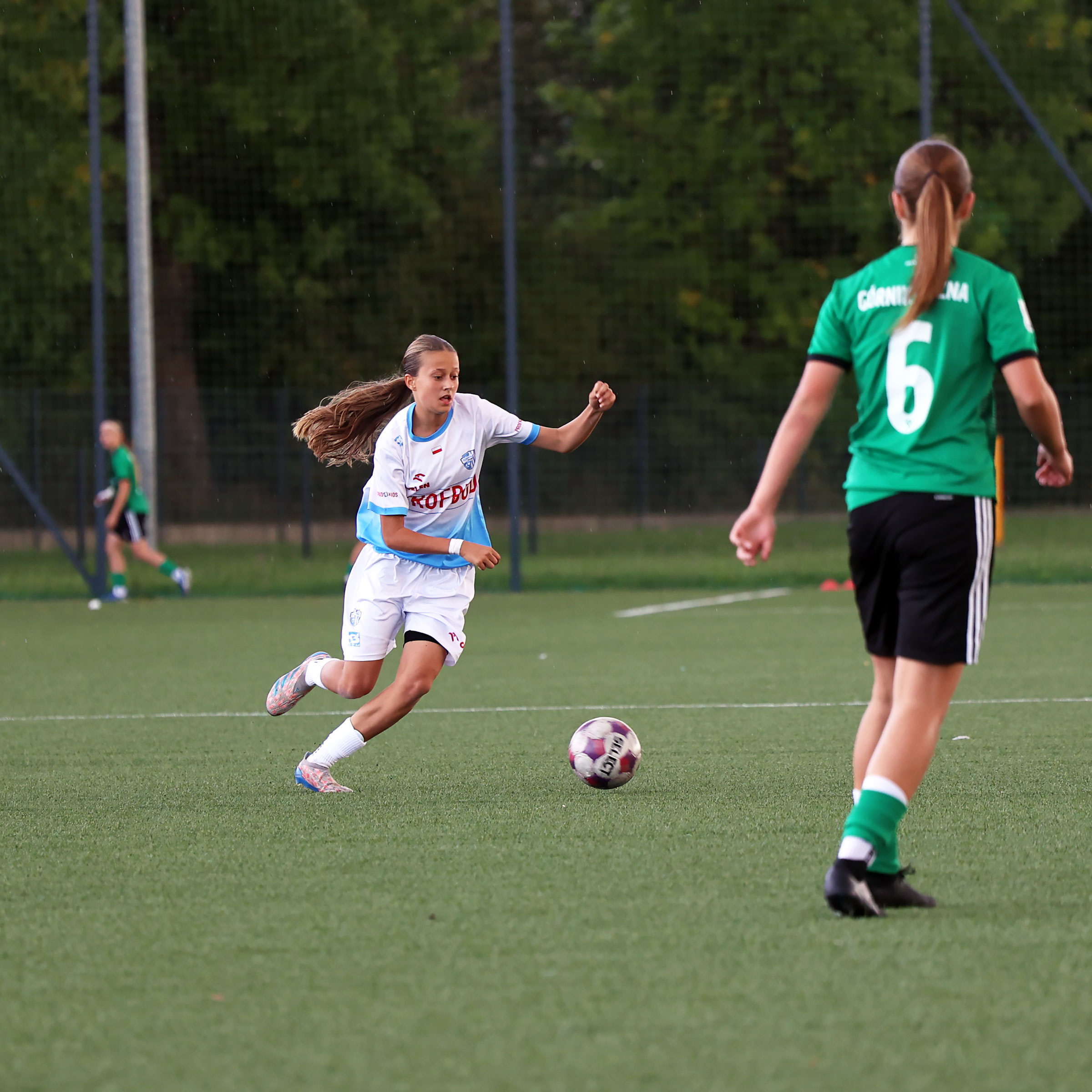 W Centralnej Lidze Juniorek U-16 zespoły Beniaminka Profbud Krosno i Górnika Łęczna stworzyły wyrównany i zacięty pojedynek. "Biało-niebieskie" objęły prowadzenie w tym meczu, ale kolejne dwie bramki strzeliły zawodniczki Górnika i wygrały to spotkanie 2:1. Foto: Wojciech Kuźmik.