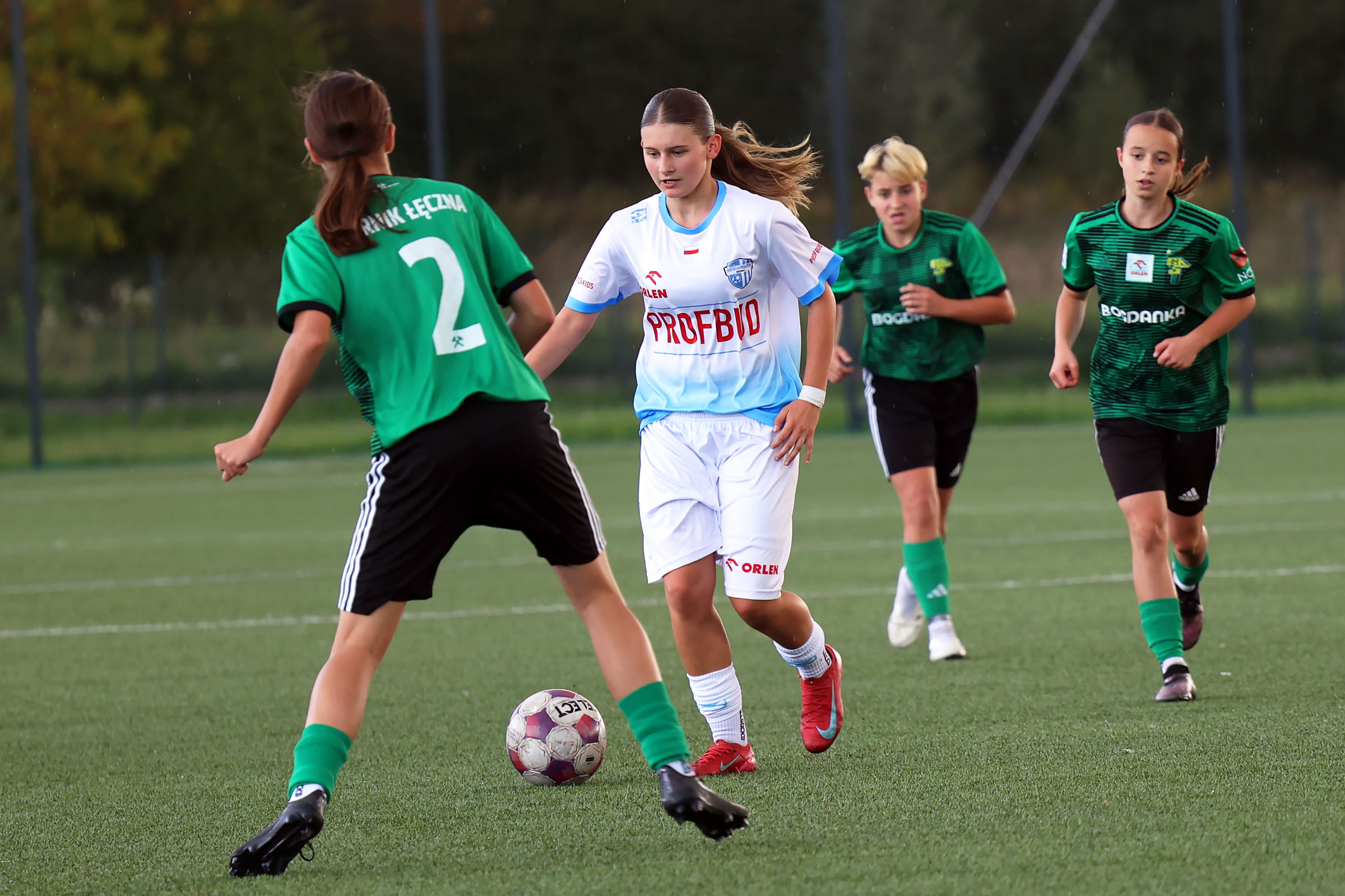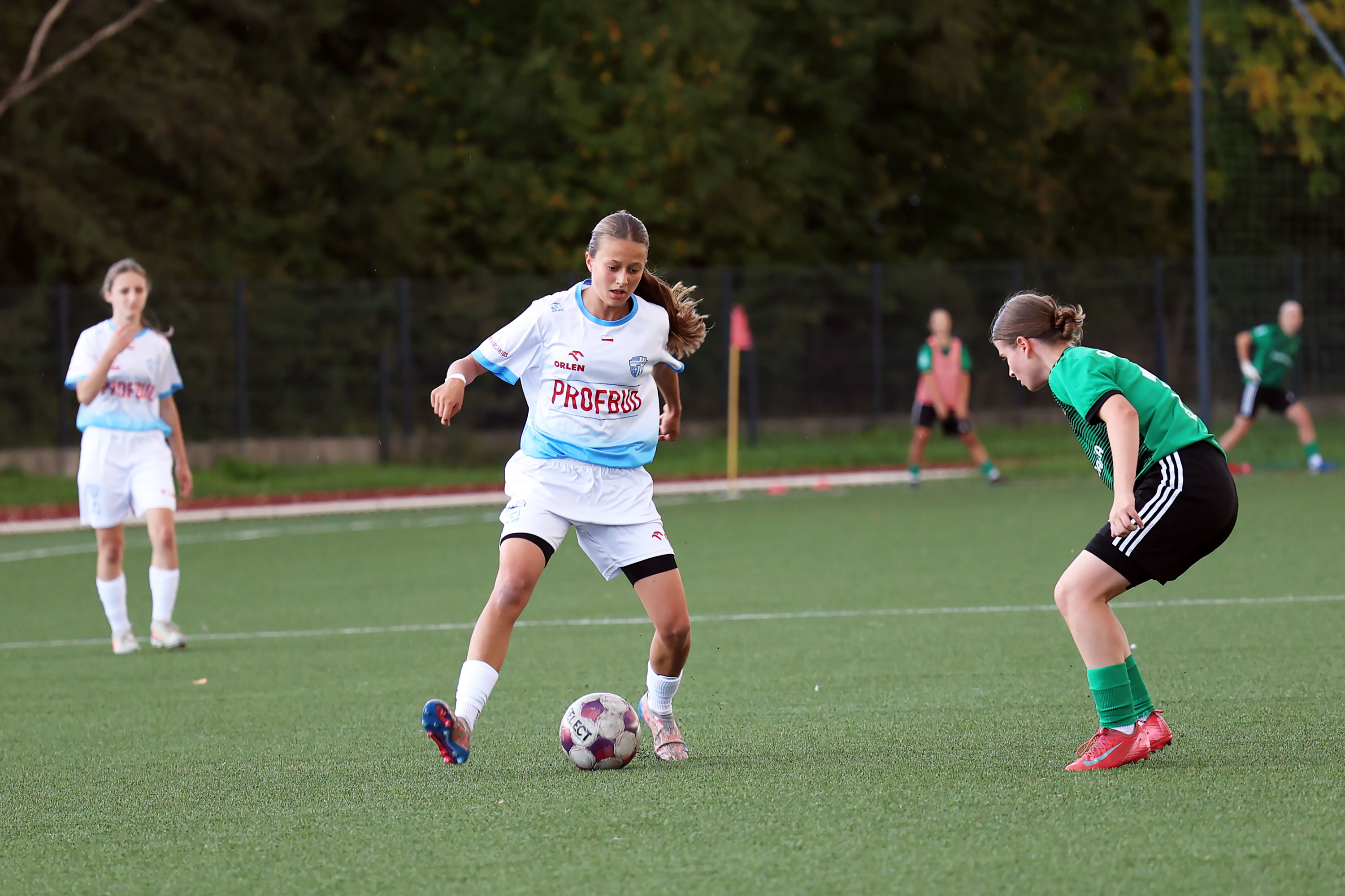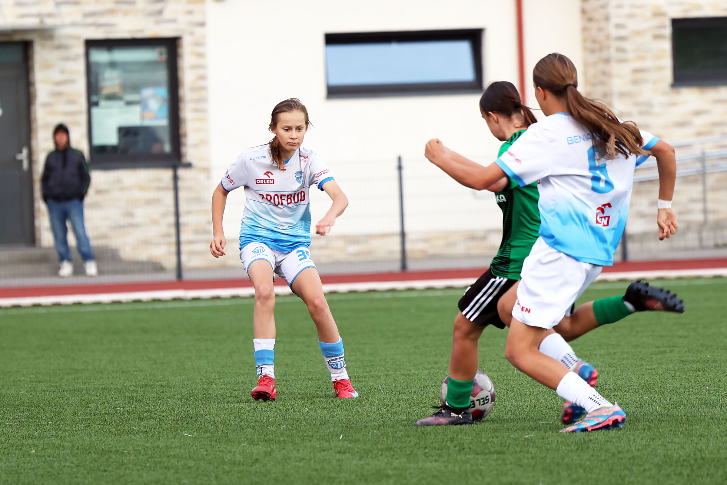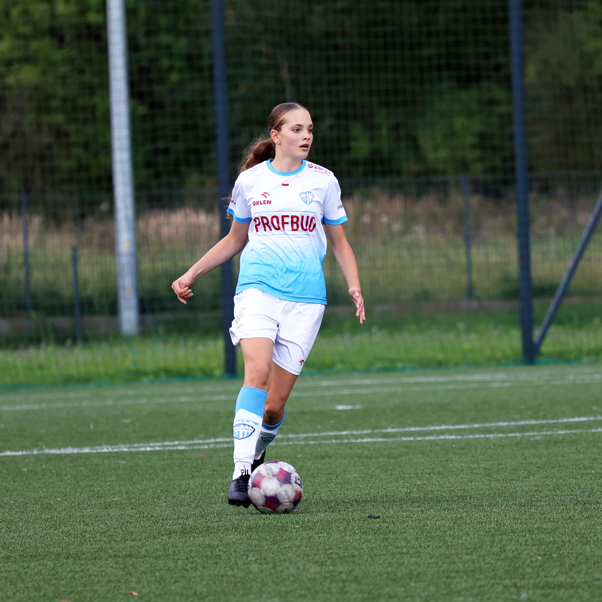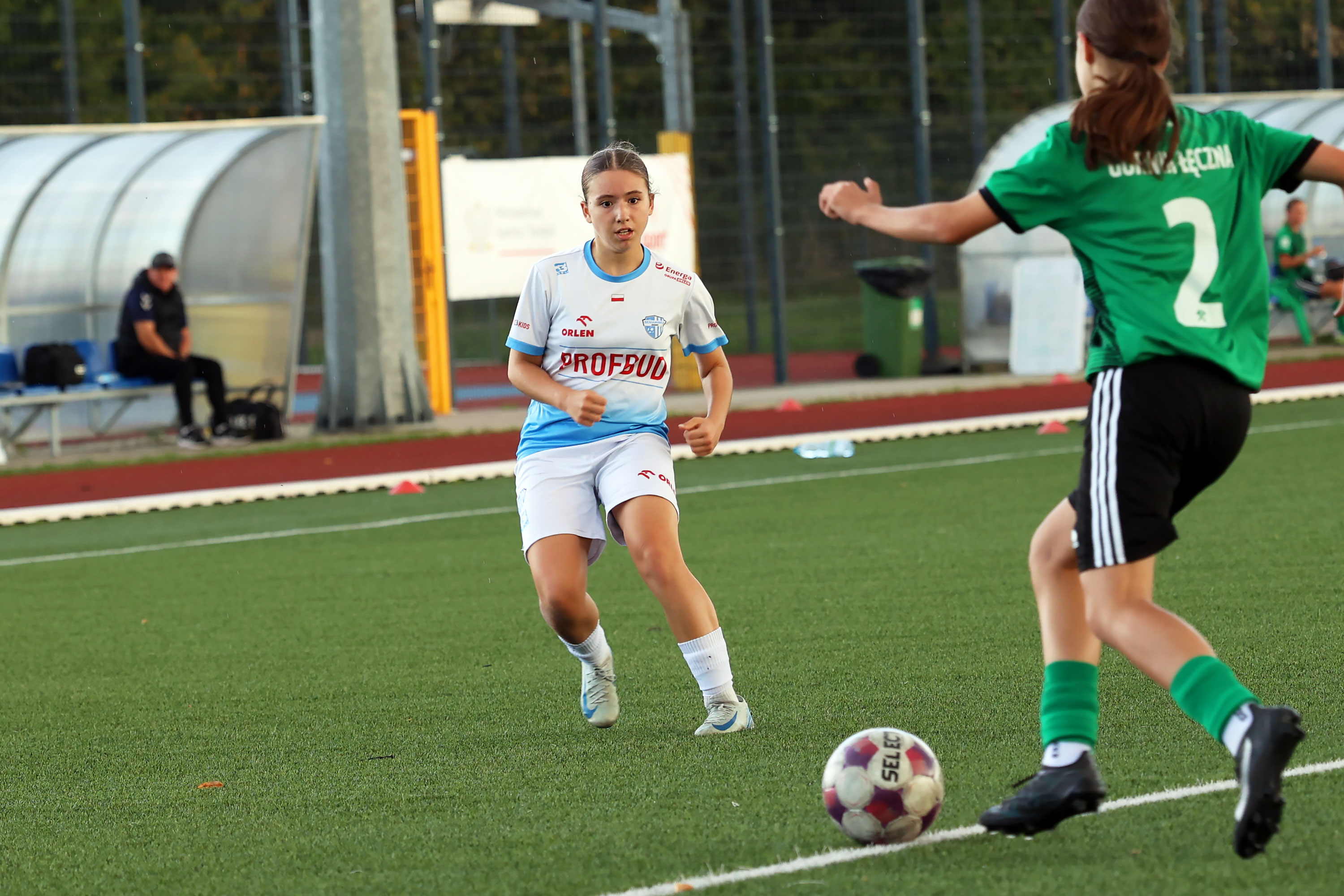 W Centralnej Lidze Juniorek U-16 zespoły Beniaminka Profbud Krosno i Górnika Łęczna stworzyły wyrównany i zacięty pojedynek. "Biało-niebieskie" objęły prowadzenie w tym meczu, ale kolejne dwie bramki strzeliły zawodniczki Górnika i wygrały to spotkanie 2:1. Foto: Wojciech Kuźmik.