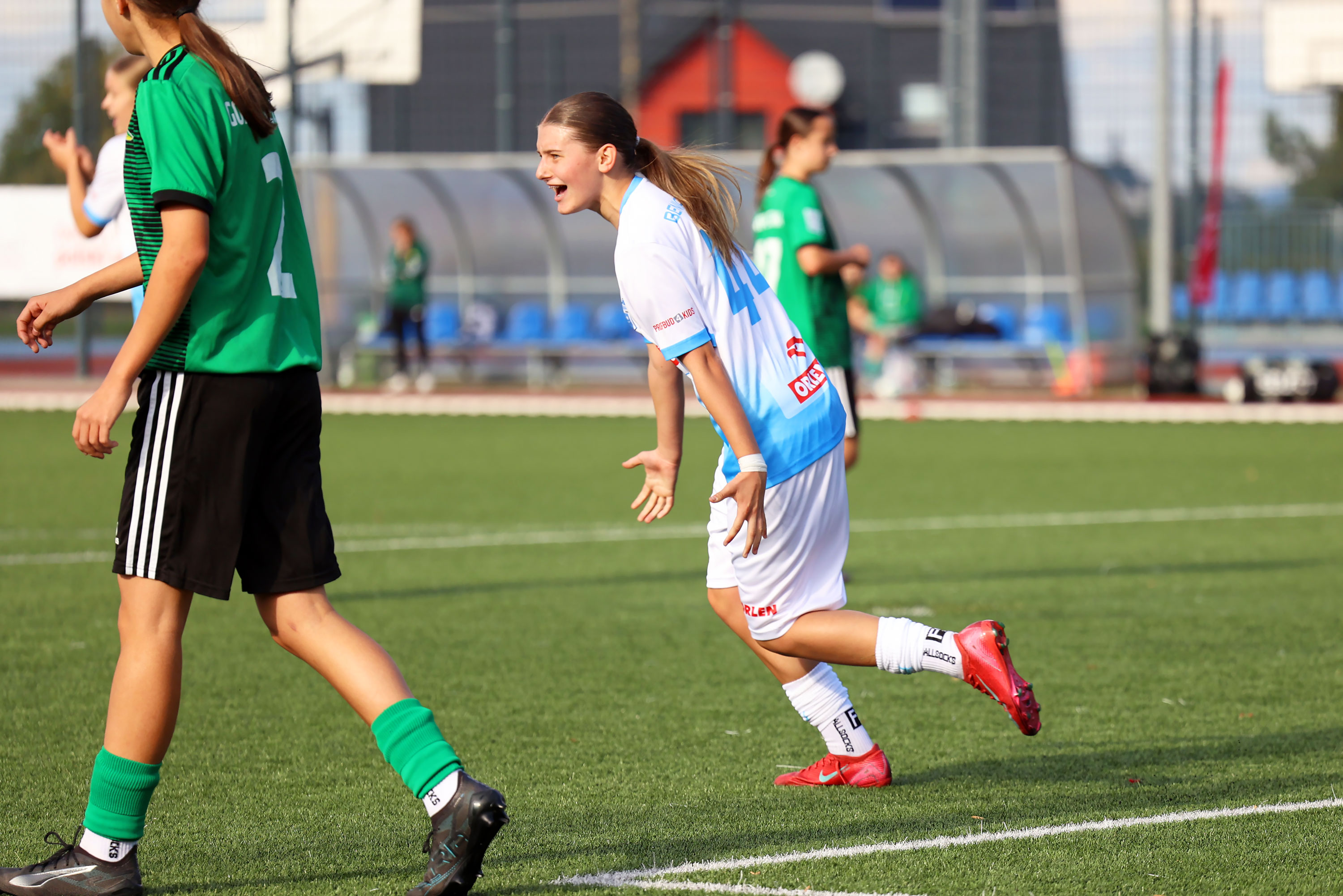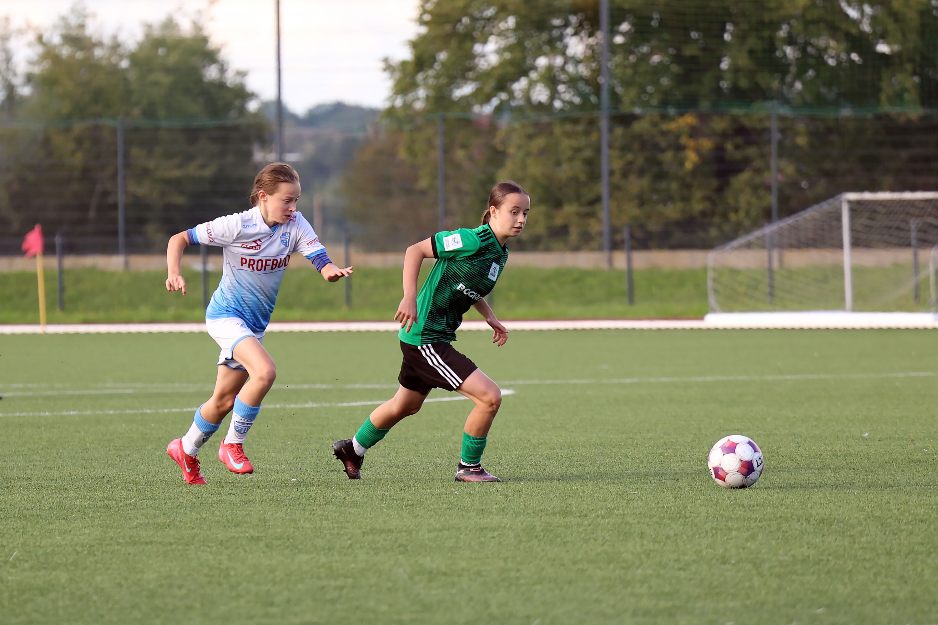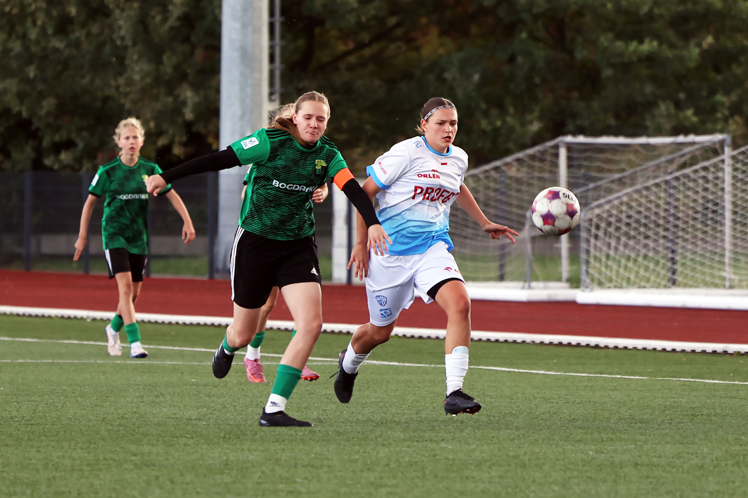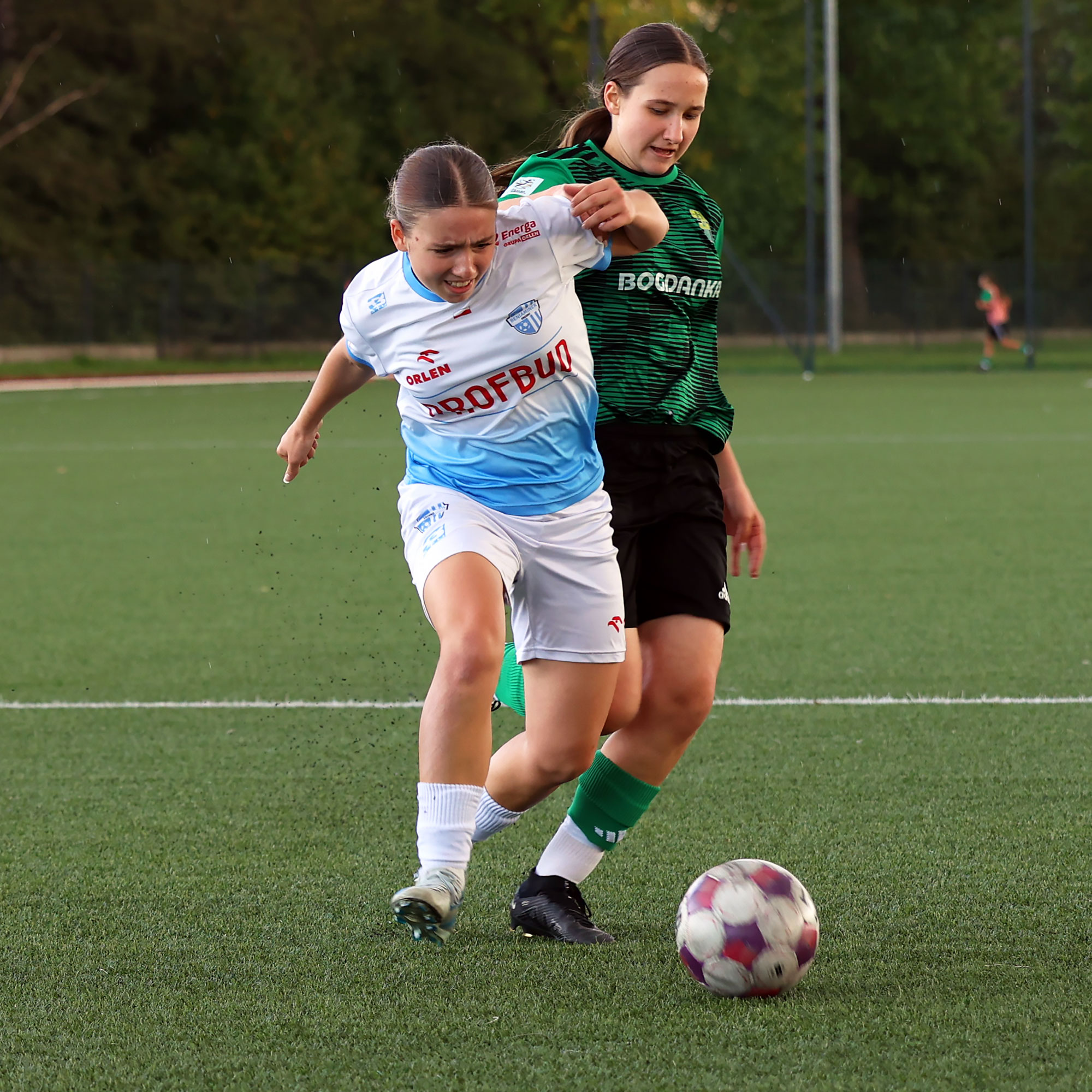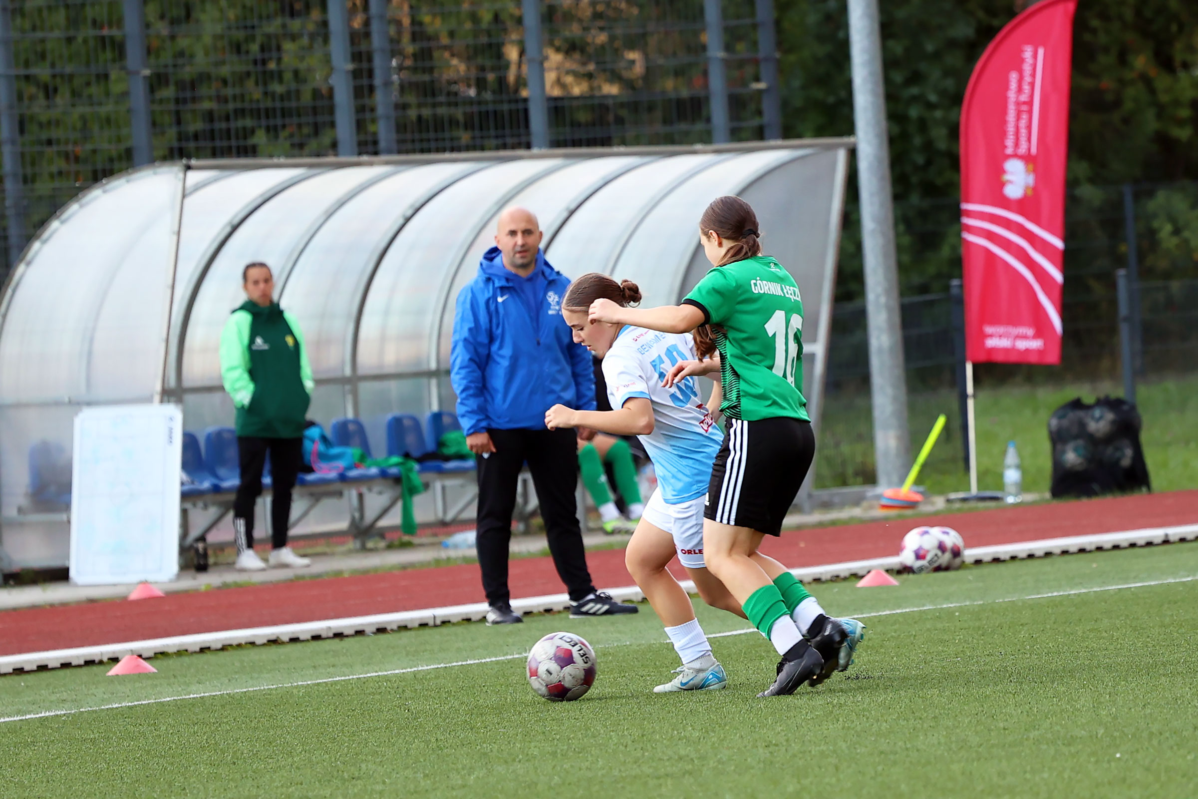 W Centralnej Lidze Juniorek U-16 zespoły Beniaminka Profbud Krosno i Górnika Łęczna stworzyły wyrównany i zacięty pojedynek. "Biało-niebieskie" objęły prowadzenie w tym meczu, ale kolejne dwie bramki strzeliły zawodniczki Górnika i wygrały to spotkanie 2:1. Foto: Wojciech Kuźmik.