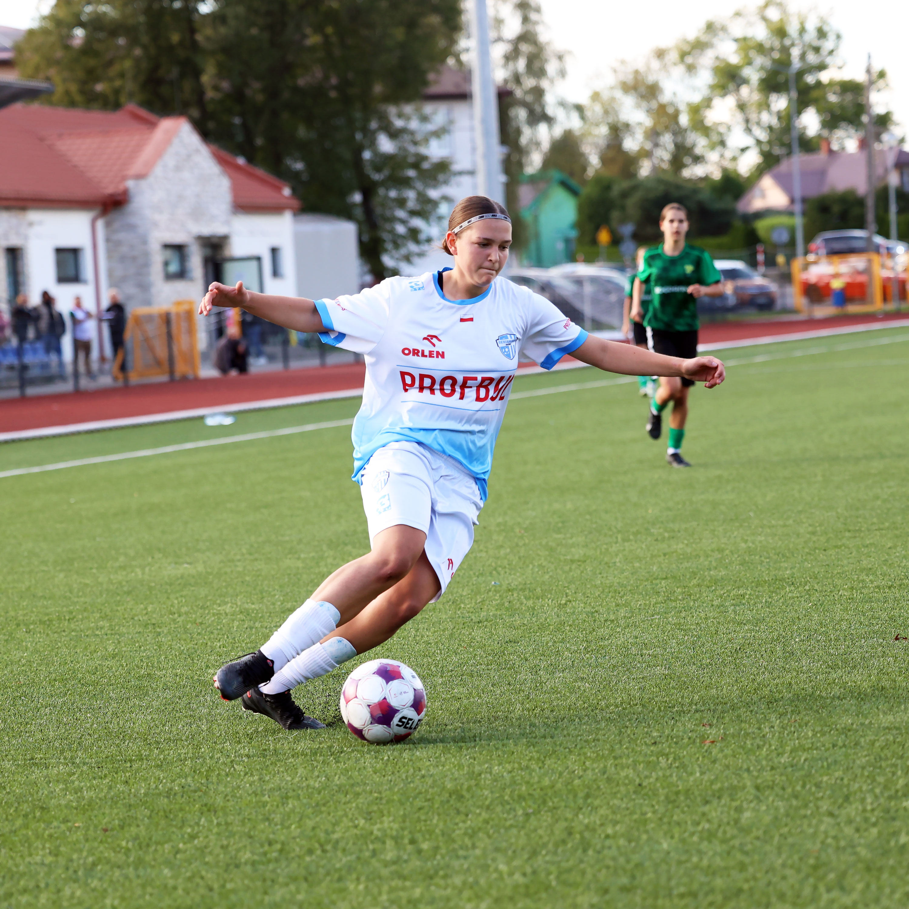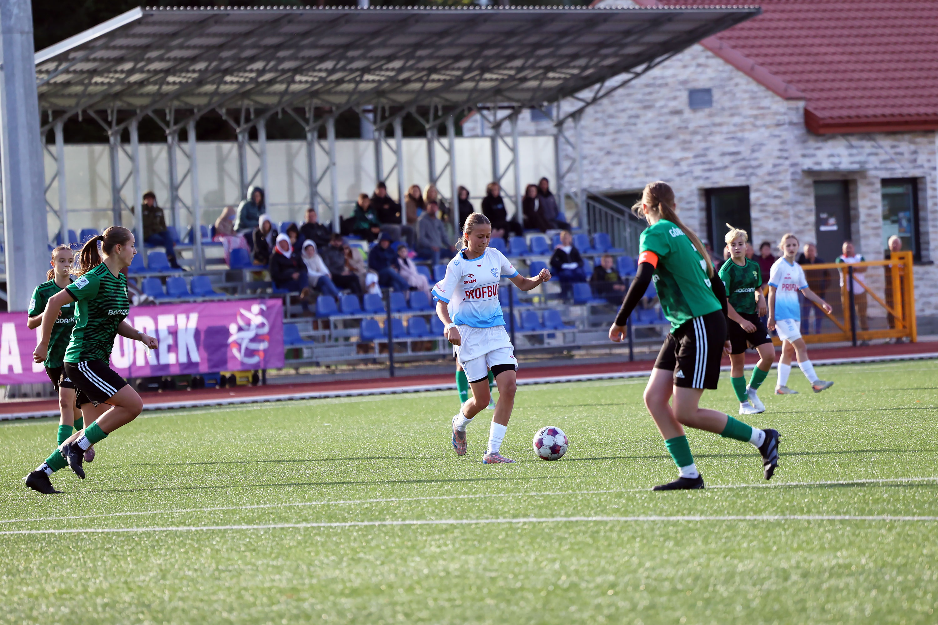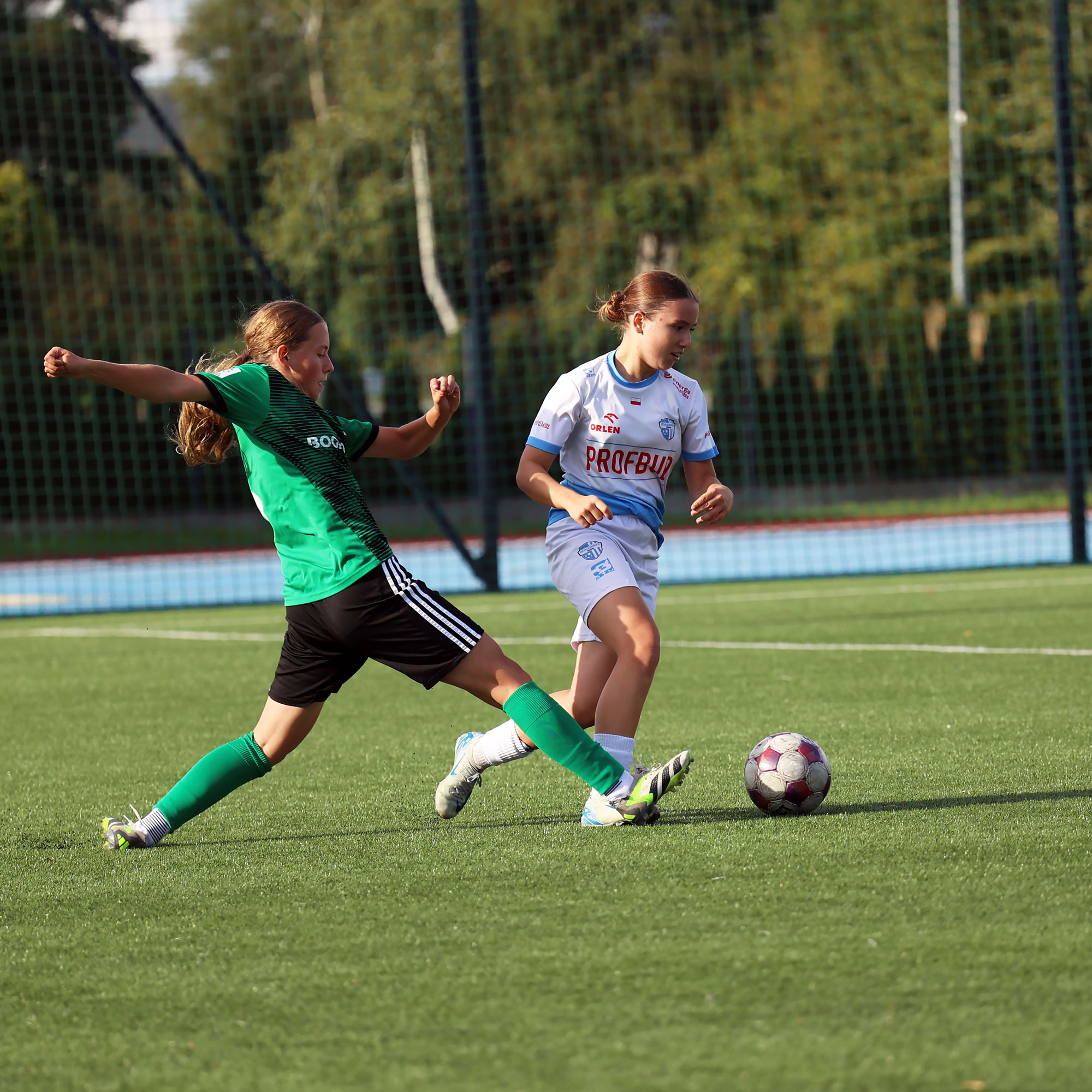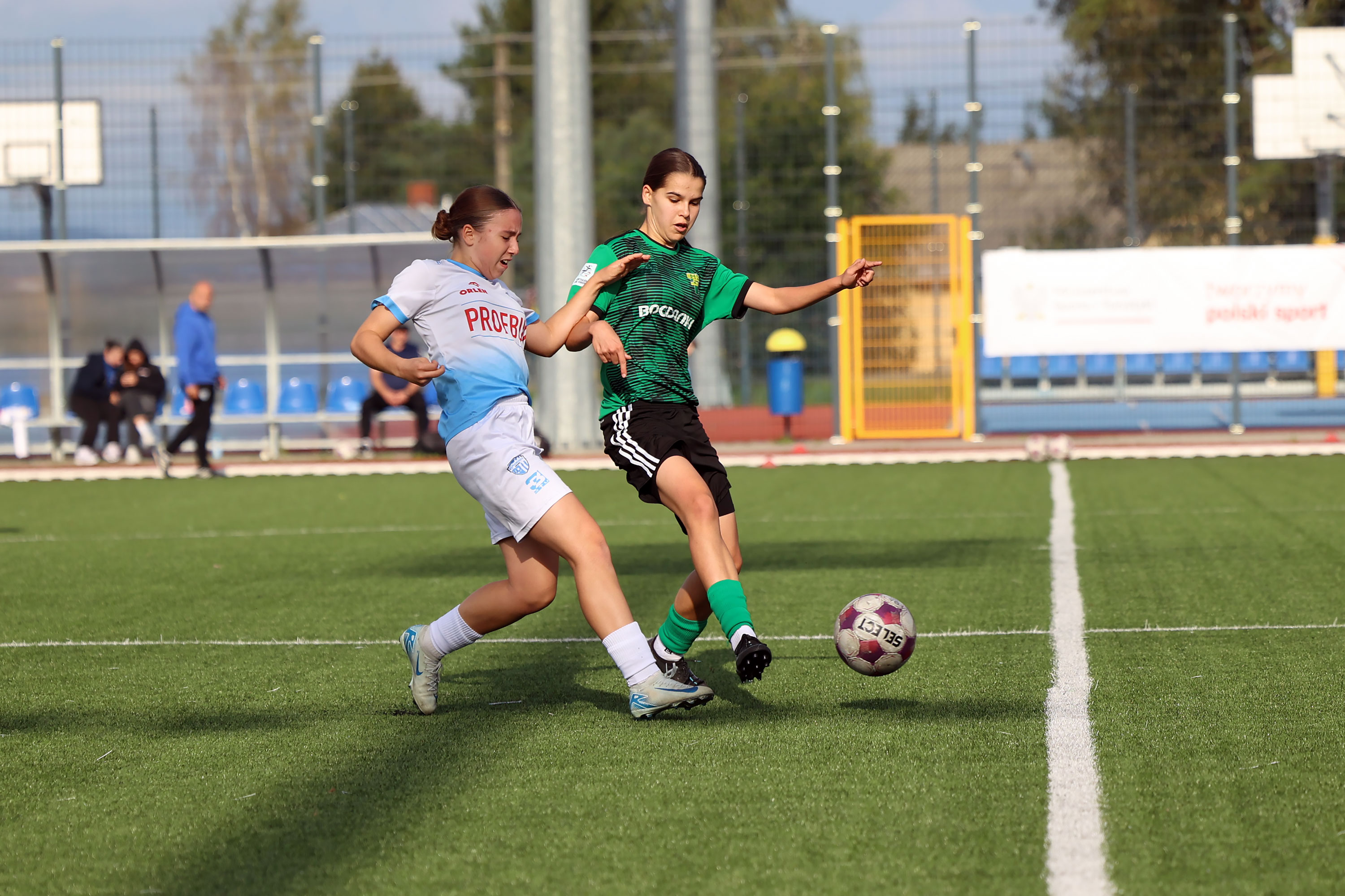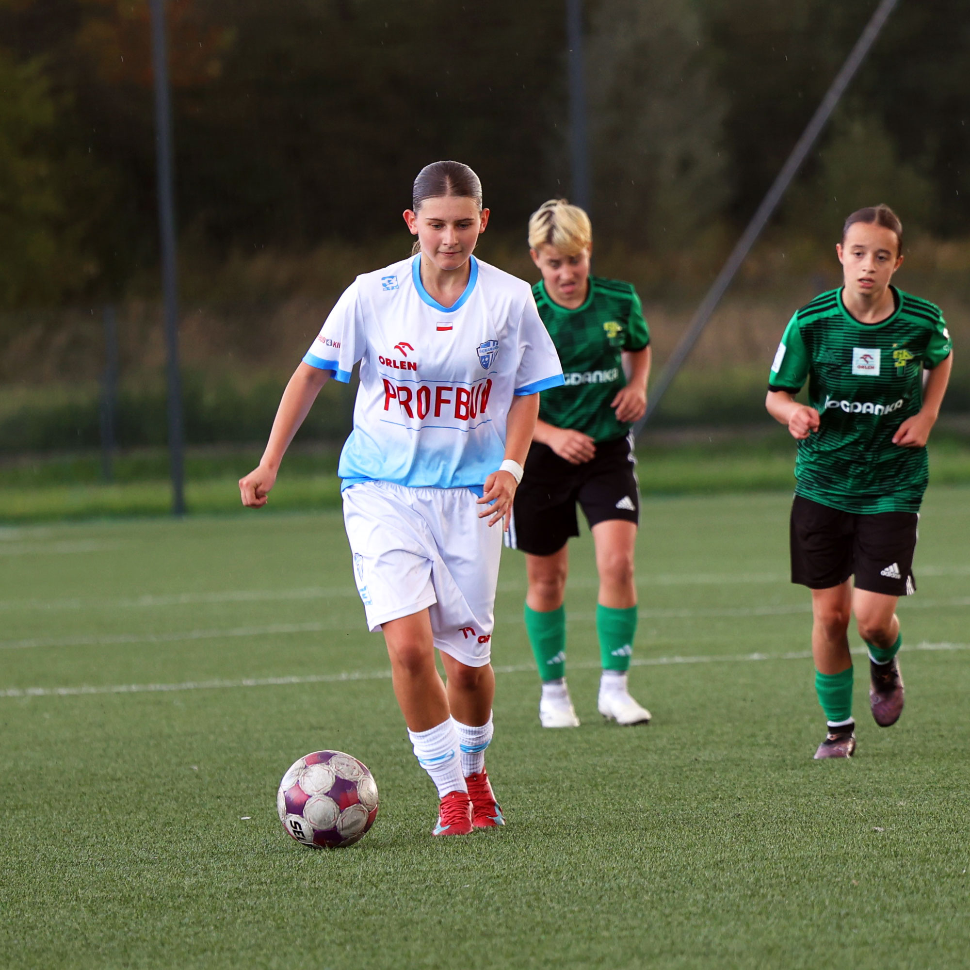 W Centralnej Lidze Juniorek U-16 zespoły Beniaminka Profbud Krosno i Górnika Łęczna stworzyły wyrównany i zacięty pojedynek. "Biało-niebieskie" objęły prowadzenie w tym meczu, ale kolejne dwie bramki strzeliły zawodniczki Górnika i wygrały to spotkanie 2:1. Foto: Wojciech Kuźmik.