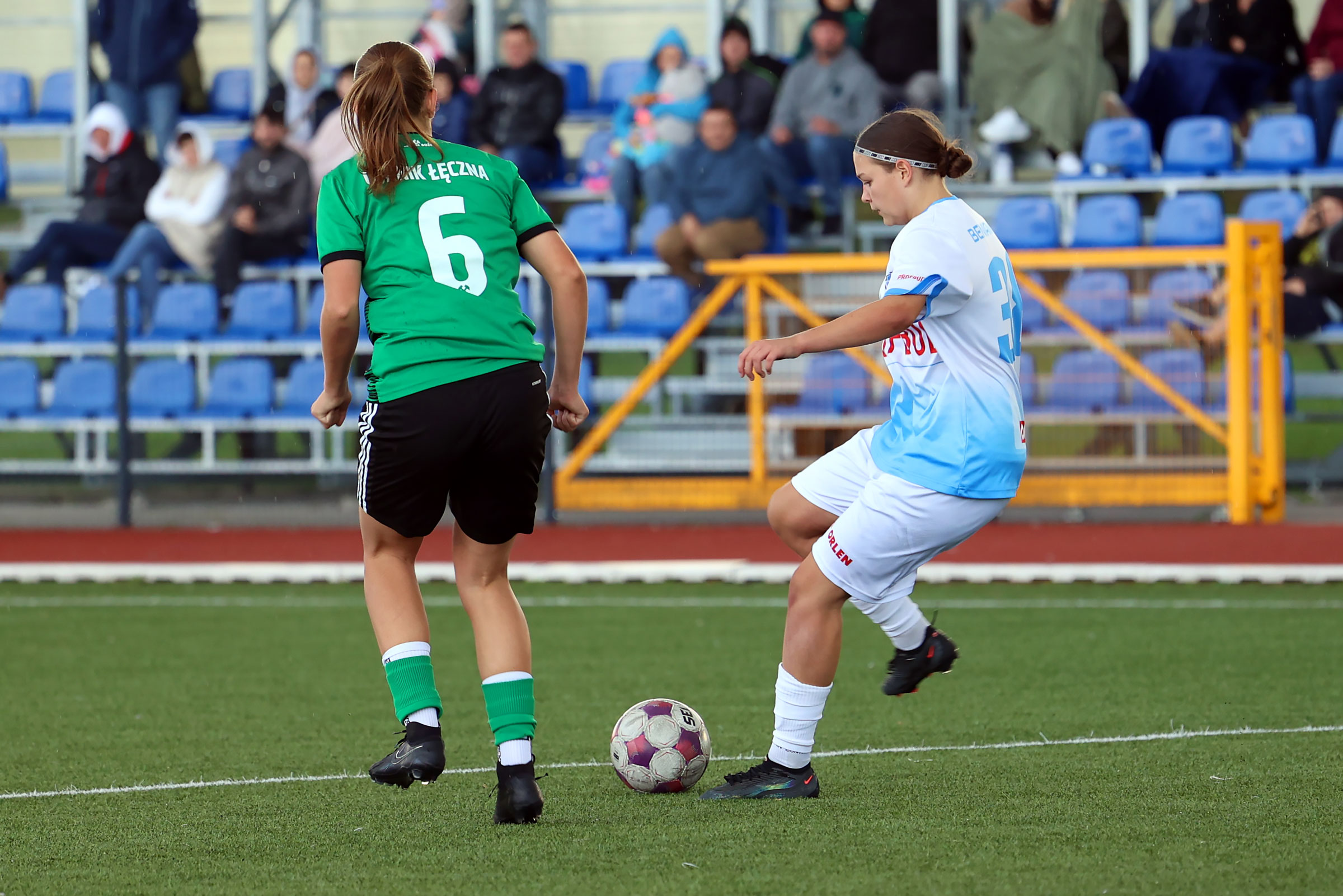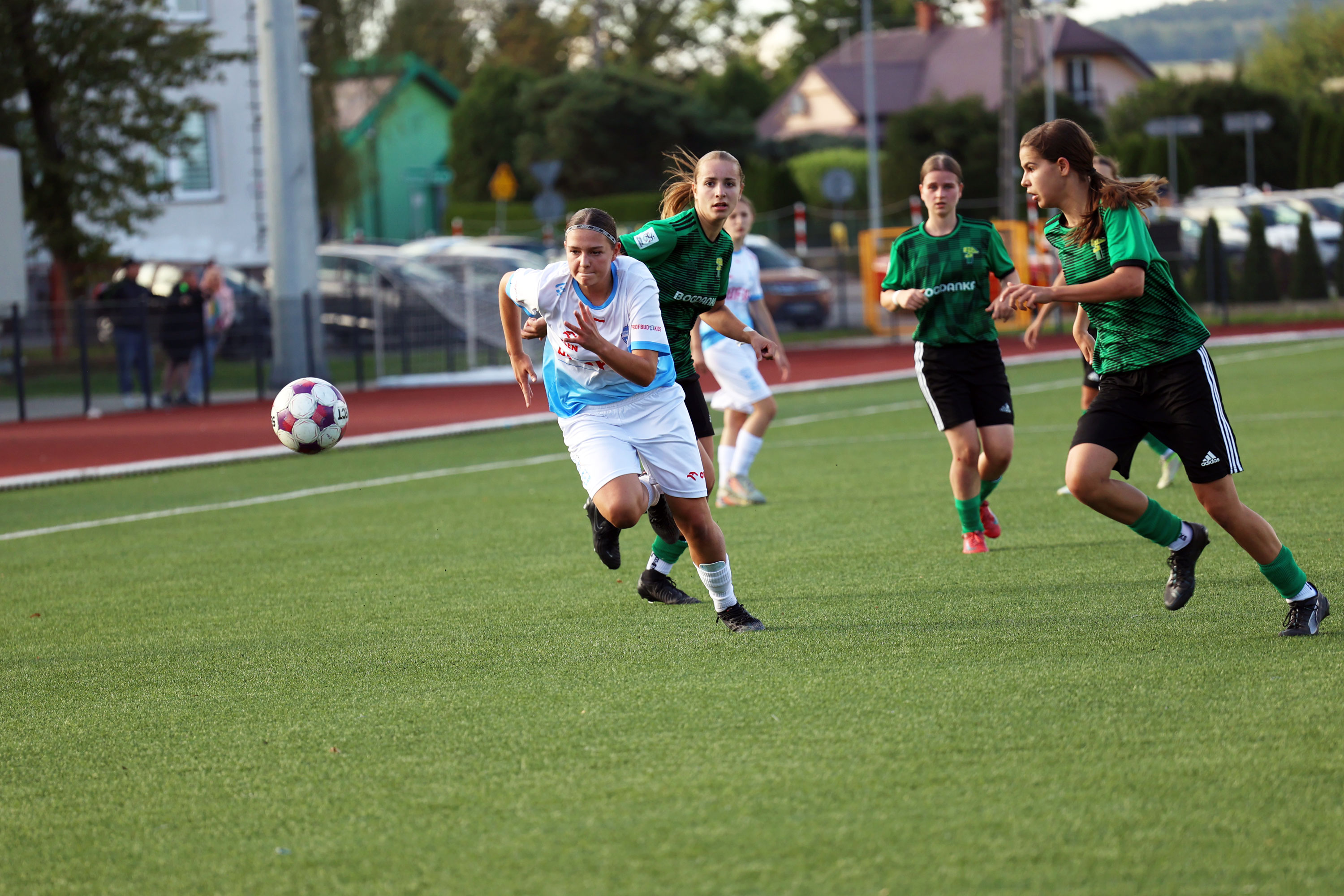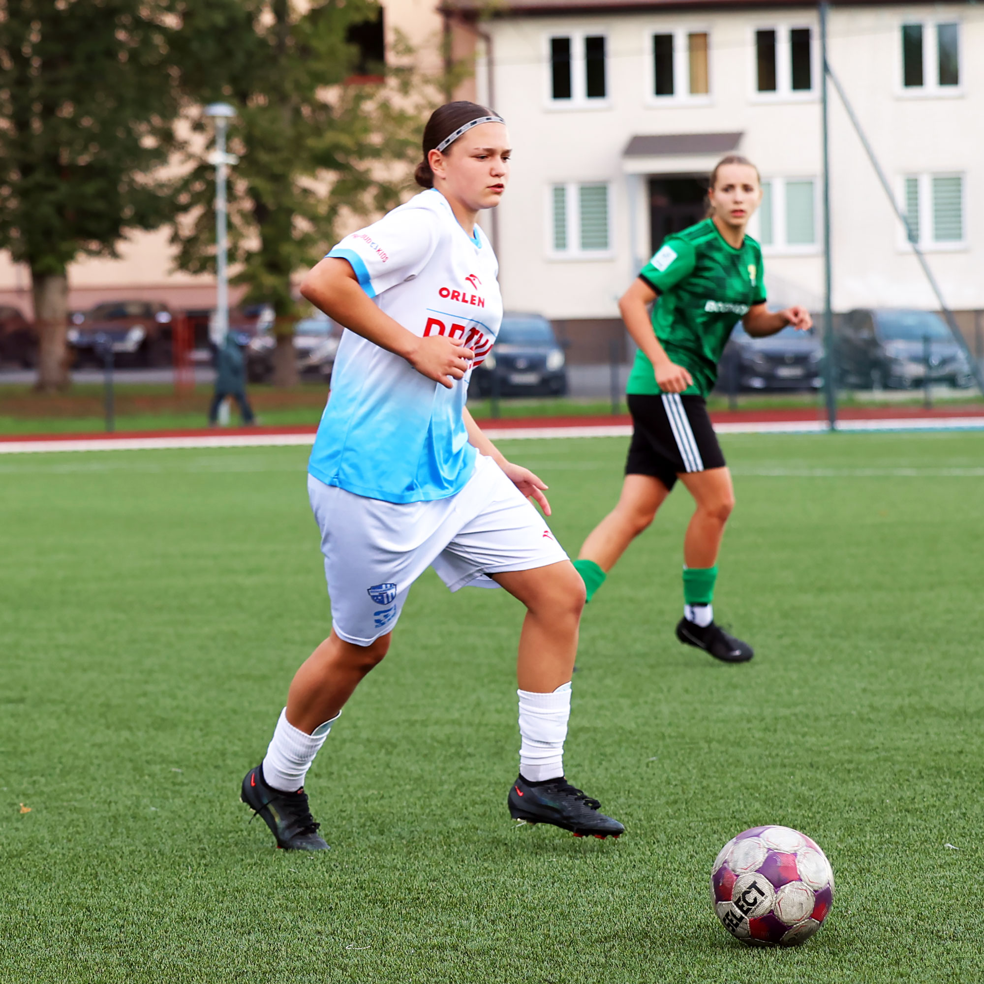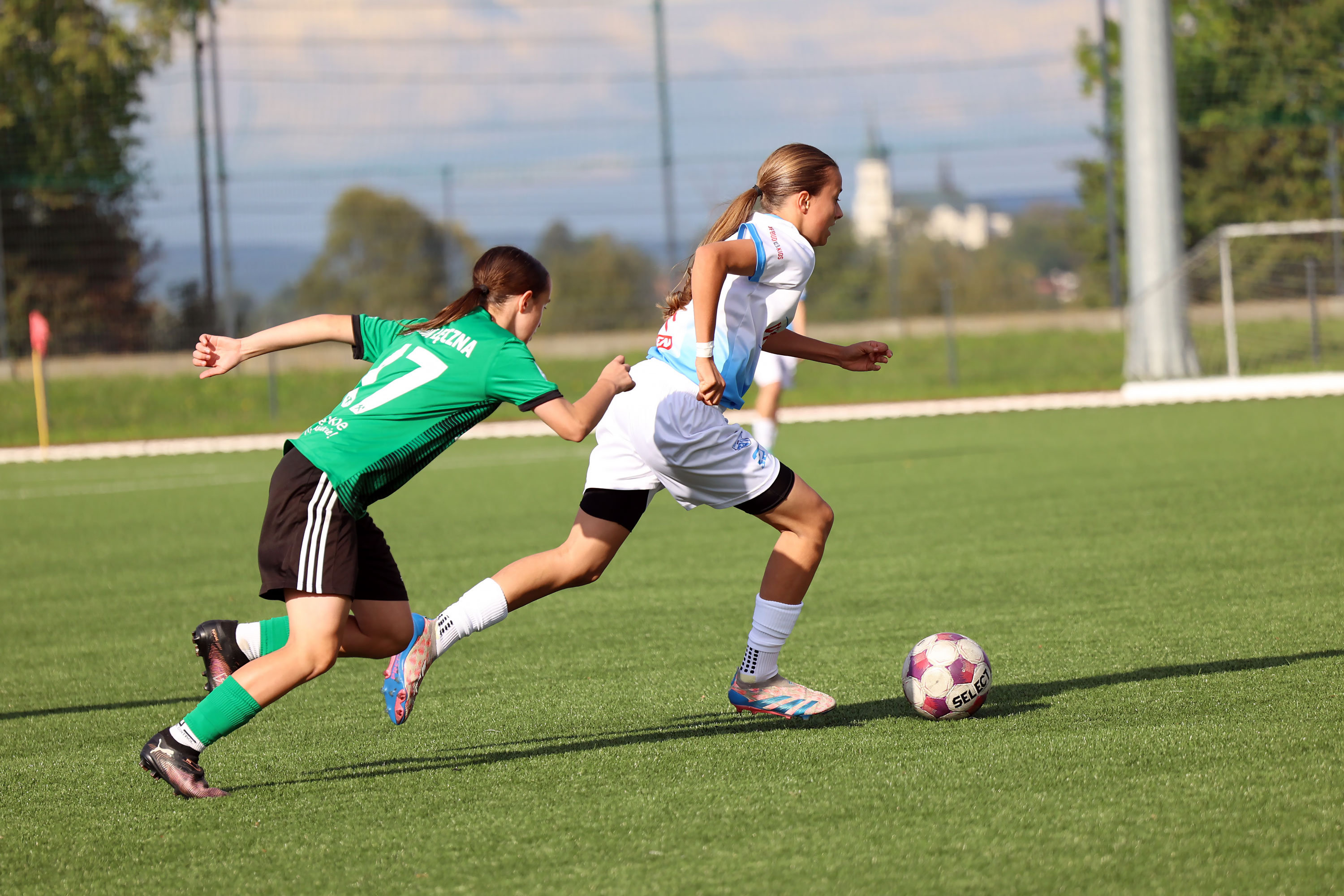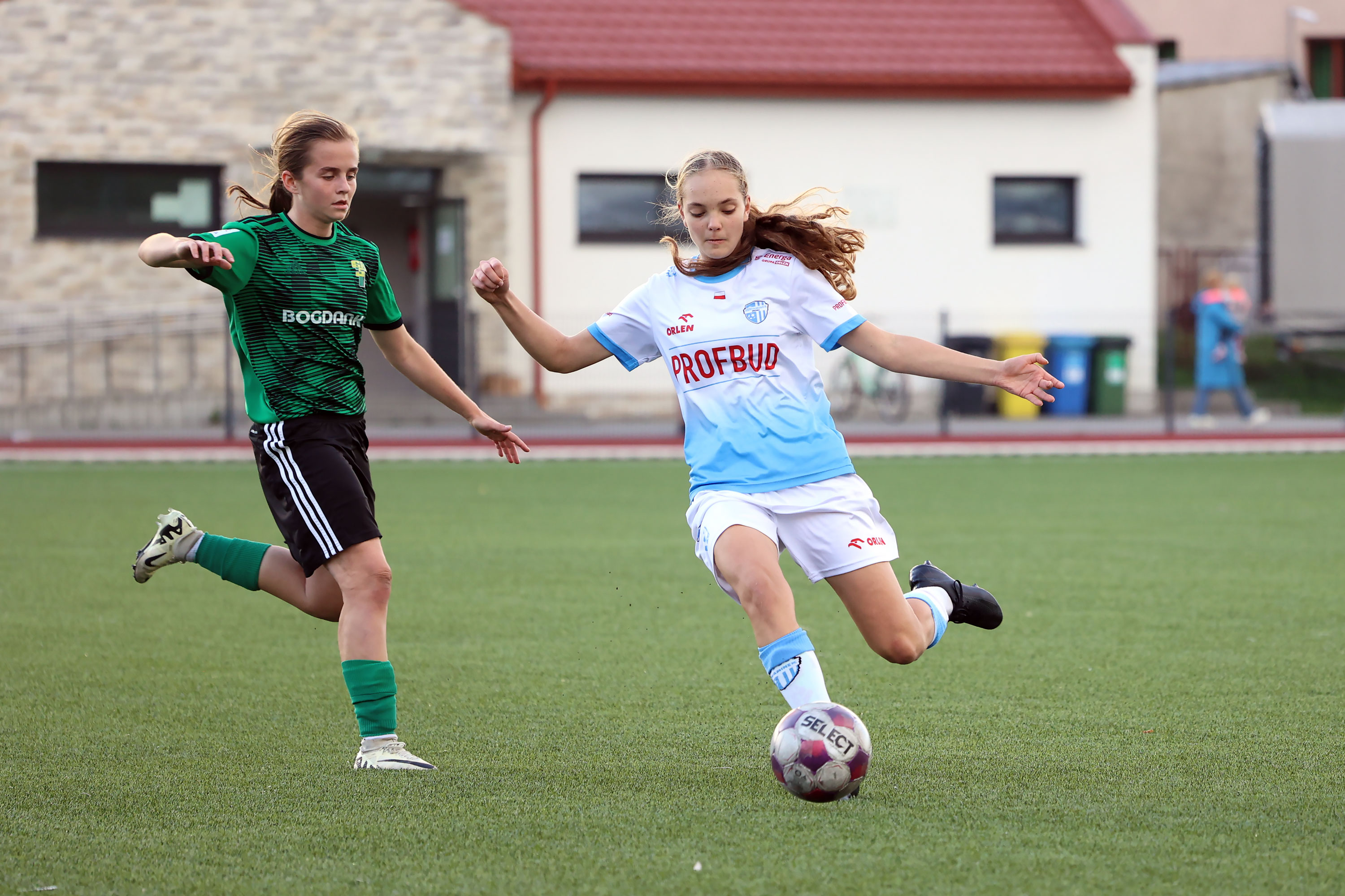 W Centralnej Lidze Juniorek U-16 zespoły Beniaminka Profbud Krosno i Górnika Łęczna stworzyły wyrównany i zacięty pojedynek. "Biało-niebieskie" objęły prowadzenie w tym meczu, ale kolejne dwie bramki strzeliły zawodniczki Górnika i wygrały to spotkanie 2:1. Foto: Wojciech Kuźmik.