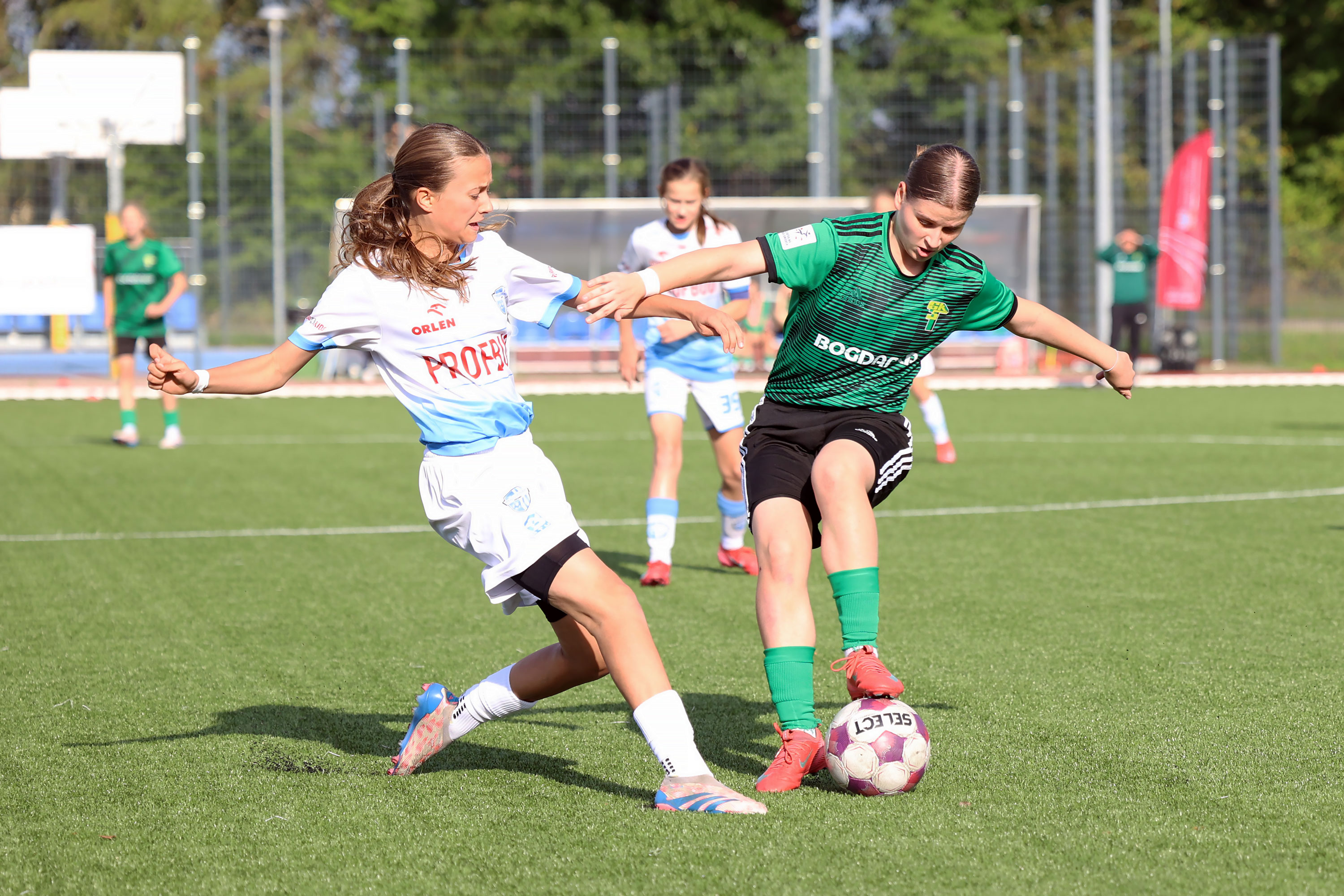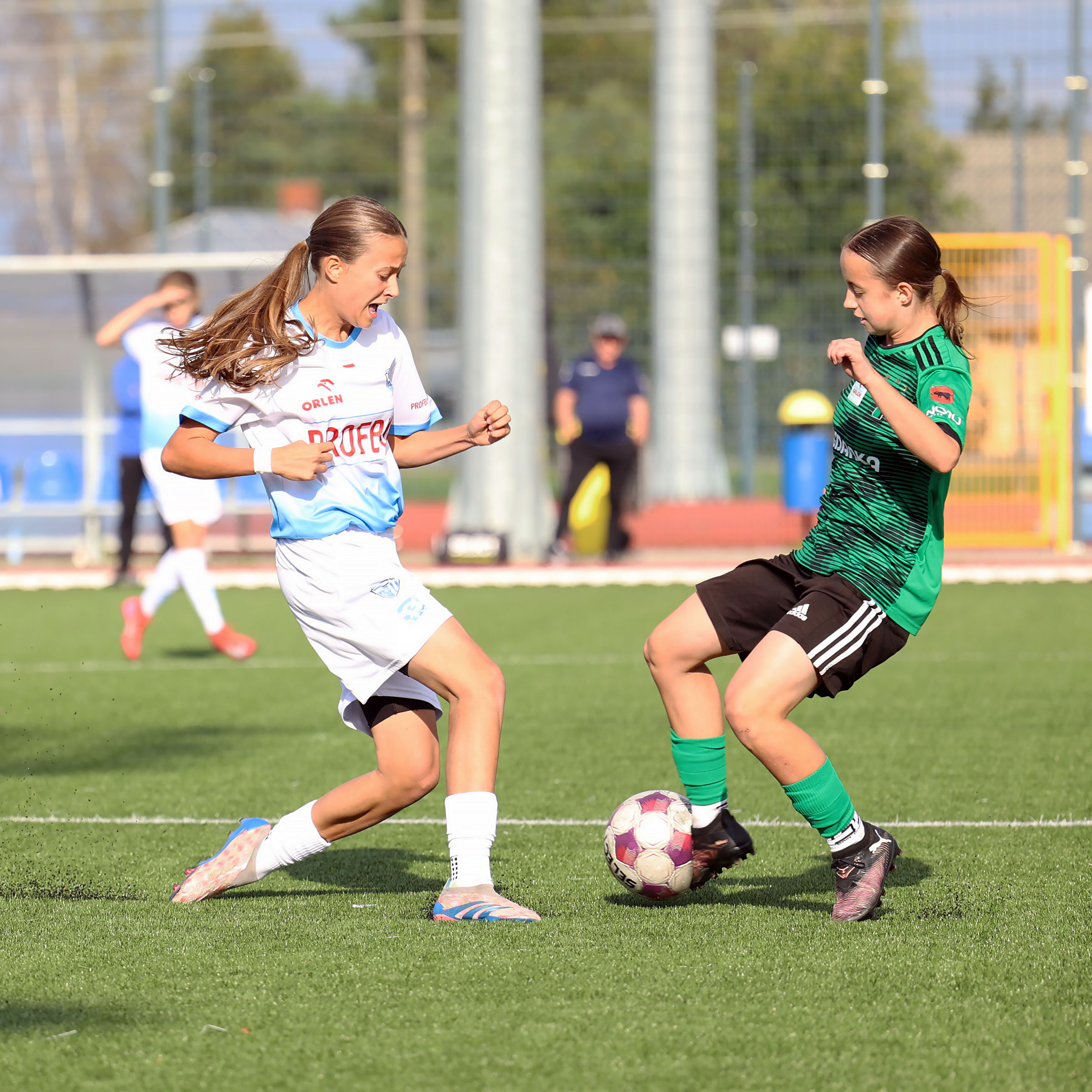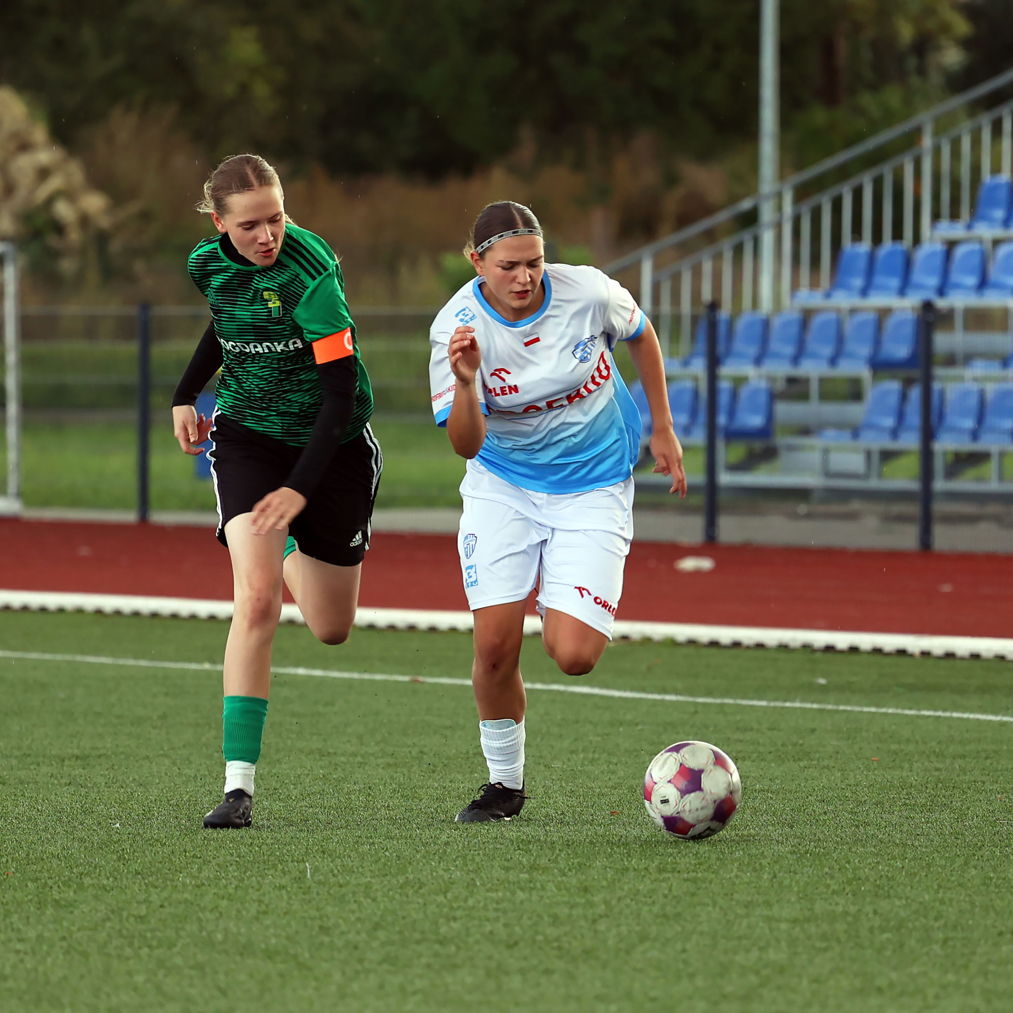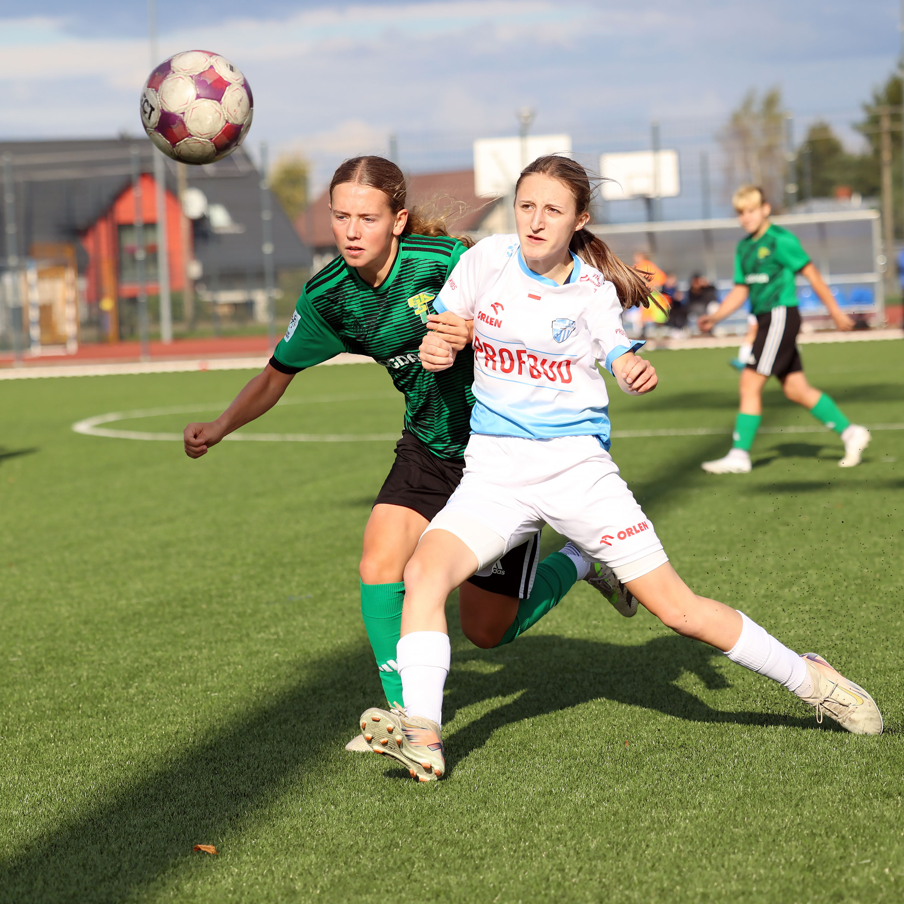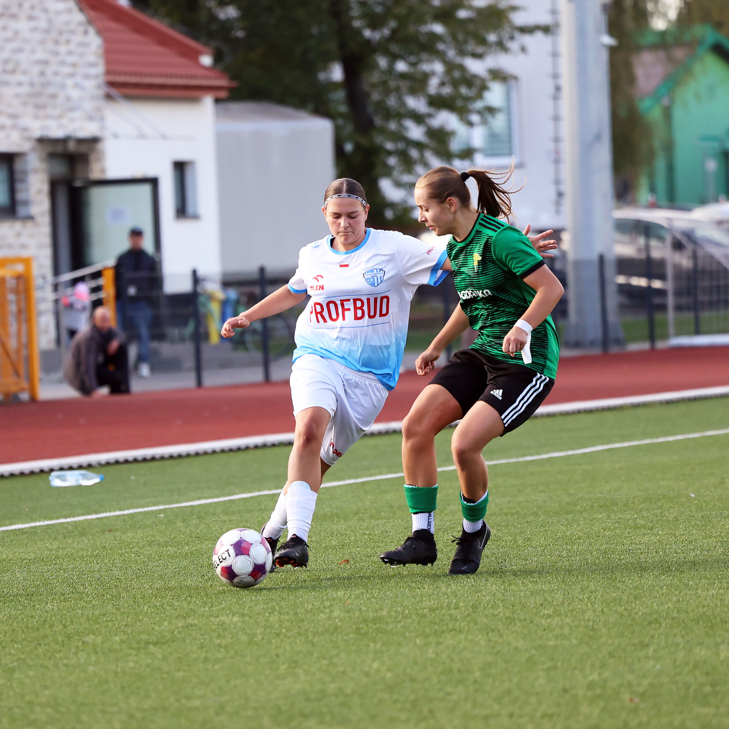 W Centralnej Lidze Juniorek U-16 zespoły Beniaminka Profbud Krosno i Górnika Łęczna stworzyły wyrównany i zacięty pojedynek. "Biało-niebieskie" objęły prowadzenie w tym meczu, ale kolejne dwie bramki strzeliły zawodniczki Górnika i wygrały to spotkanie 2:1. Foto: Wojciech Kuźmik.