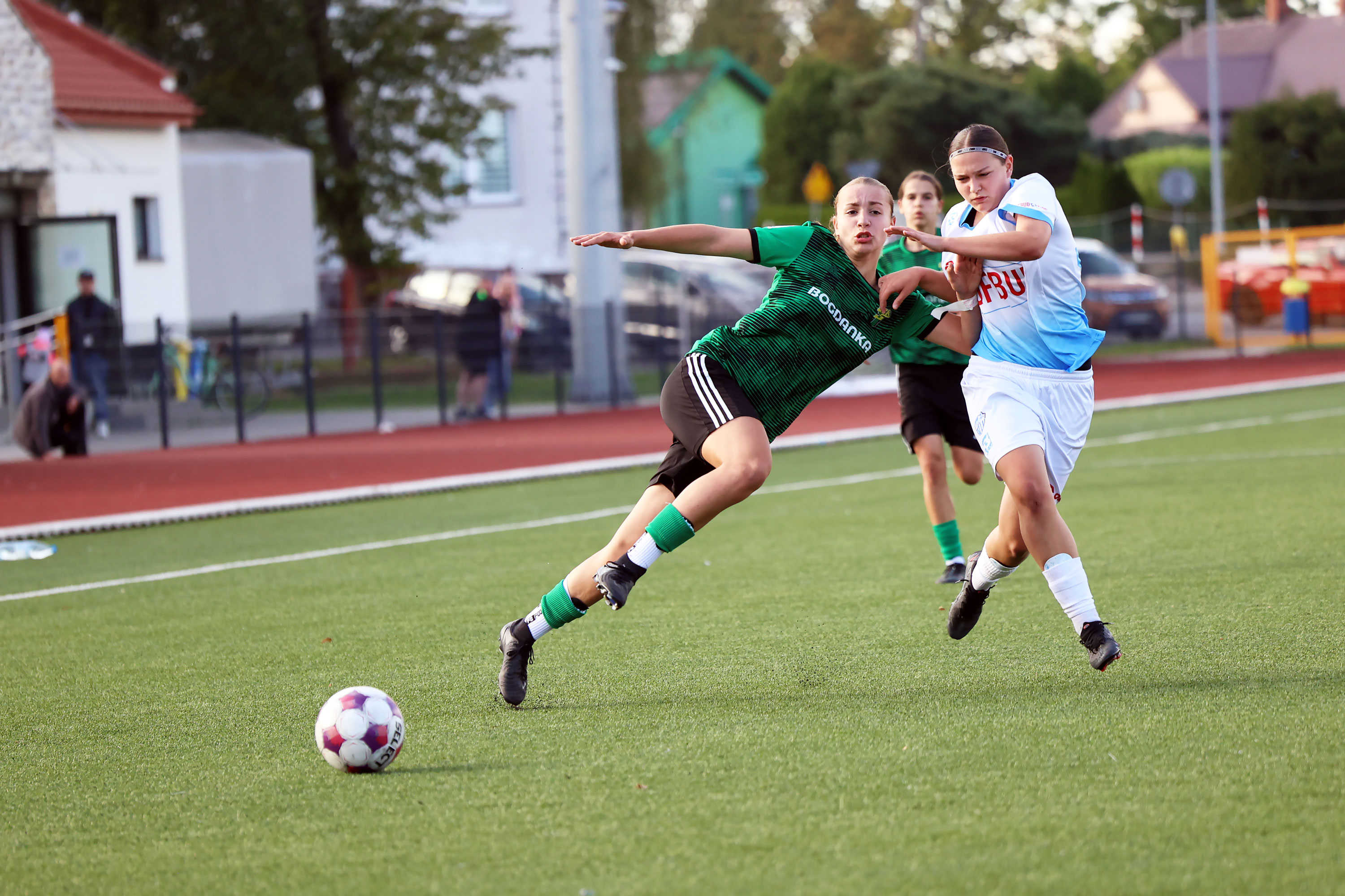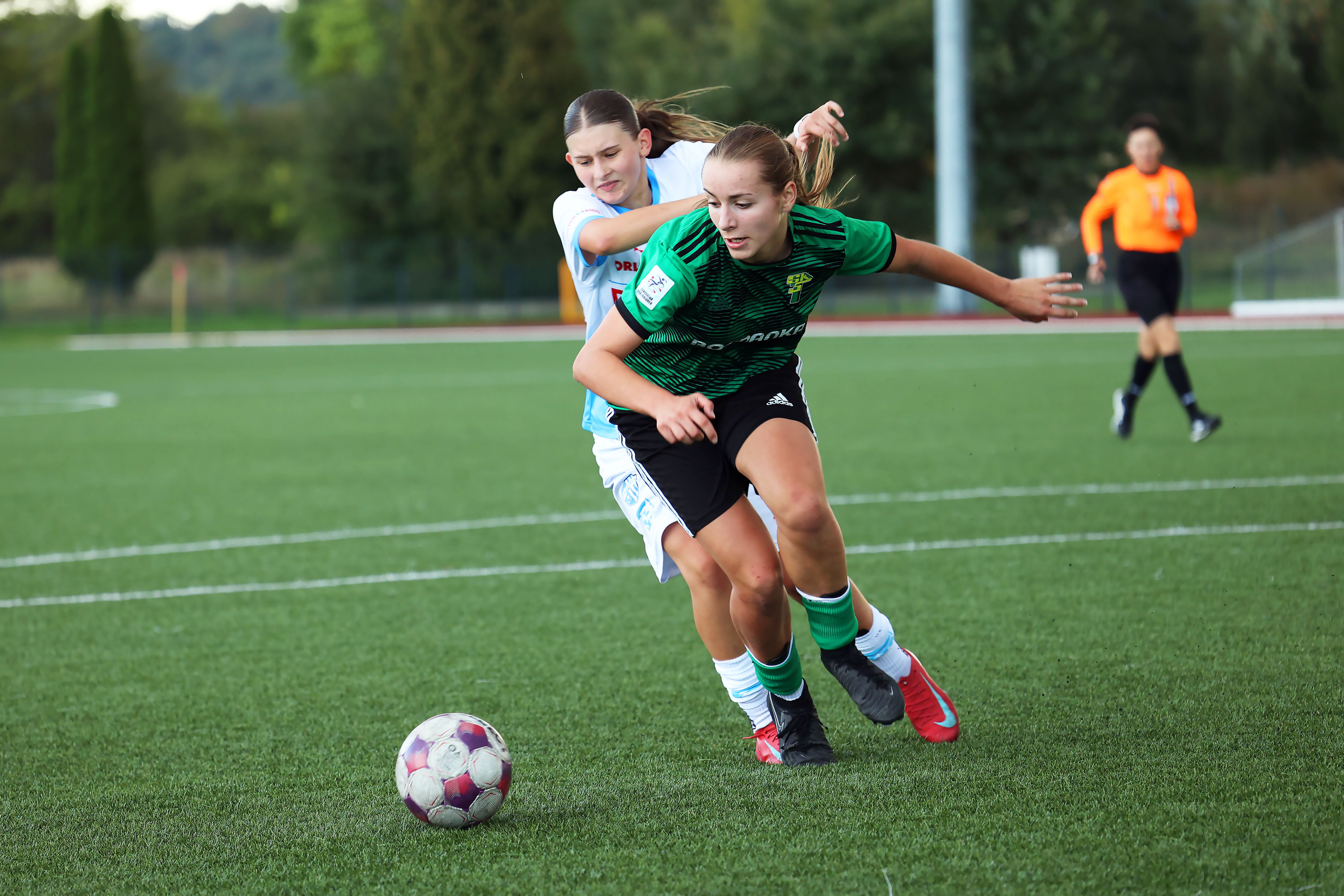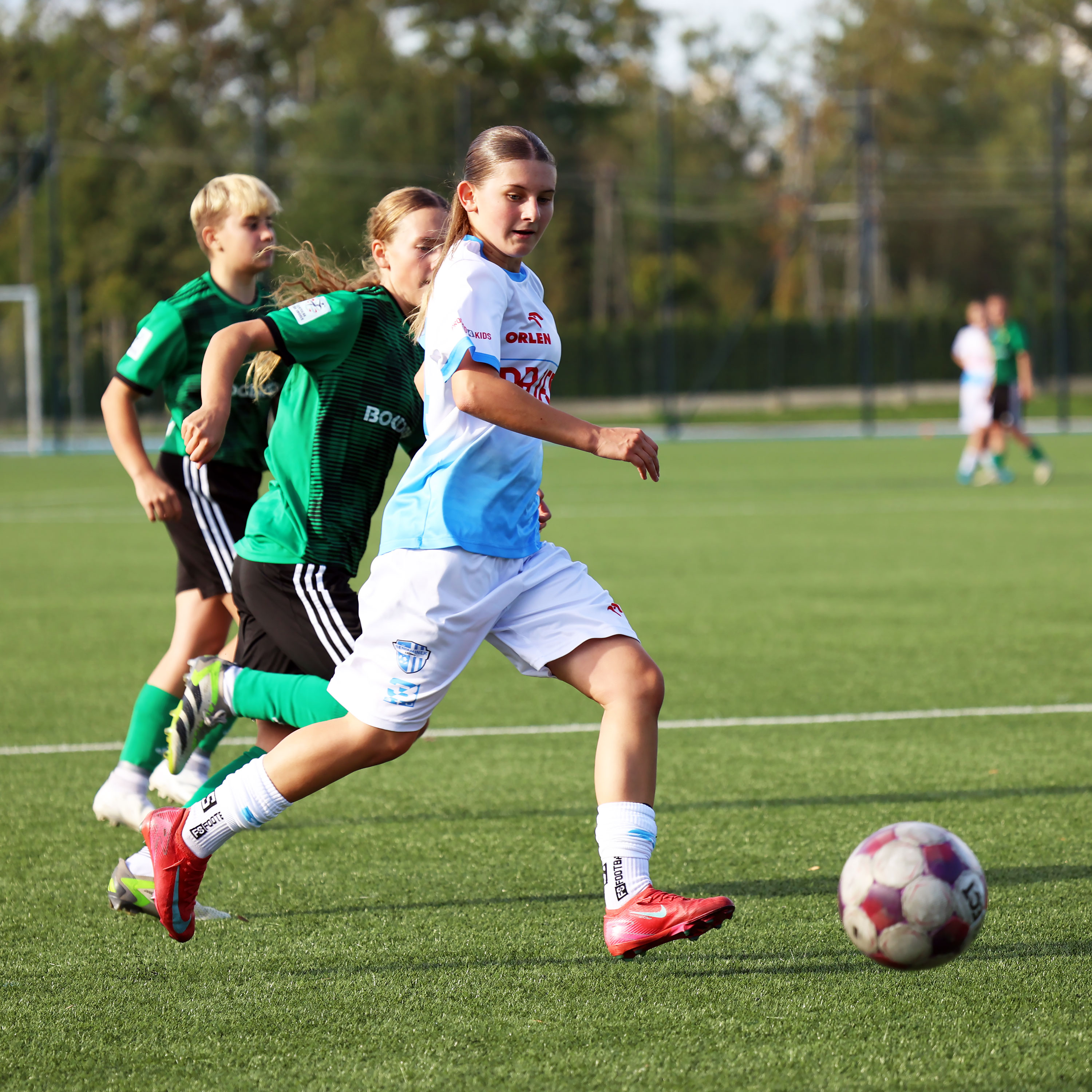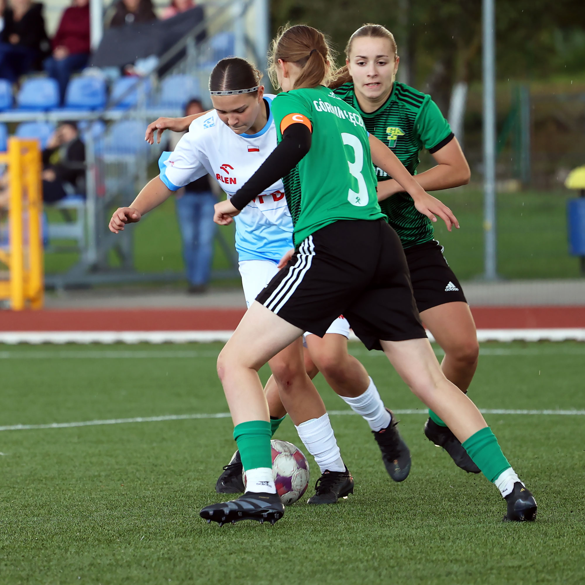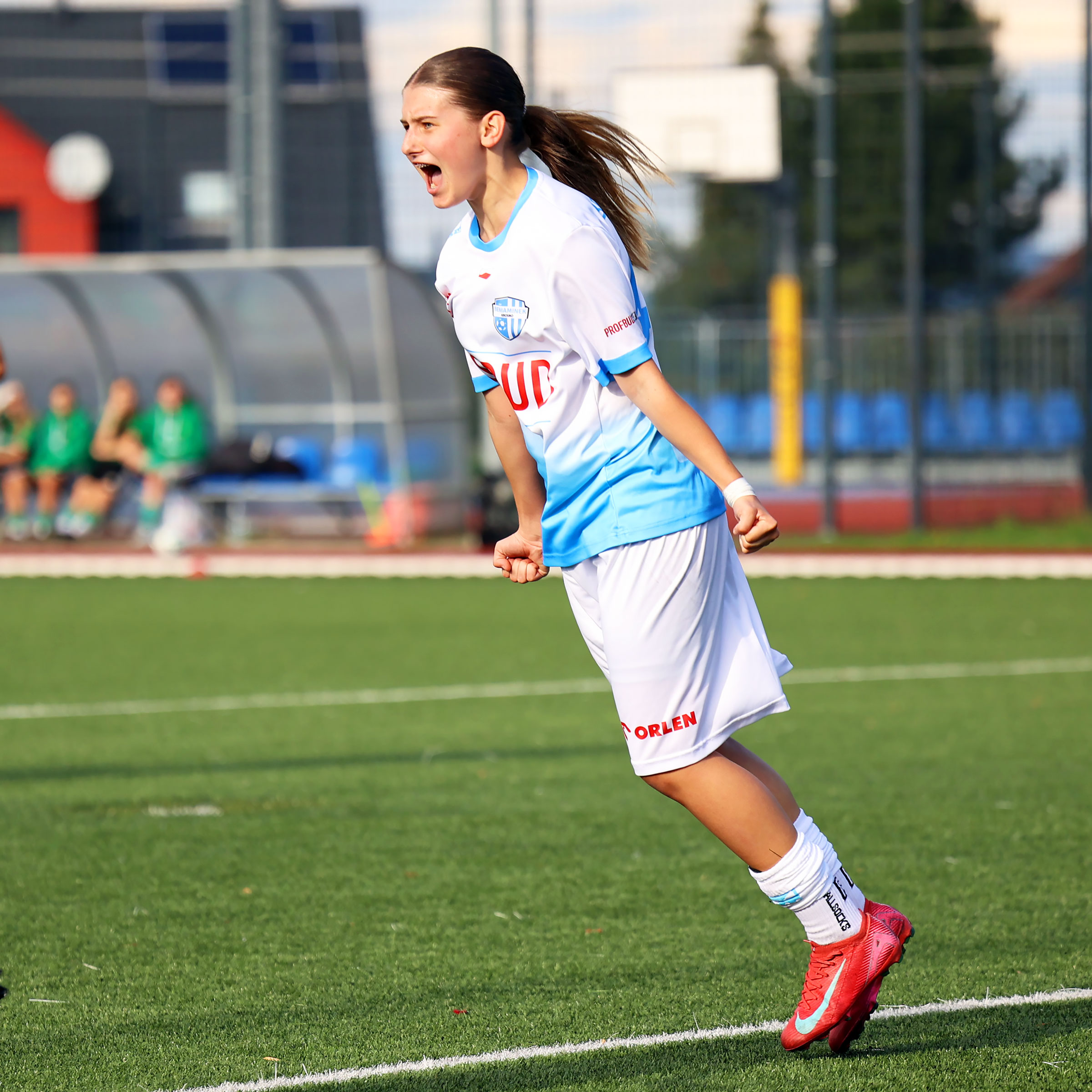 W Centralnej Lidze Juniorek U-16 zespoły Beniaminka Profbud Krosno i Górnika Łęczna stworzyły wyrównany i zacięty pojedynek. "Biało-niebieskie" objęły prowadzenie w tym meczu, ale kolejne dwie bramki strzeliły zawodniczki Górnika i wygrały to spotkanie 2:1. Foto: Wojciech Kuźmik.