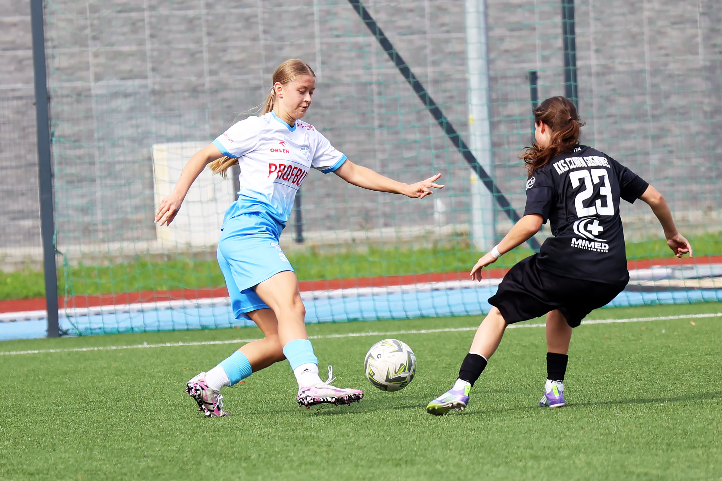To nie był dzień naszych dziewczyn. W meczu Centralnej Ligi Juniorek U-18 zespół Czarnych Sosnowiec, jedna z najmocniejszych drużyn w tej kategorii wiekowej w Polsce górowała od pierwszej do ostatniej minuty wysoko pokonując Beniaminka. Foto: Wojciech Kuźmik.