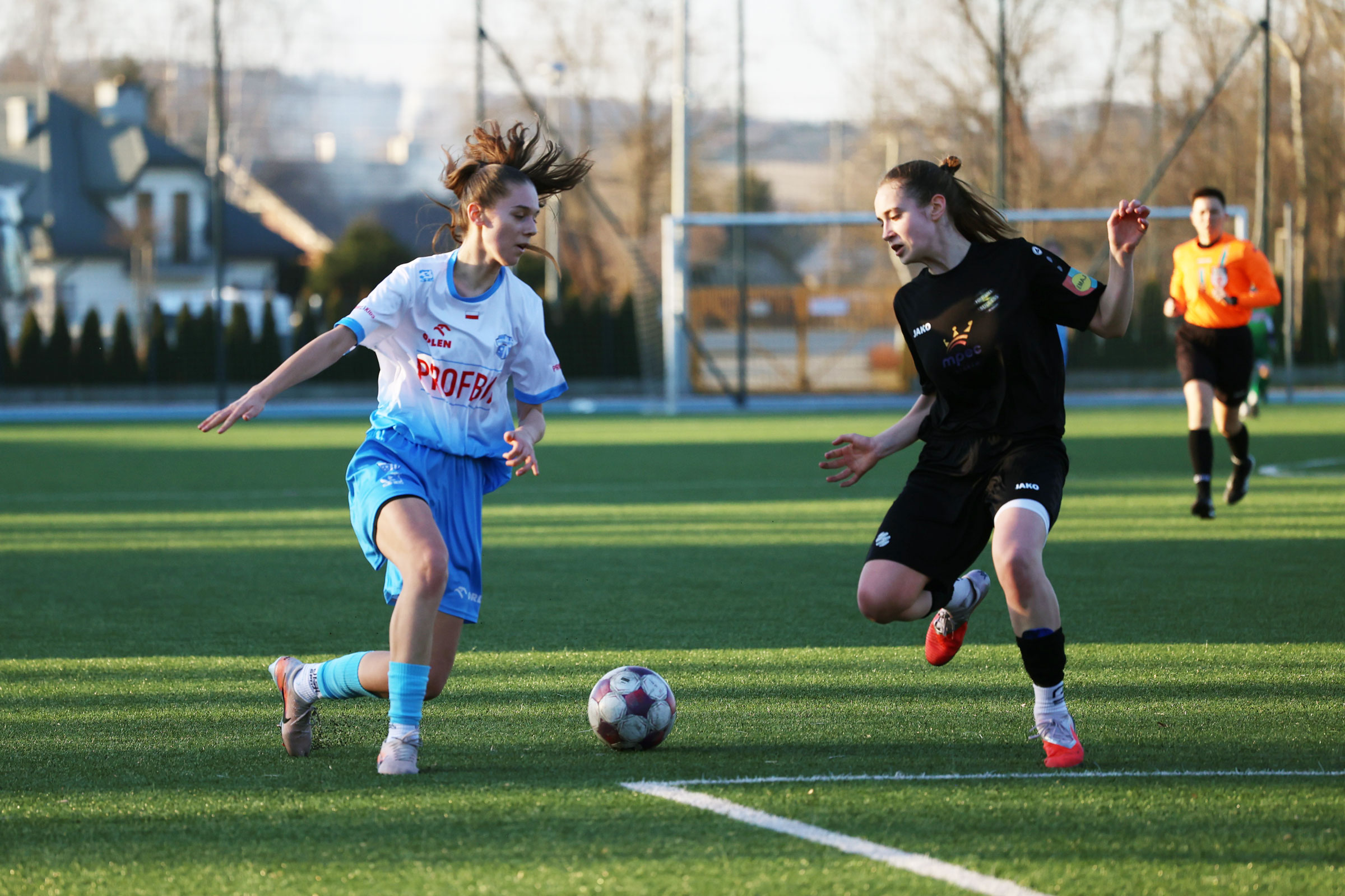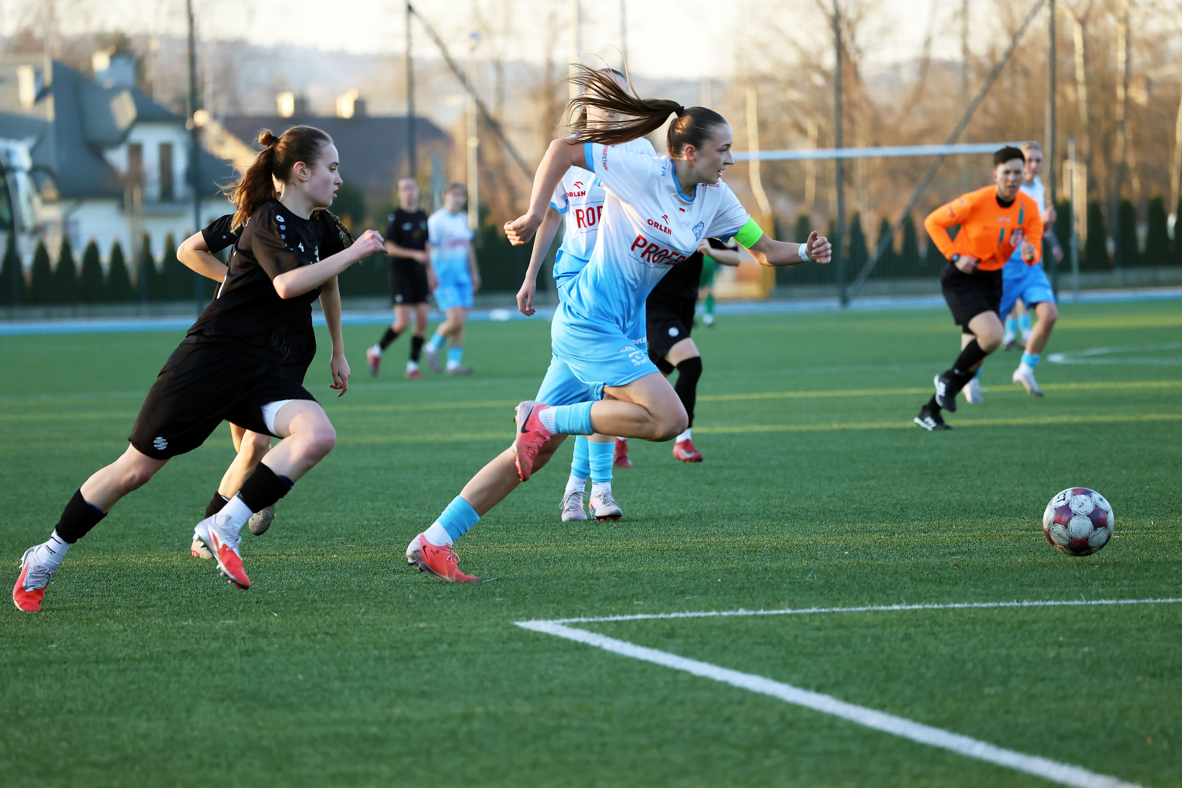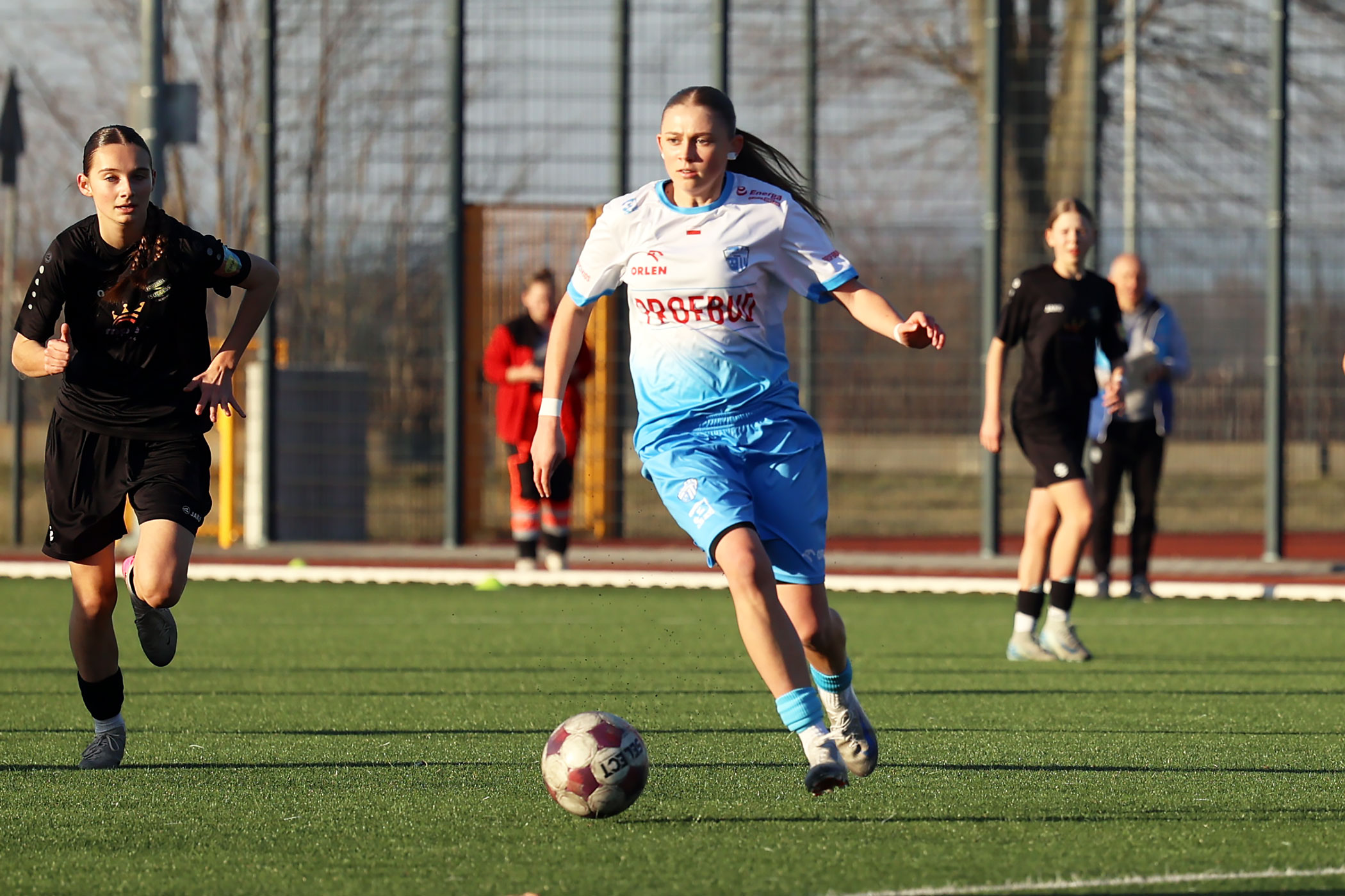 W inaugurującym rundę wiosenne w Centralnej Lidze Juniorek U-18 spotkaniu, zespół Beniaminka Profbud Krosno podejmował drużynę Football Success Academy Kraków. Po emocjonującym meczu "biało-niebieskie" dopisały trzy punkty do swojego ligowego dorobku zwyciężając 2:1. Foto: Wojciech Kuźmik.