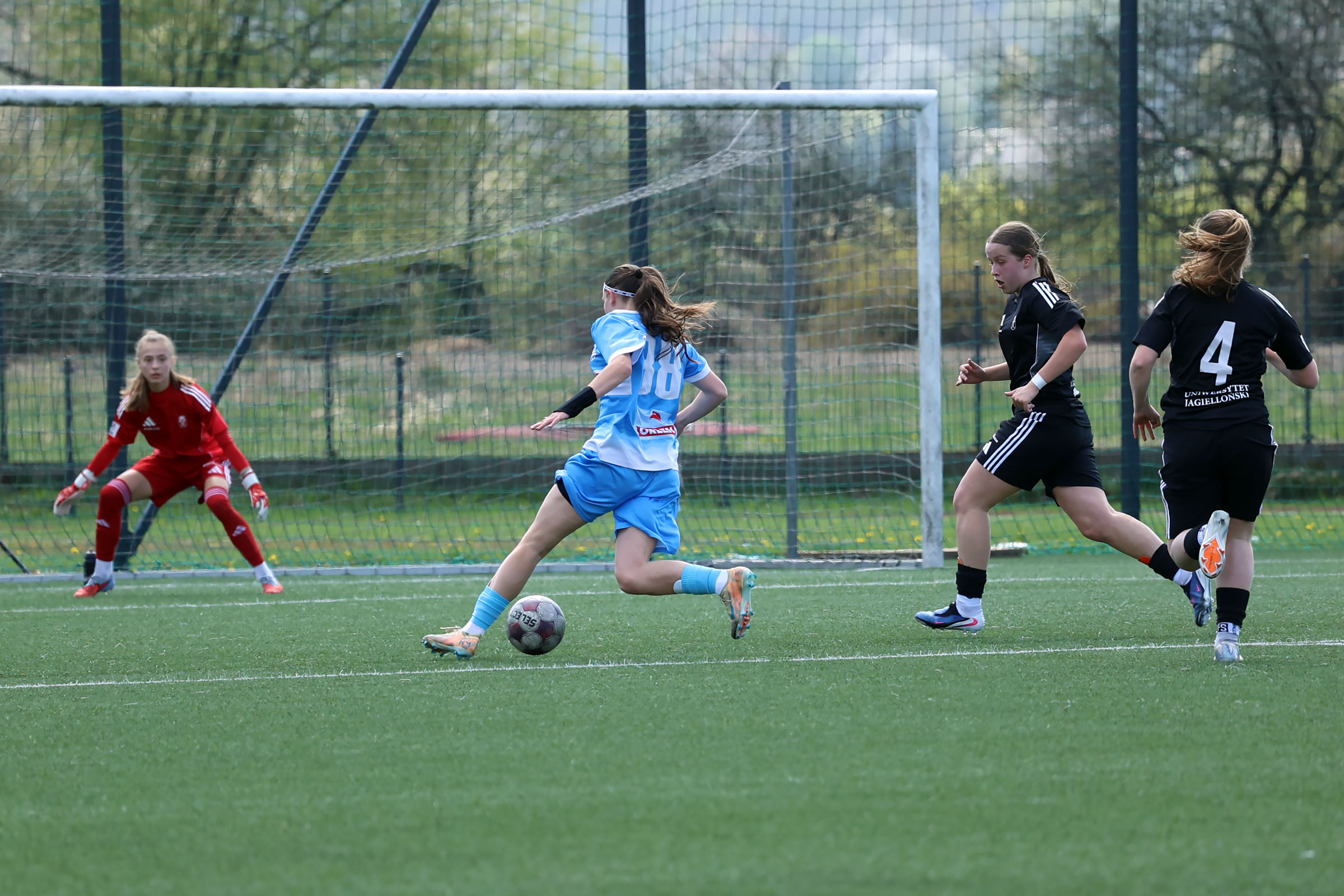 Mecz Beniaminka Profbud Krosno z KS Uniwersytet Jagielloński Kraków w ramach Centralnej Ligi Juniorek U-18 to kolejny ligowy pojedynek naszych dziewczyn w tym roku. W spotkaniu tym długo utrzymywał się bezbramkowy rezultat, w samej końcówce krakowiankom udało się przechylić szalę zwycięstwa na swoją stronę. Foto: Wojciech Kuźmik.