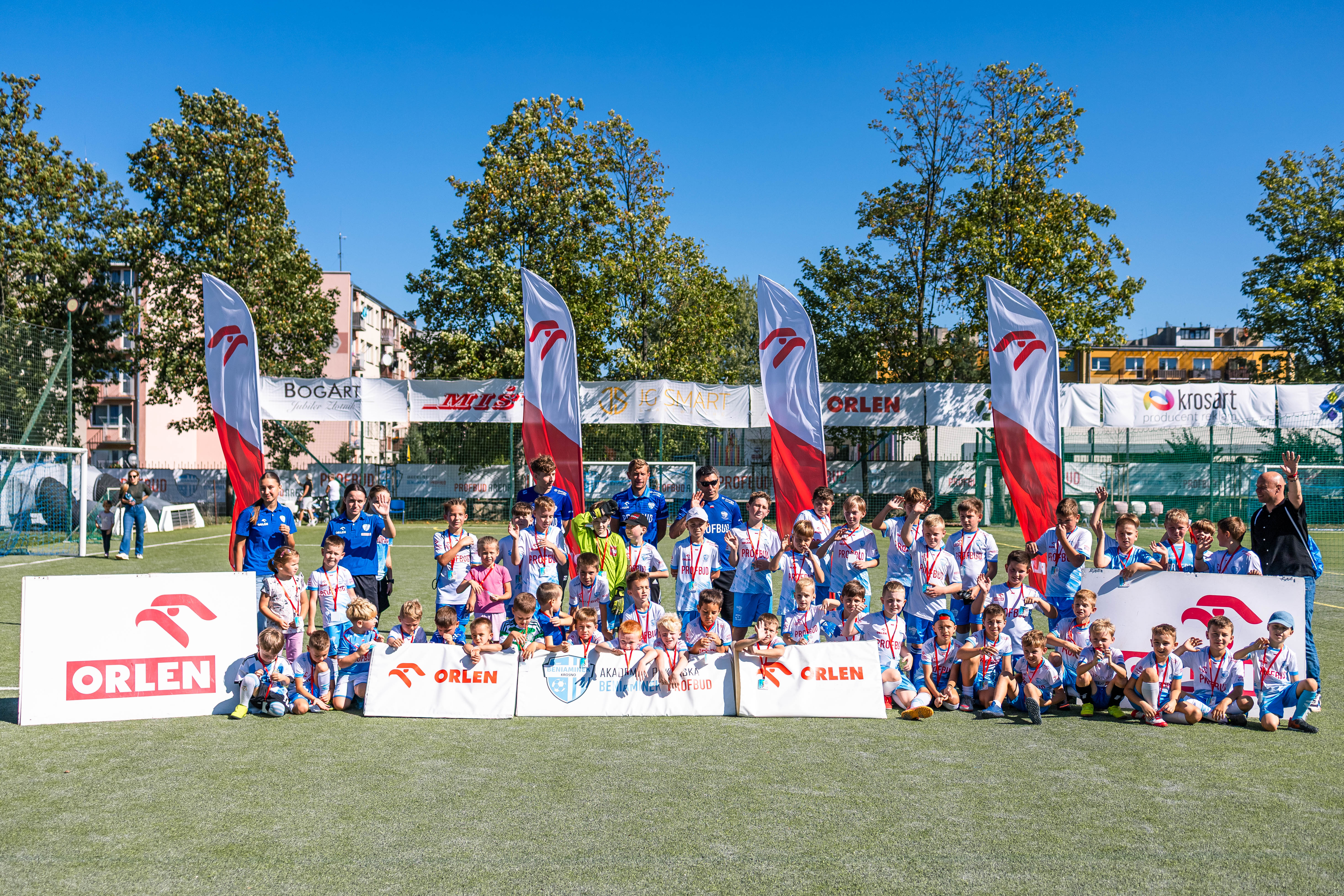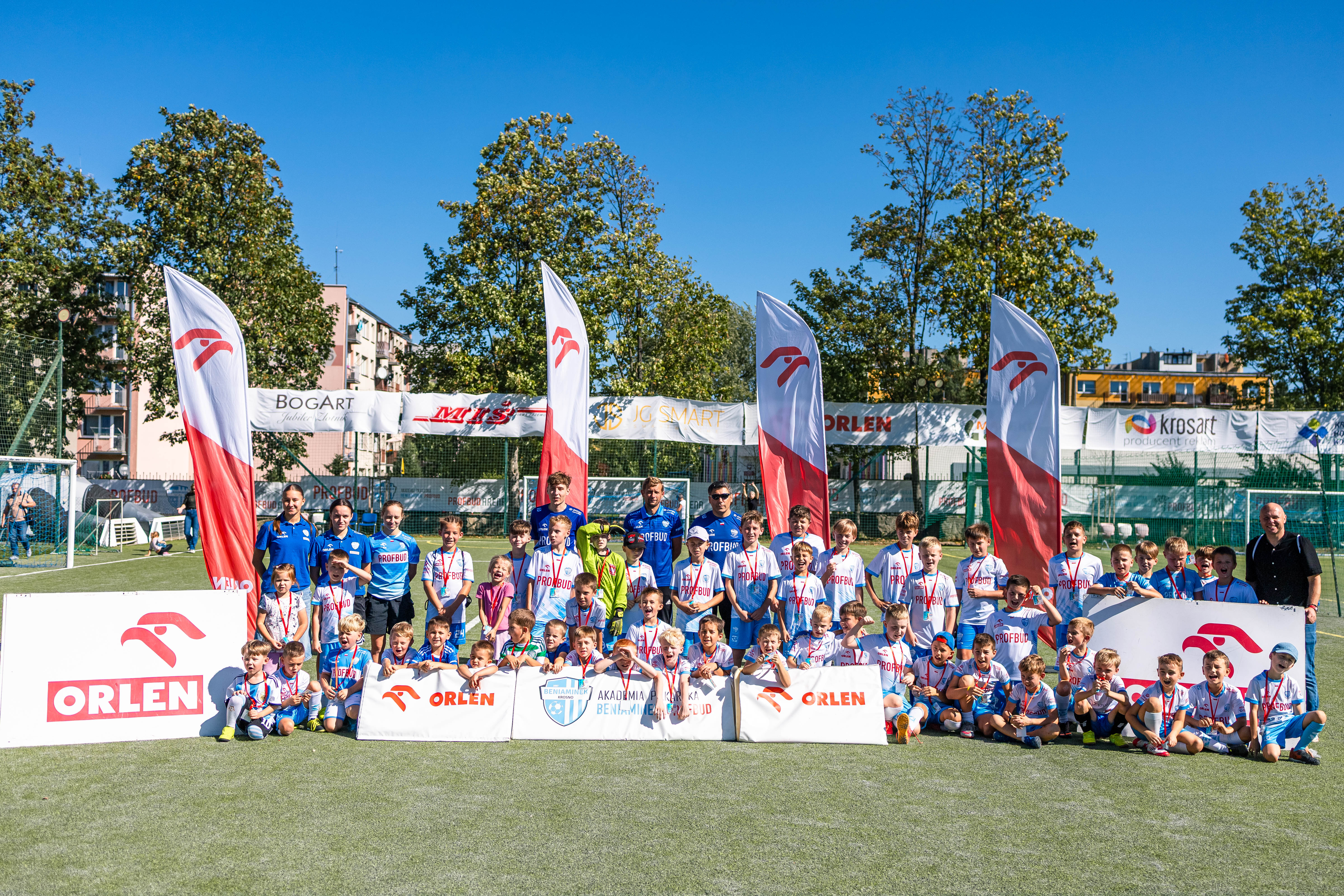Było mnóstwo piłkarskich pojedynków, była i niespodzianka dla uczestników ORLEN Beniaminek Soccer Schools Ligi. Nasi mali zawodnicy, a także i zawodniczki, spotkali się po raz drugi w tym sezonie na piłkarskim festiwalu, by stoczyć sportową rywalizacją, a także spotkać się z naszymi gośćmi. W niedzielę odwiedzili nas zawodnicy koszykarskiego klubu Miasto Szkła Krosno, którzy w zbliżającym się sezonie wystąpią w rozgrywkach ORLEN Ekstraligi! Foto: Kacper Kaczorowski.