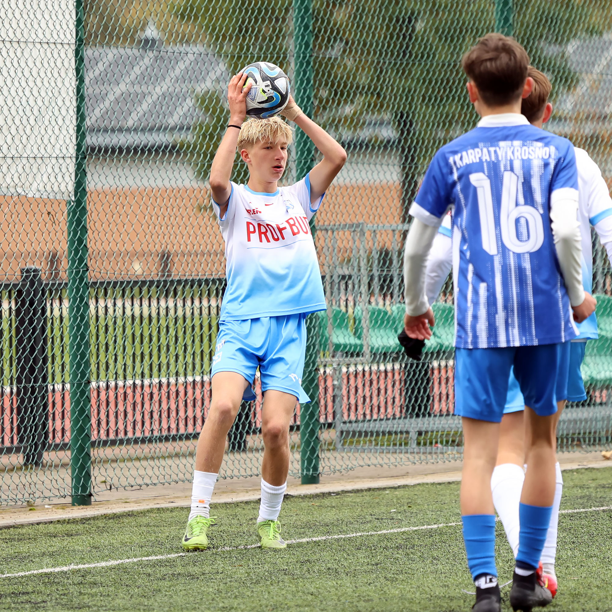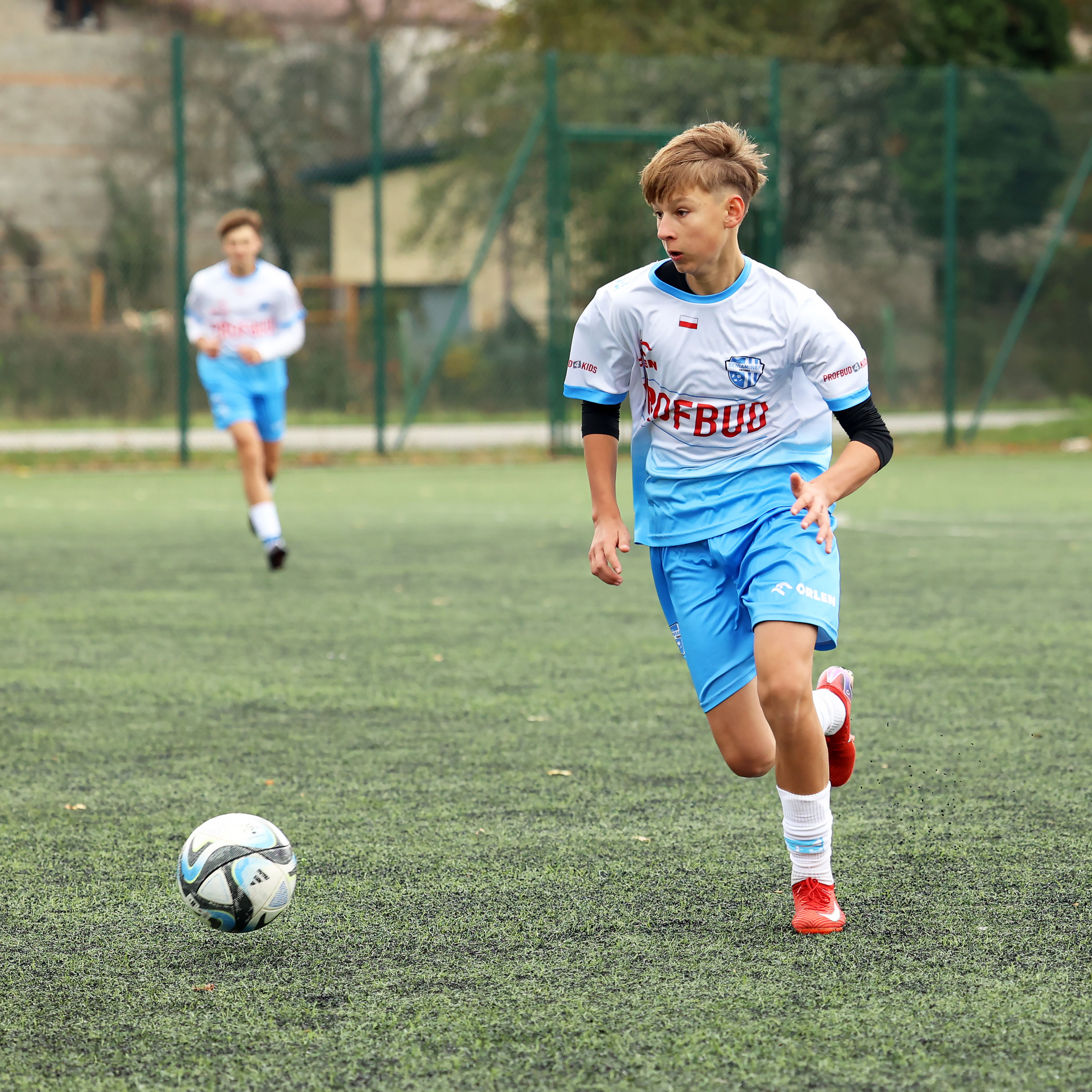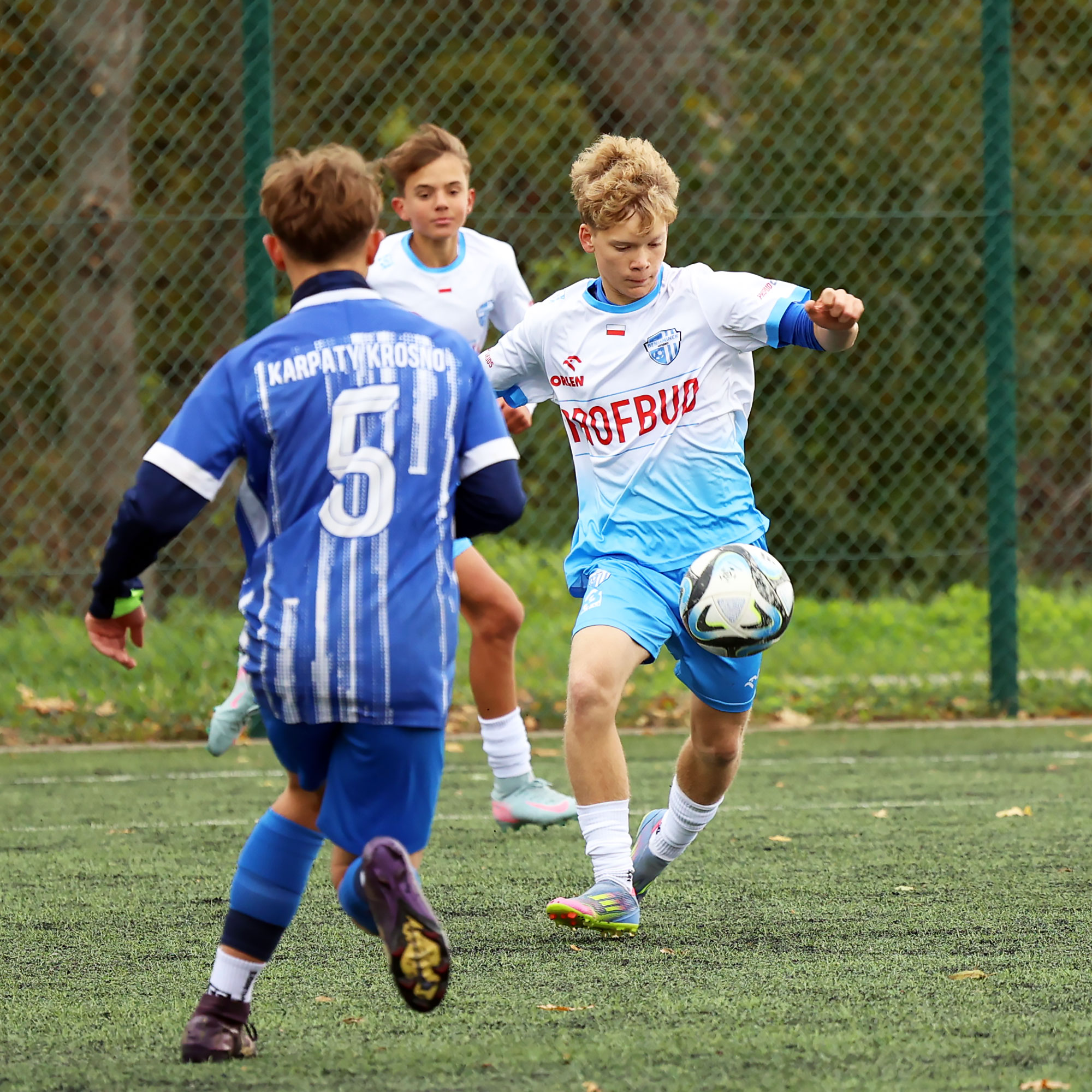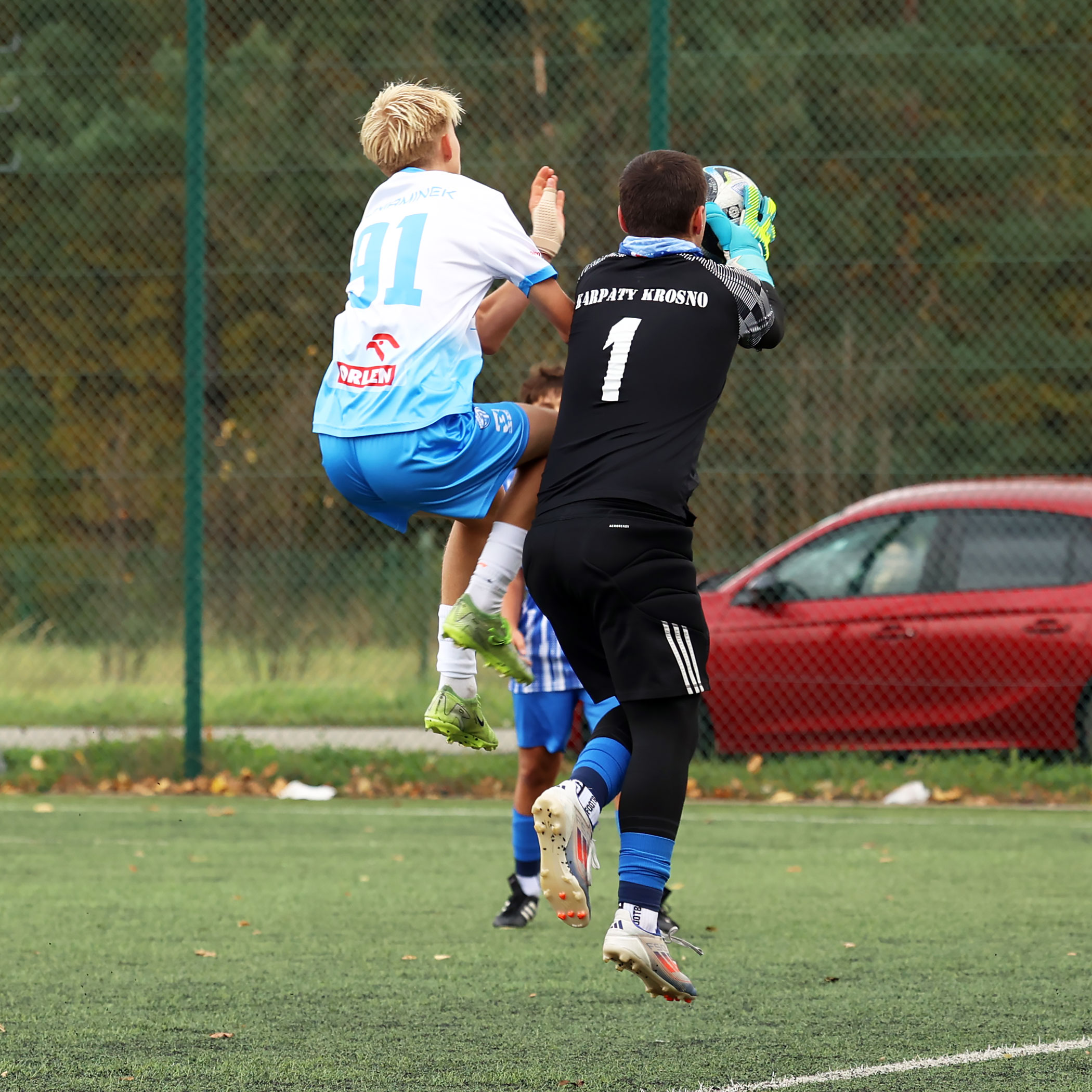 W ramach Podkarpackiej 3 Ligi Juniora Młodszego na boisku przy ul. Bursaki spotkały się dwie krośnieńskie drużyny. Zespół Beniaminka złożony z uczniów z rocznika 2010 uczęszczających do Liceum Edu-Sport z Oddziałami Mistrzostwa Sportowego zagrał świetny mecz i zasłużenie sięgnął po zwycięstwo. Foto: Wojciech Kuźmik.