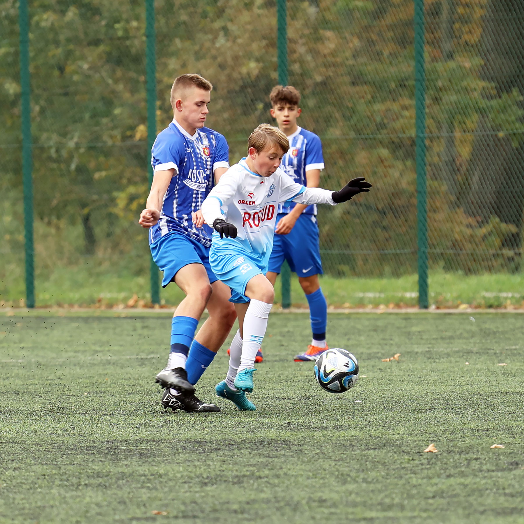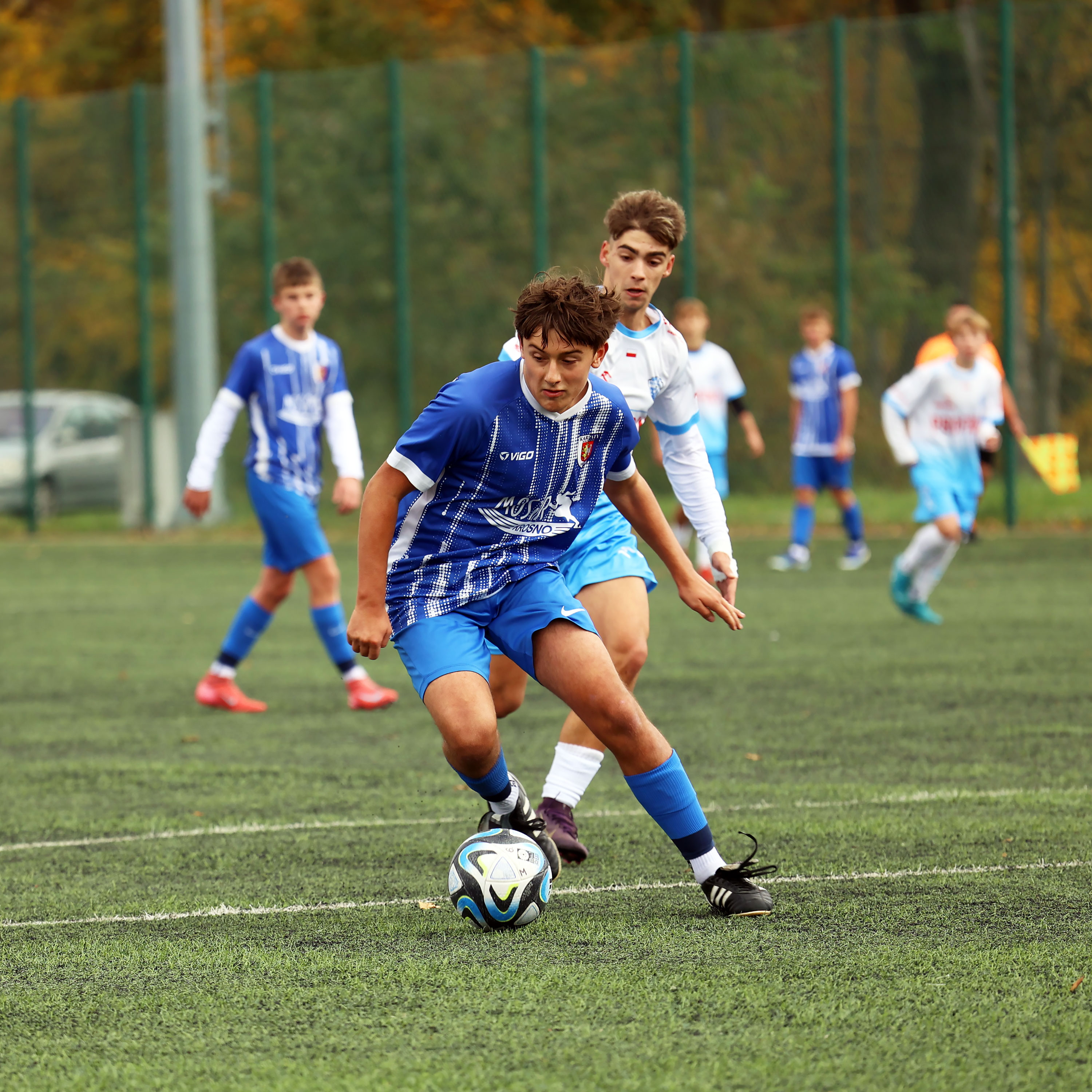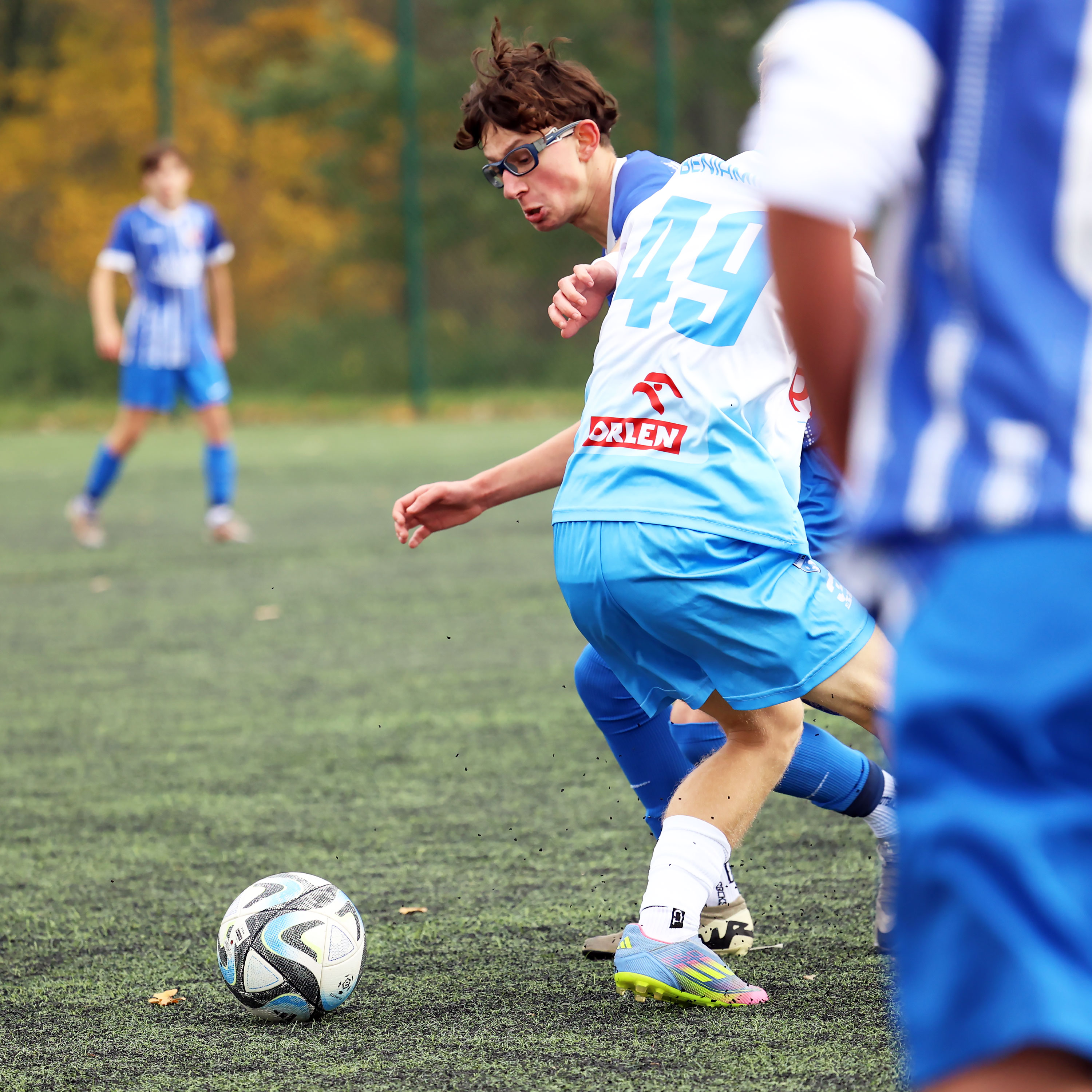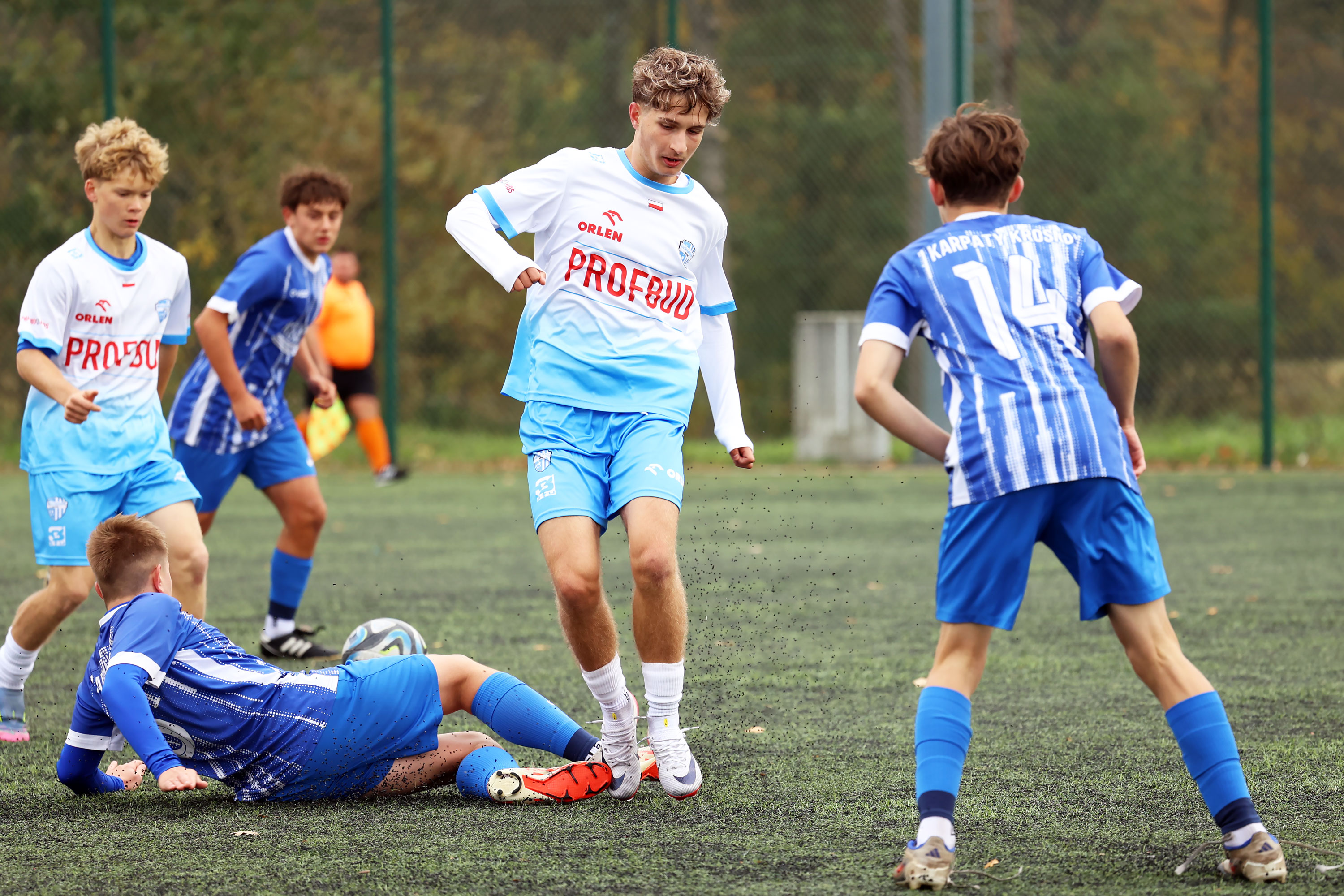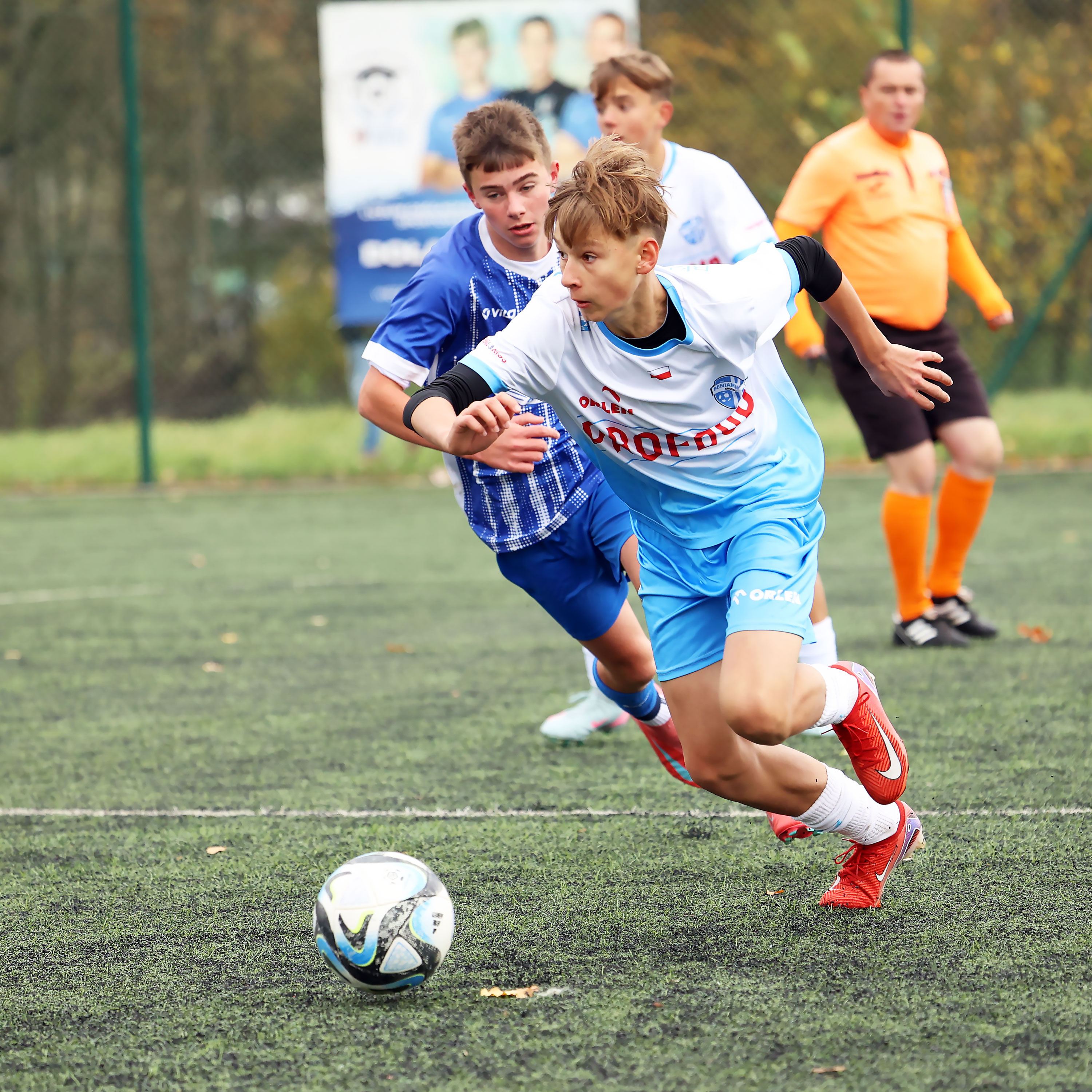 W ramach Podkarpackiej 3 Ligi Juniora Młodszego na boisku przy ul. Bursaki spotkały się dwie krośnieńskie drużyny. Zespół Beniaminka złożony z uczniów z rocznika 2010 uczęszczających do Liceum Edu-Sport z Oddziałami Mistrzostwa Sportowego zagrał świetny mecz i zasłużenie sięgnął po zwycięstwo. Foto: Wojciech Kuźmik.