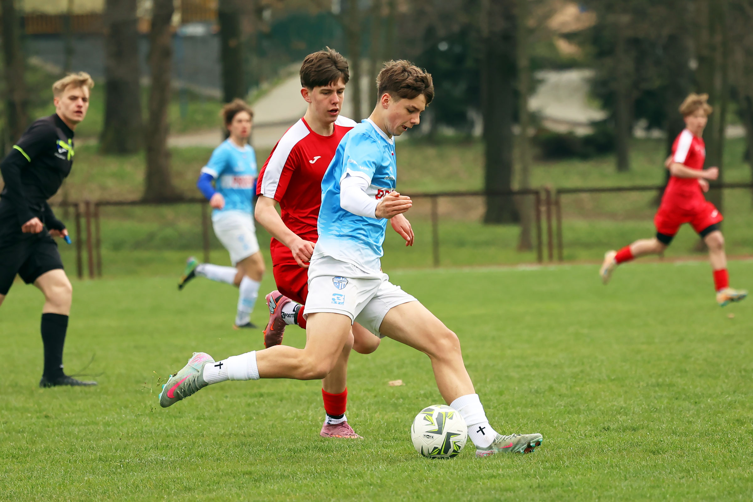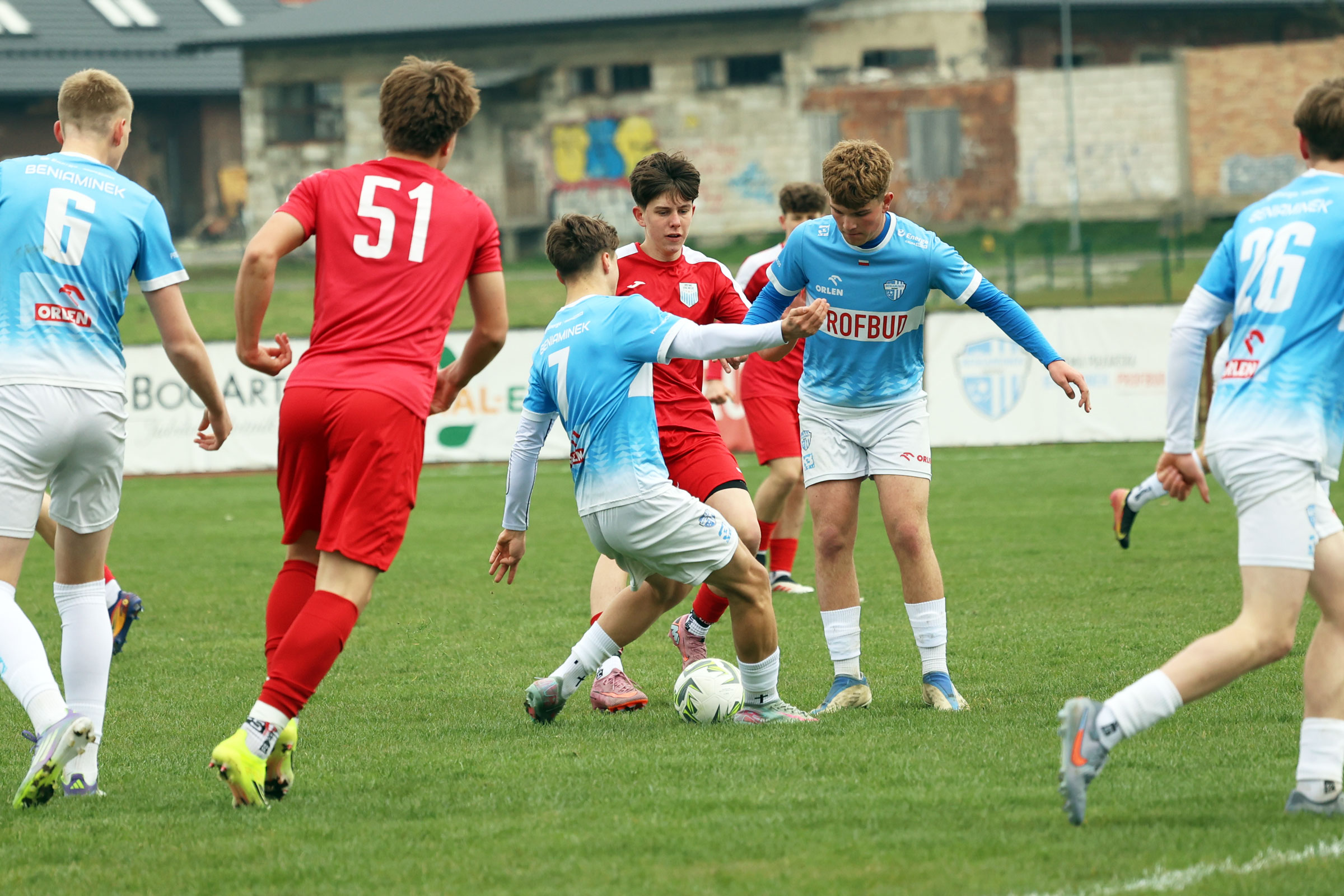 W kategorii Juniora Młodszego zespół Beniaminka Profbud Krosno w rozgrywkach Podkarpackiej 1 Ligi zmierzył się z UKS SMS Kolorado Wola Chorzelowska Mielec. Zacięty pojedynek goli nie przyniósł, ale sytuacji bramkowych i emocji nie brakowało. Foto: Wojciech Kuźmik.