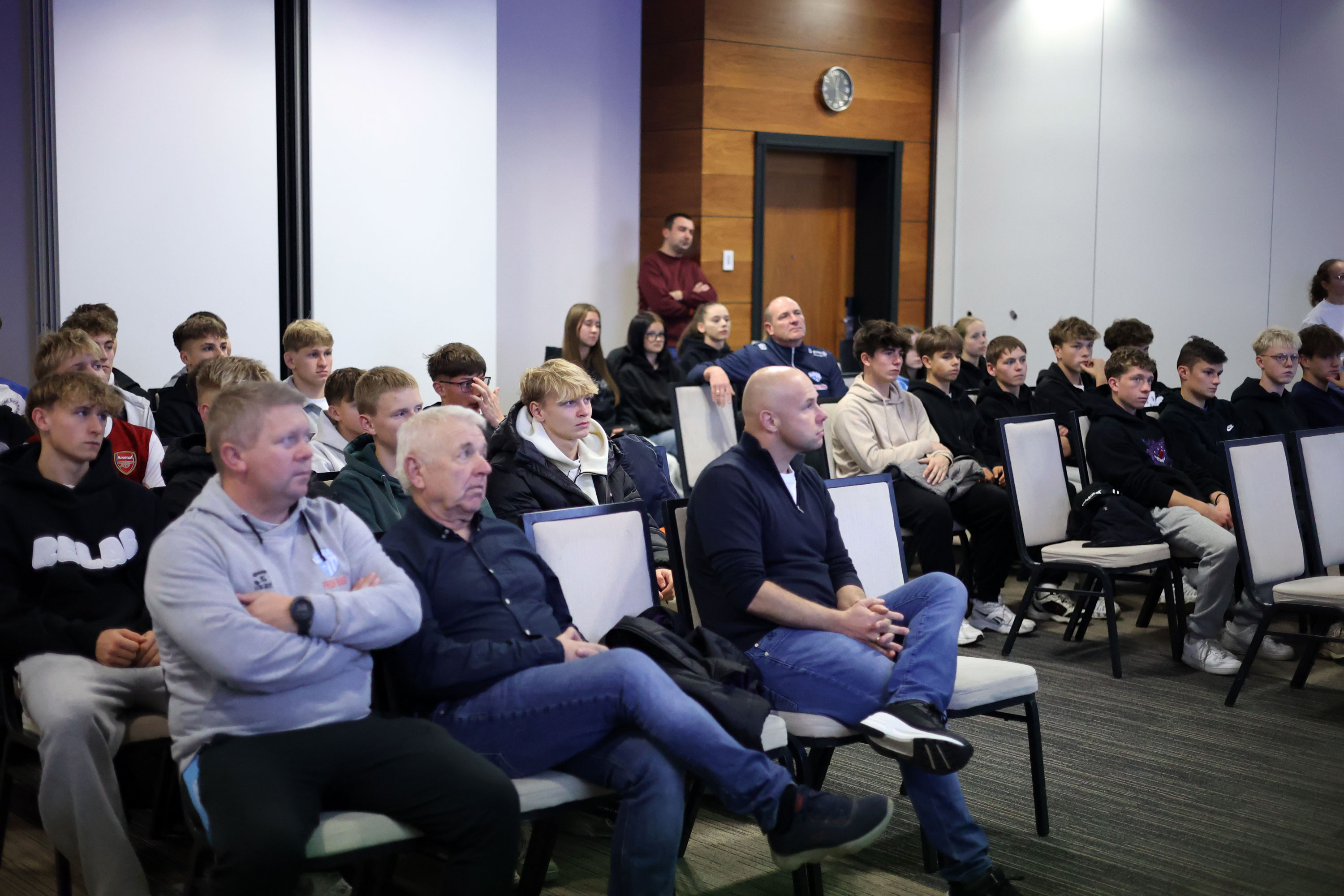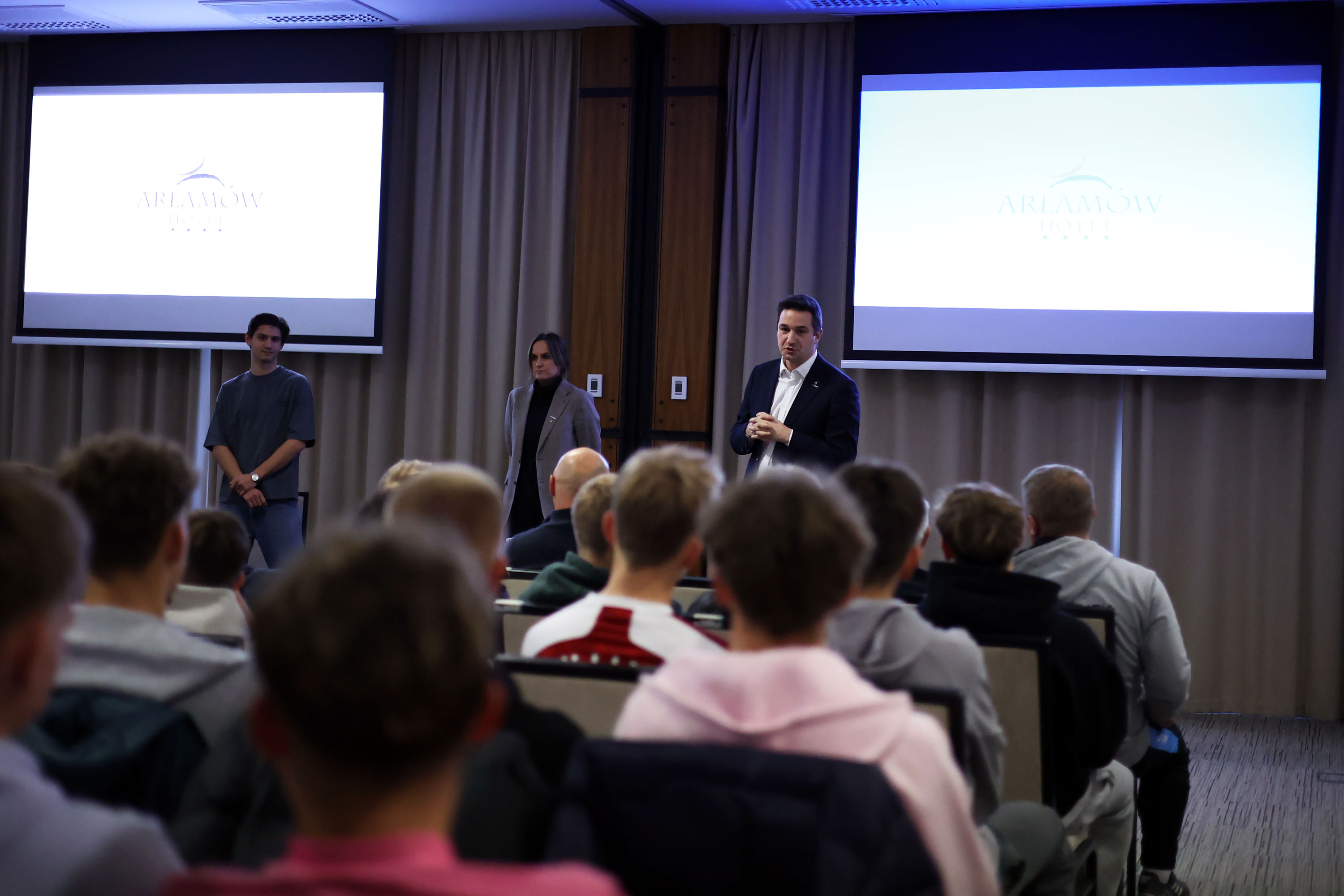 W ramach współpracy Akademii Piłkarskiej Beniaminek Profbud Krosno z "Hotelem Arłamów" w środę (5 listopada) uczniowie Liceum "Edu-Sport" z Oddziałami Mistrzostwa Sportowego z klas 3 i 4 mieli możliwość bliżej poznać ten piękny obiekt. W przygotowanej prezentacji mogliśmy zobaczyć jak funkcjonuje "Hotel Arłamów", a już na własne oczy przetestować sportowe atrakcje których w hotelu jest mnóstwo. Na koniec dnia chłopcy zagrali historyczny mecz sparingowy z drużyną KS Arłamów złożoną z pracowników hotelu, a następnie do późnych godzin regenerowali się w hotelowych basenach i saunie! Dzień pełen atrakcji dla naszych uczennic i uczniów za co jesteśmy niezmiernie wdzięczni!