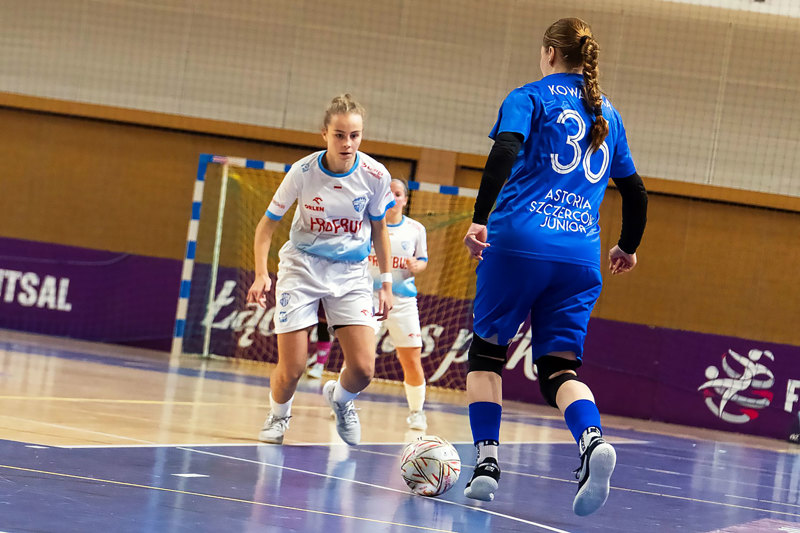 "Biało-niebieskie" w fazie grupowej nie przegrały meczu, na inaugurację zmierzyły się z bardzo mocną drużyną gospodarzy AZS UAM Poznań w składzie której zagrały nasze wychowanki Wiktoria Gorzynik i Zuzanna Knap. Szybko, bo już w 15 sekundzie meczu, strzelona bramka przez Natalię Kłusek wprowadziła chyba sporo nerwowości w grę rywalek, które miały w tym spotkaniu przewagę, ale na szczęście tylko raz udało im się skierować piłkę do naszej bramki i mecz zakończył się remisem 1:1. Duża w tym także zasługa naszej bramkarki Zuzanny Szczepaniak, która została wybrana "MVP - zawodniczką meczu."