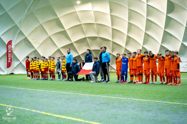 W świetnej, turniejowej atmosferze wspólnie z uczestnikami turnieju, trenerami, rodzicami mogliśmy przybliżyć całej społeczności „PROFBUD Cup” historię turnieju, ciekawych zawodników którzy w nim występowali, m.in. ambasadorów tegorocznej edycji, wychowanków Beniaminka – Antoniego Kozubala, Krzysztofa Kolanko, Patryka Prajsnara i Norberta Barczaka. Rodzice Antka i Krzyśka byli tego dni z nami, podziękowaliśmy im za wkład w rozwój tych zawodników, podkreślając jak ważna jest rola i wsparcie rodzica w piłkarskiej przygodzie dzieciaków. Na scenie powitaliśmy i zaprezentowaliśmy wszystkich uczestników turnieju, którzy przybyli na to wydarzenie, mogliśmy usłyszeć okrzyki poszczególnych drużyn zagrzewające do boju i ciekawostki związane z tymi zespołami, m.in. takie, że na w tegorocznej edycji mieliśmy w sztabach szkoleniowych dwóch młodych trenerów z Zagłębia Lubin i Beniaminka Profbud Krosno, którzy w przeszłości, jako młodzi chłopcy, występowali w turnieju PROFBUD Cup. Zawodnicy, trenerzy i organizatorzy wysłali także wsparcie i dużo serca dla Franka, zawodnika Diamonds Academy Rzeszów, którego poważna choroba zatrzymała w domu i nie mógł być z nami na boiskach podczas turnieju. Franek rozgrywa teraz swój najważniejszy mecz, a my trzymamy za niego mocno kciuki i wierzymy, że wkrótce zobaczymy się podczas piłkarskich zawodów!