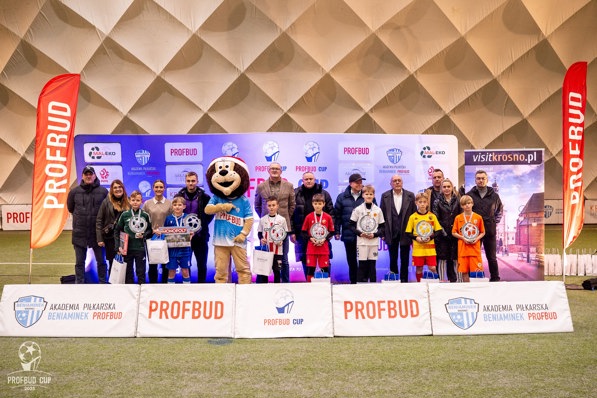 Podczas ceremonii zakończenia turnieju wręczyliśmy wszystkim uczestnikom pamiątkowe medale oraz upominki i nagrody rzeczowe ufundowane przez partnerów turnieju. Nagrody te młodym sportowcom wręczali Prezes Sponsora Tytularnego firmy PPROFBUD Pan Paweł Malinowski, Prezydent Miasta Krosna Pan Piotr Przytocki, Dyrektor Zespołu Szkół Naftowo-Gazowniczych w Krośnie Pani Joanna Kubit, Pani Aida Bella – Dyrektor ds. Komunikacji i PR oraz relacji z otoczeniem biznesowym, Wójt Gminy Miejsce Piastowe Pan Wiktor Skwara przedstawiciele partnerów turnieju Pan Paweł Biernat (Glob Cars Krosno), Pan Rafał Warchoł (FC.APP), Pani Karolina i Tomasz Jaracz (TK-Royal), związani z naszą Akademią - odpowiedzialny za organizację turnieju Łukasz Aszklar oraz Marek Adamiak i Dawid Grysztar, a ceremonię poprowadzili założyciel Akademii i pomysłodawca turnieju Grzegorza Rausa oraz współpracujący od wielu lat z nami przy okazji organizacji turnieju PROFBUD Cup Tomasz Kubal.
